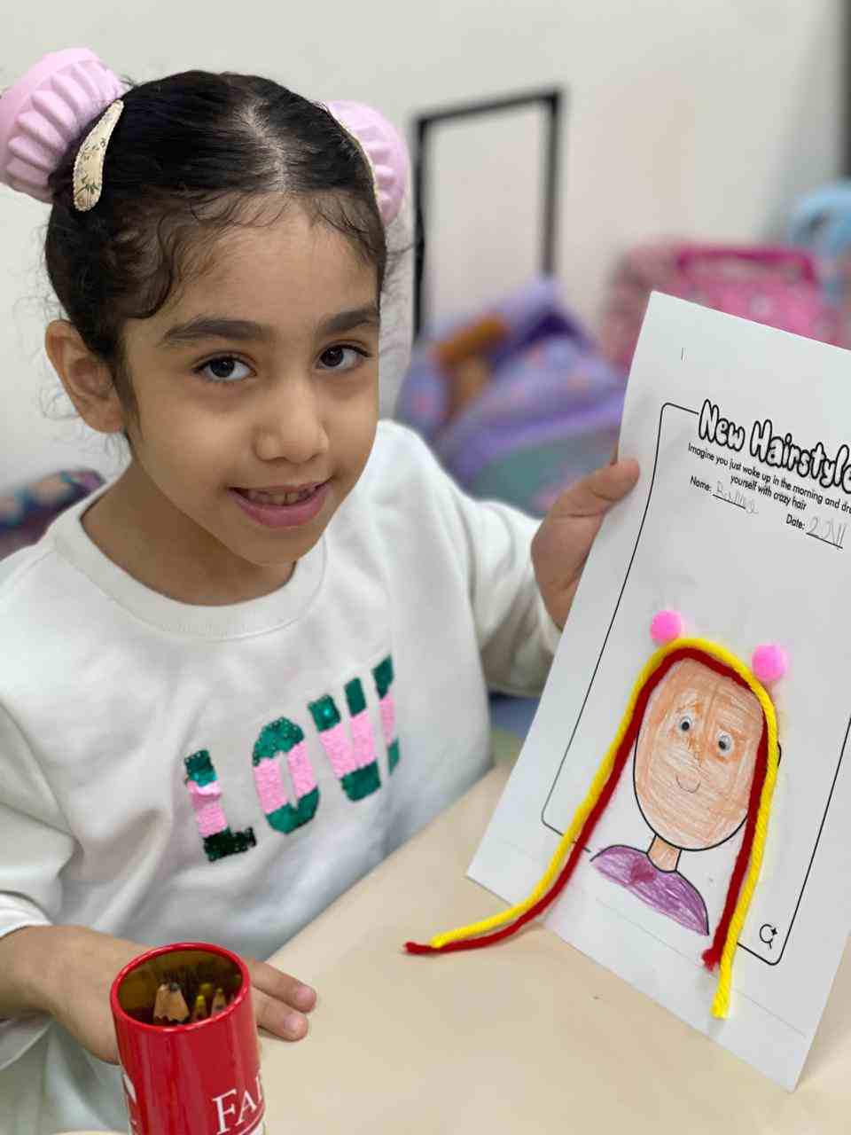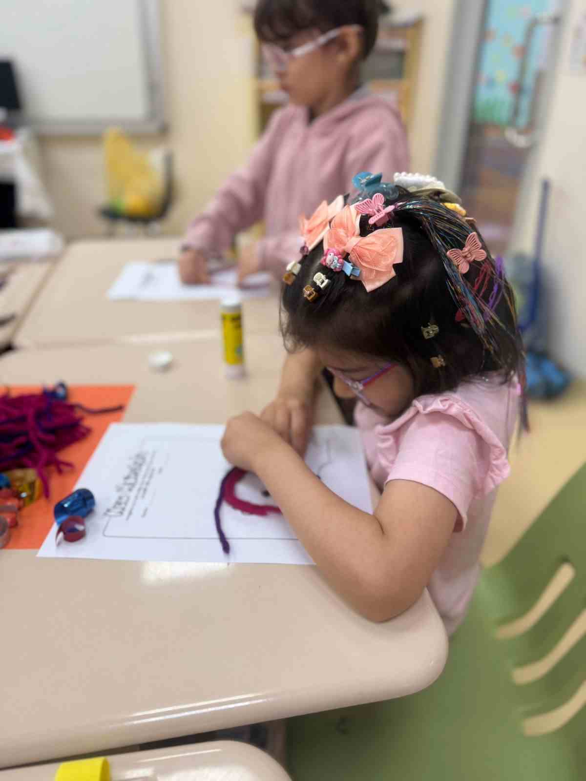 To add to the excitement, they also enjoyed a cute hands-on activity where they recreated their favorite hairstyles using colored wool threads, turning their ideas into adorable mini hair designs. It was a joyful day filled with laughter, creativity, and bright expressions!