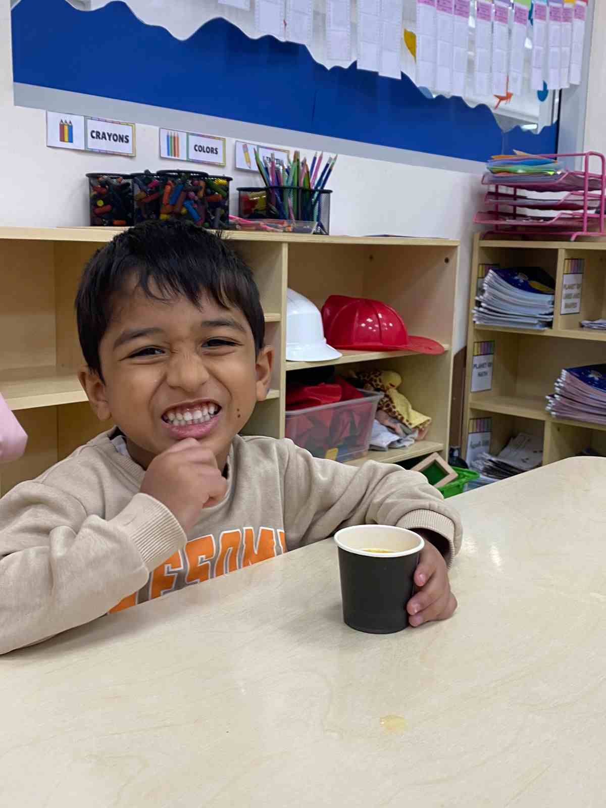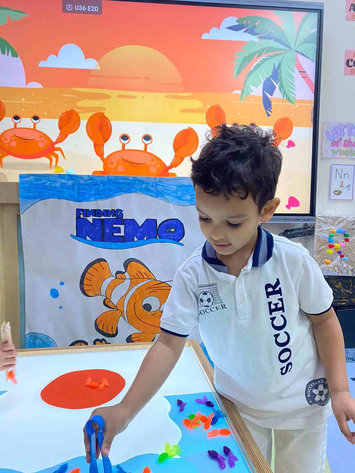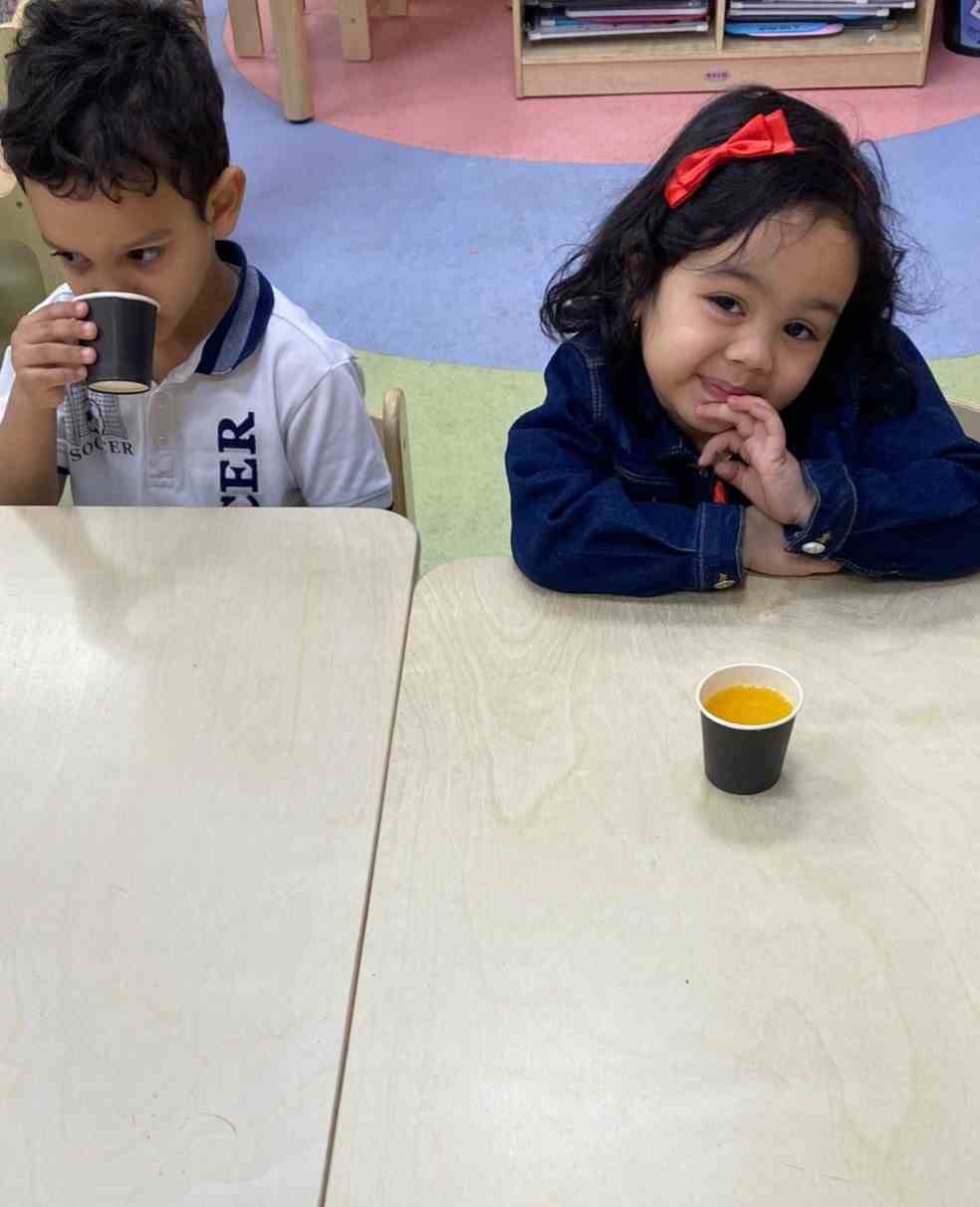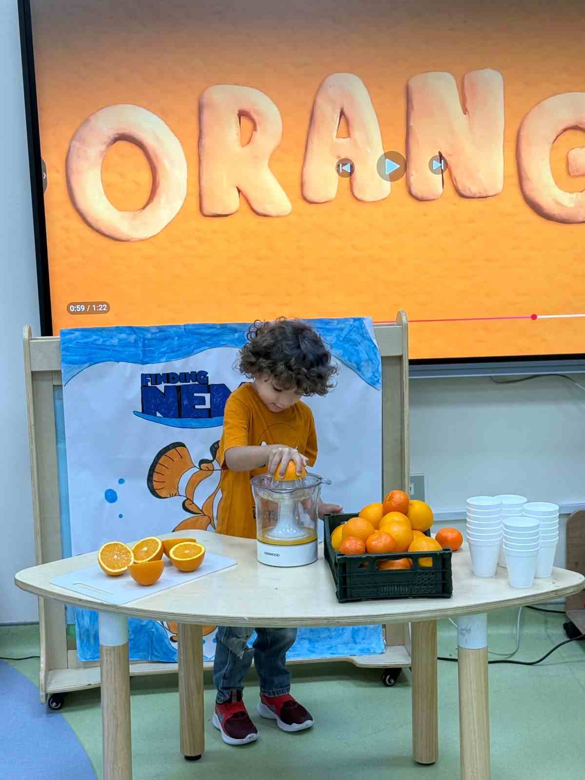 The students came ready to explore the color through engaging hands on activities. They enjoyed a playful “catch the orange fish” game, which helped them build coordination. To make the day even more refreshing, the little ones worked together to squeeze and prepare their own orange juice, experiencing the color, taste, and scent of oranges delightfully. It was a cheerful and memorable learning day for our young learners!