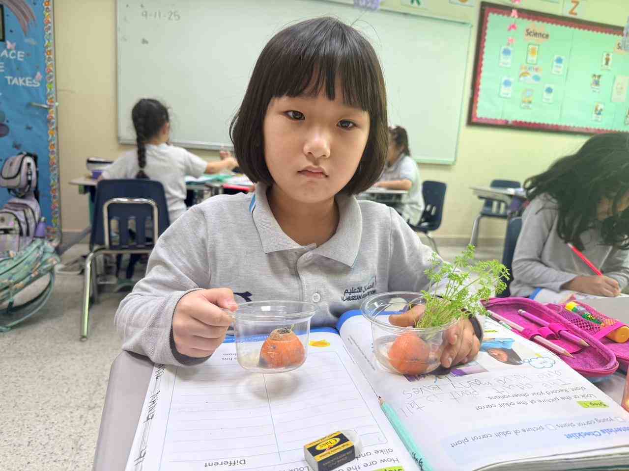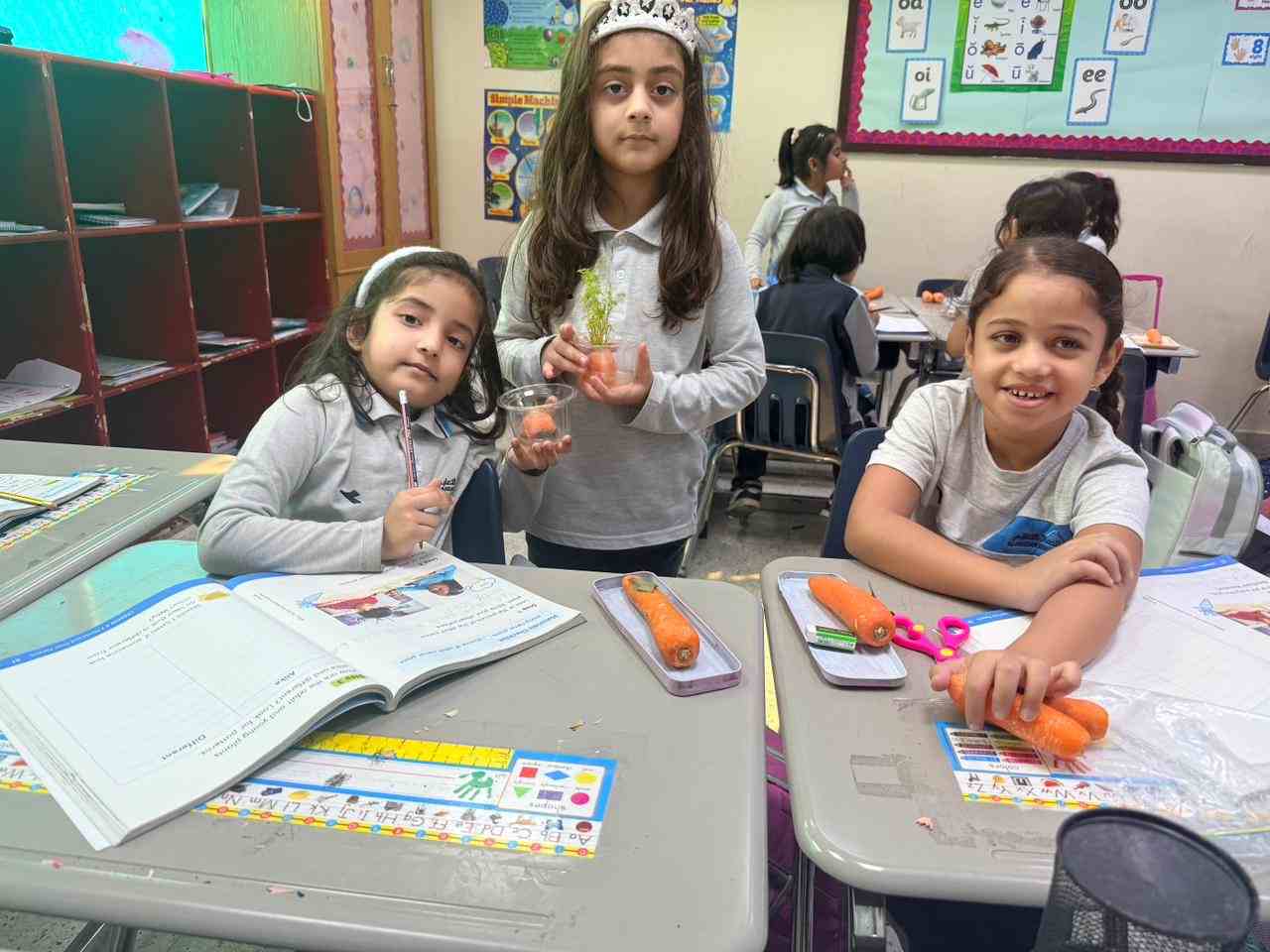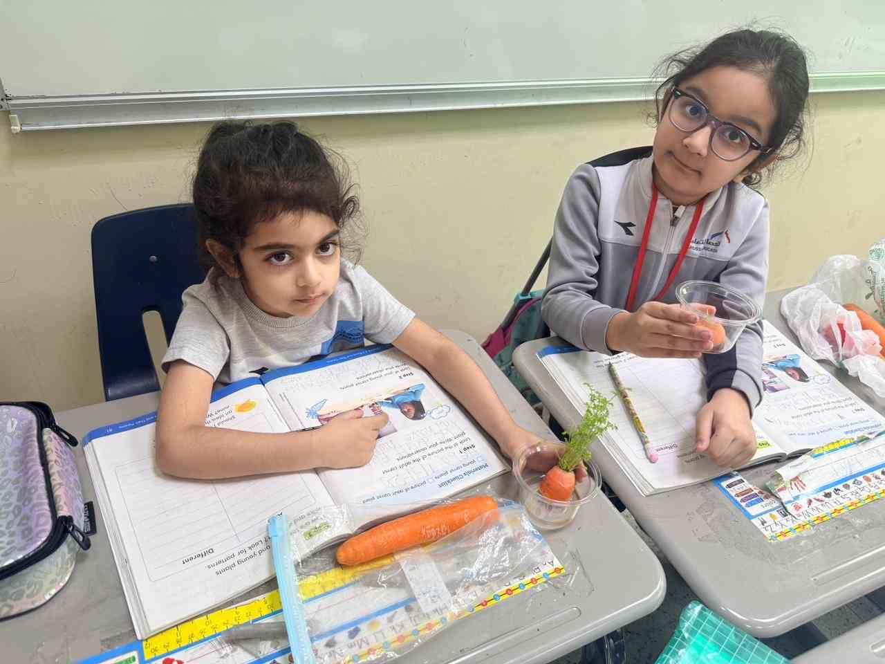 Our Grade 1H girls observed how young and adult carrot plants look different as they grow. They enjoyed learning how the same plant can change at each stage.