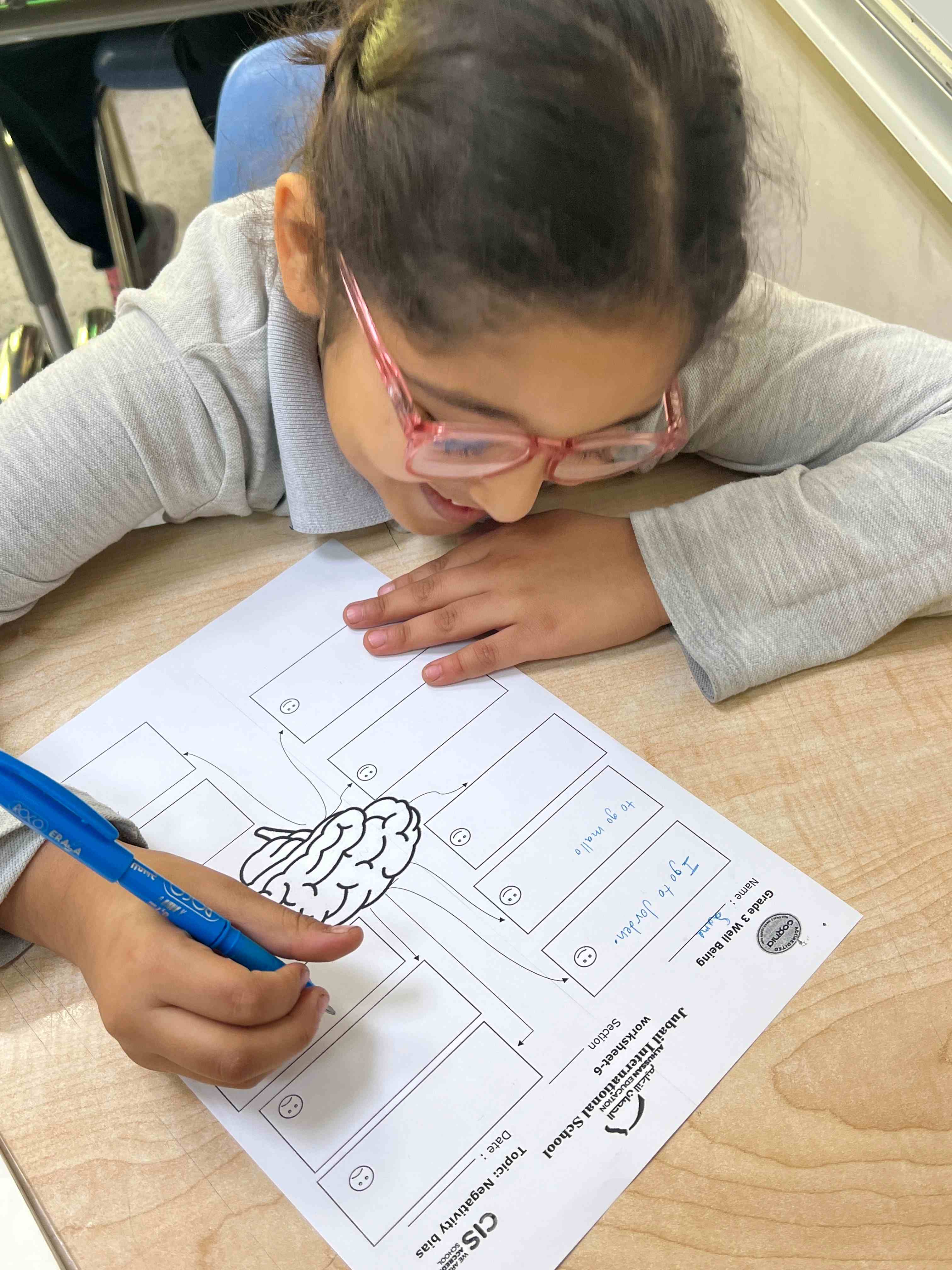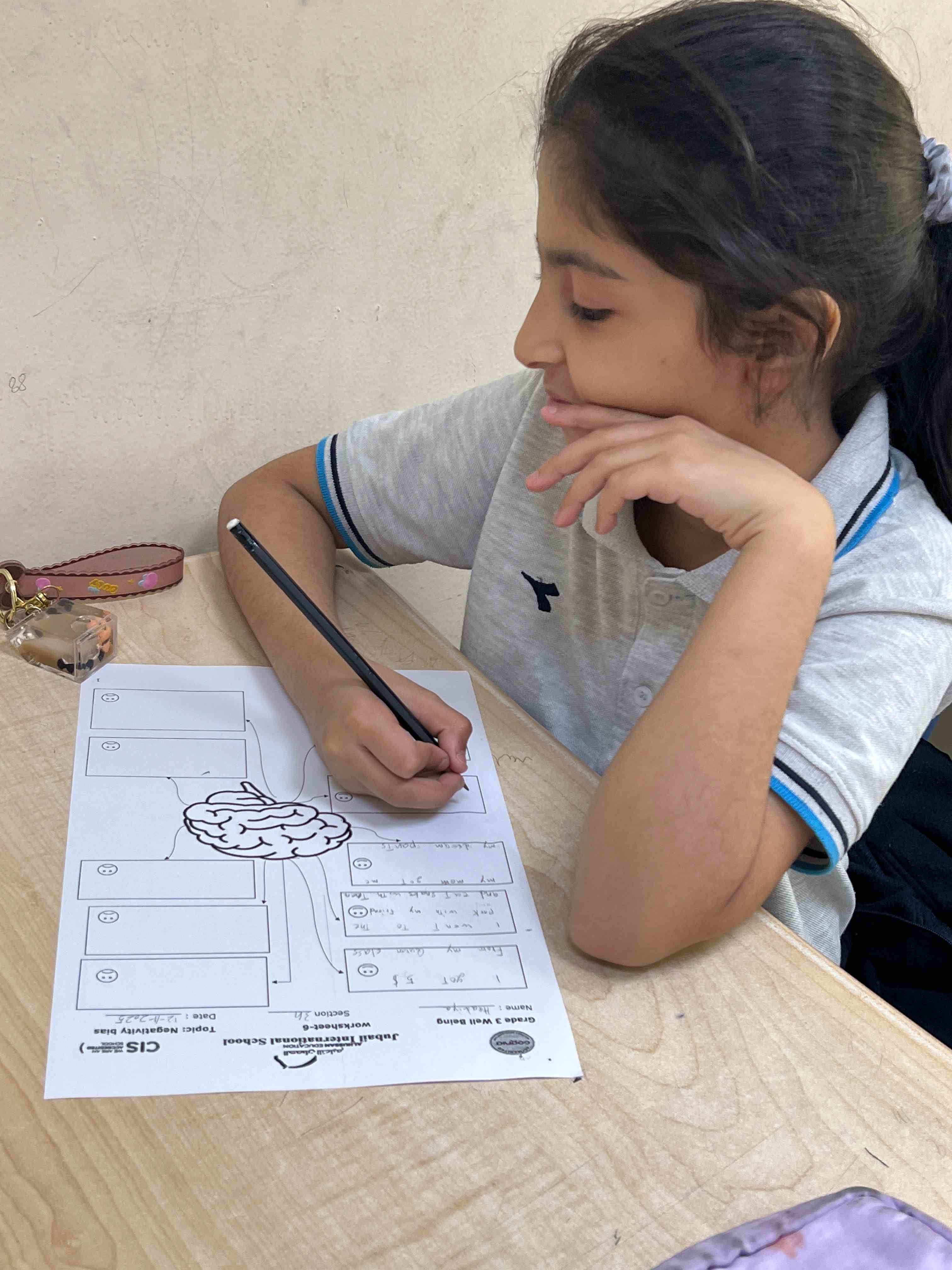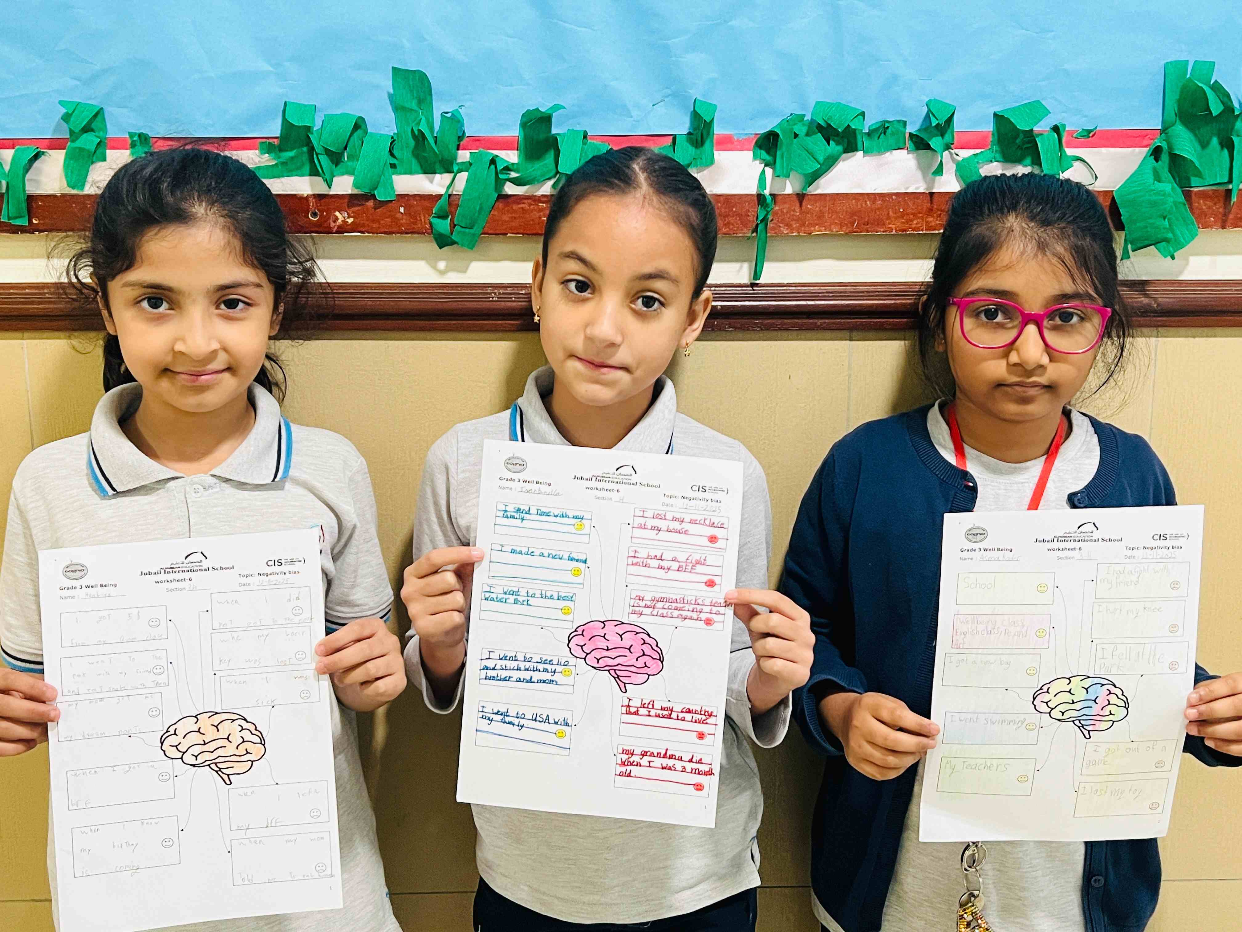 Grade 3 girls took part in an interactive session on Negativity Bias. They used emojis to show what makes them happy and what makes them upset. This helped them recognize their feelings and value positive experiences. The activity supported a balanced and optimistic mindset.