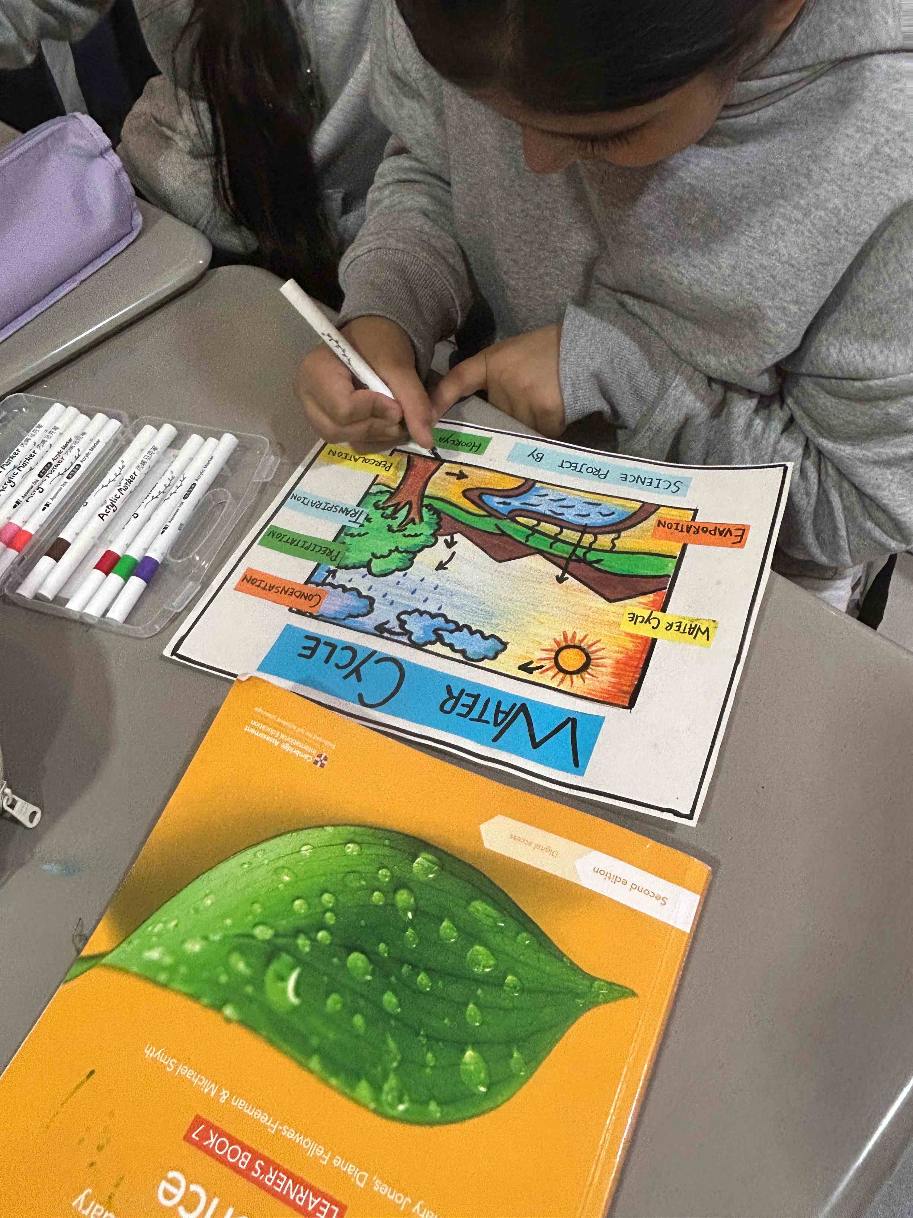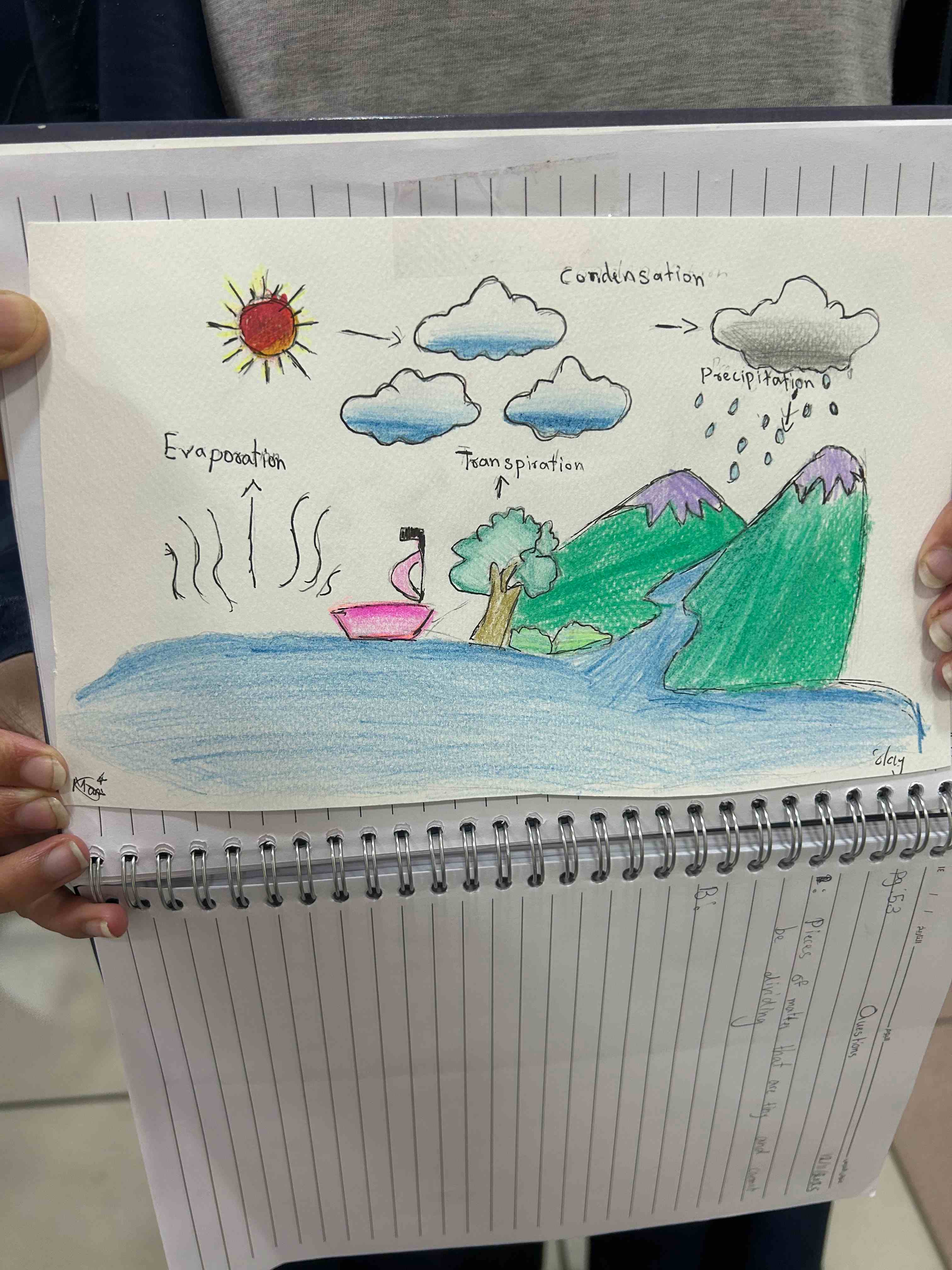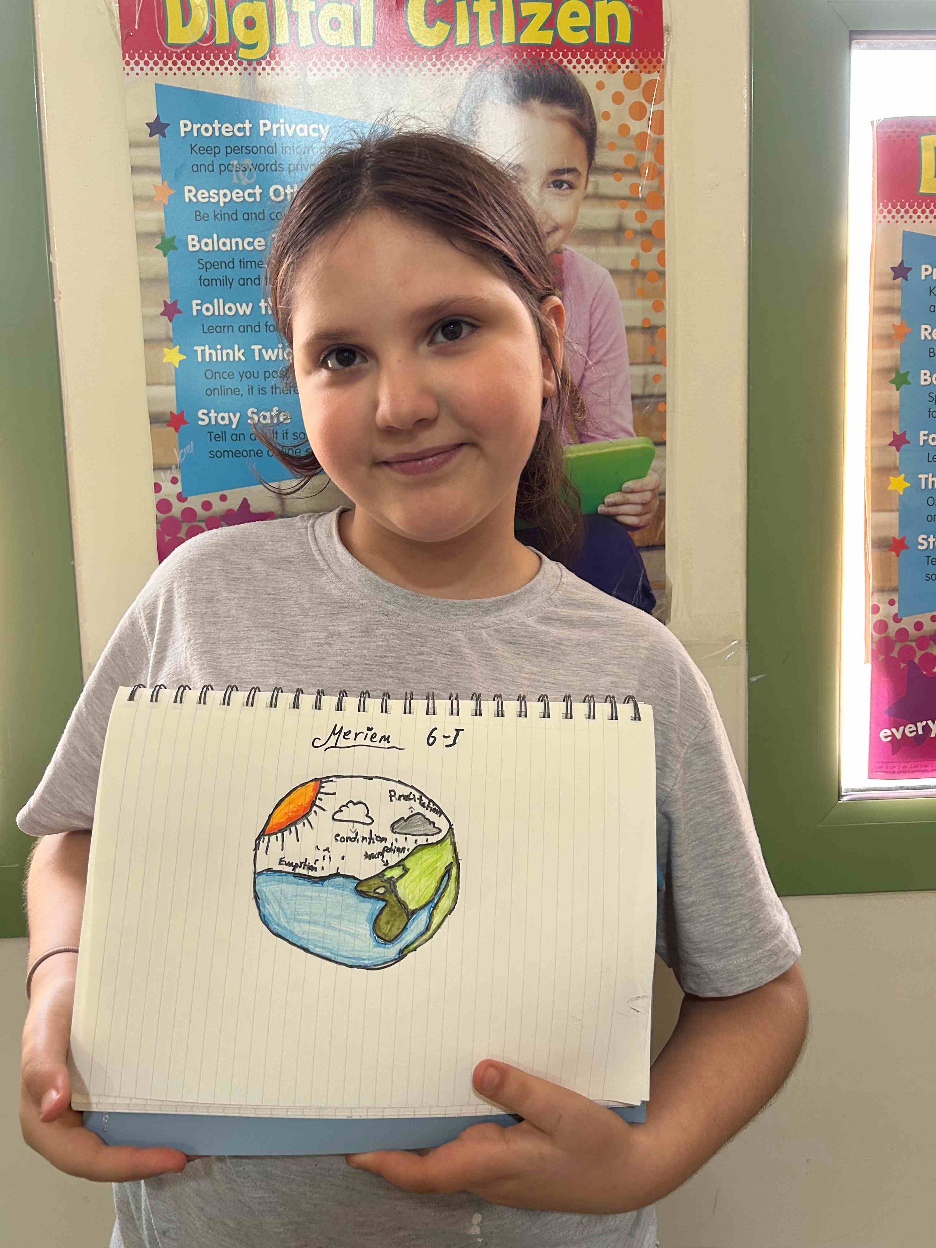 Grade 6 I girls showed their understanding of the water cycle through a simple class activity. They drew clear diagrams and labeled each stage. They also displayed their creativity through their artwork.