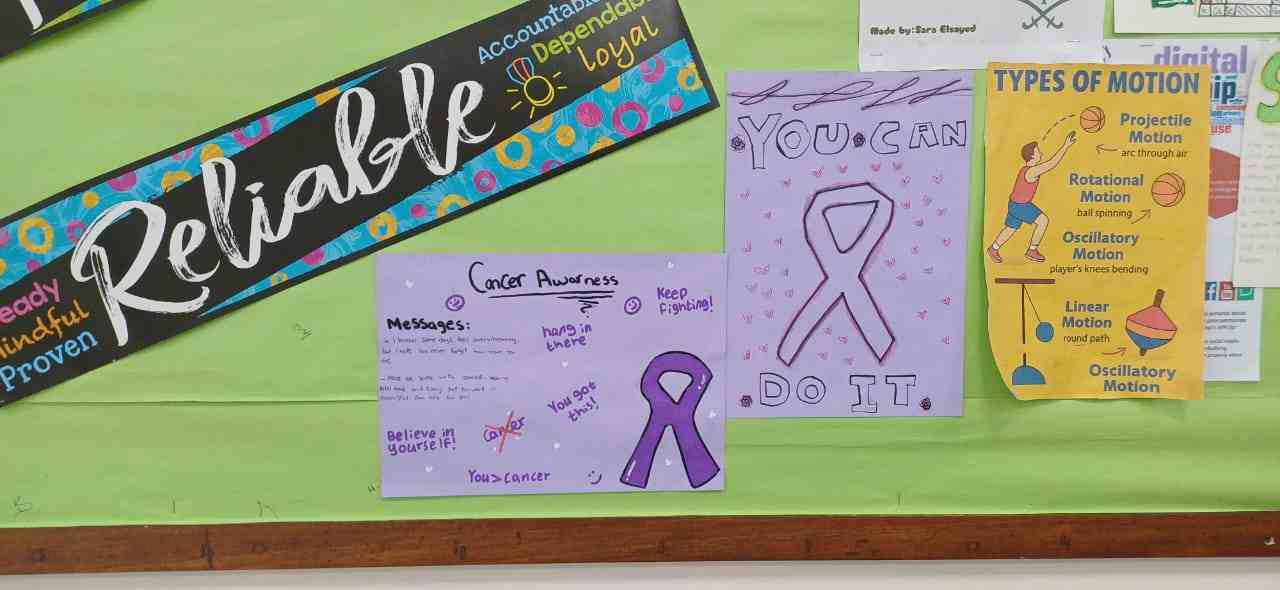 To show unity and support, students wore lavender shirts, as the color purple symbolizes strength, hope, and solidarity with all cancer fighters, survivors, and their families.