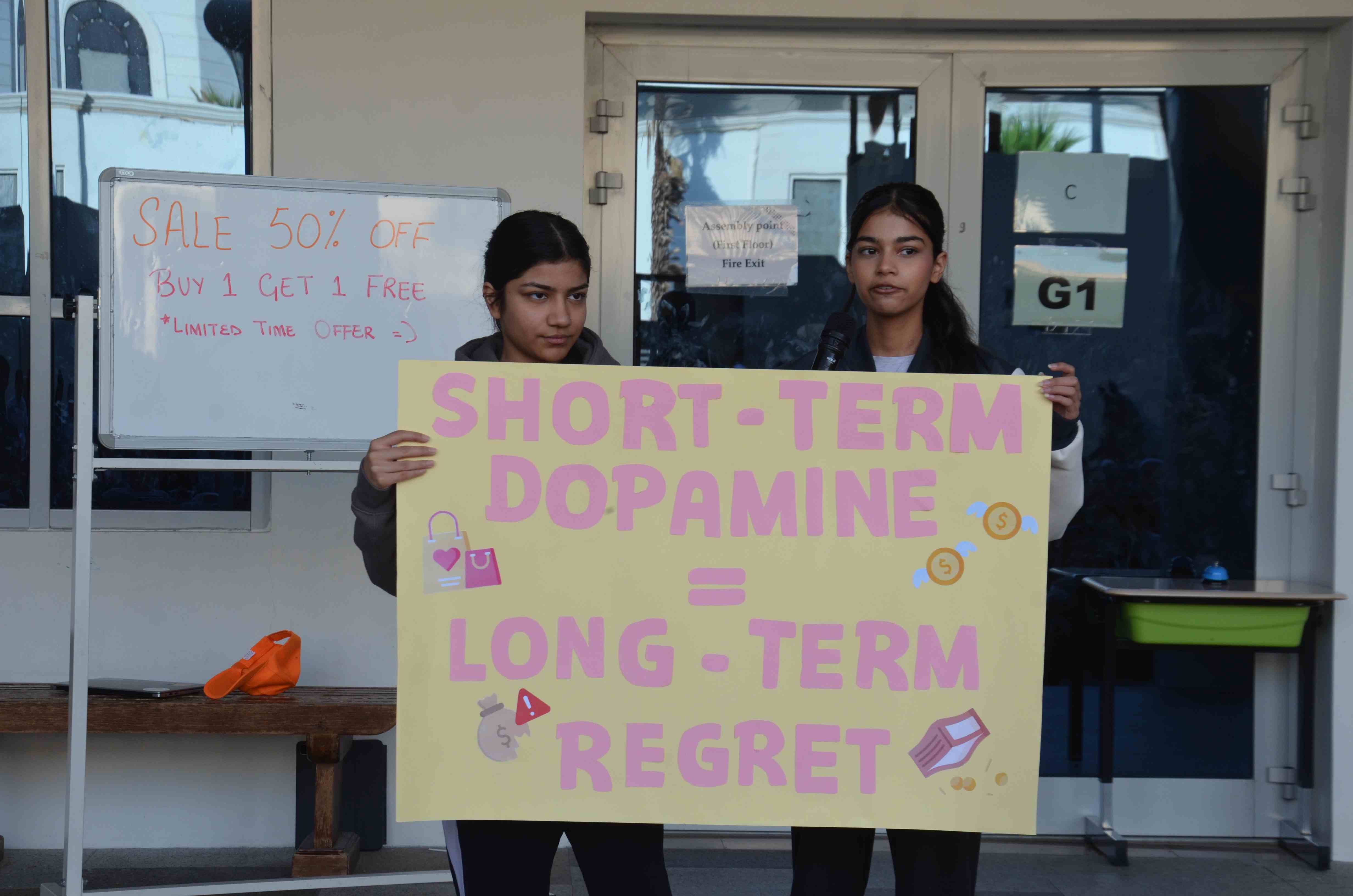 Through humor, creative skits, real advertisements, and interactive challenges, students uncovered how emotions, social pressure, and marketing tactics often influence our spending decisions without us even realizing it. By exposing common advertising tricks—such as urgency tactics, emotional persuasion, and exaggerated claims—the assembly encouraged critical thinking, wise money management, and informed financial choices.