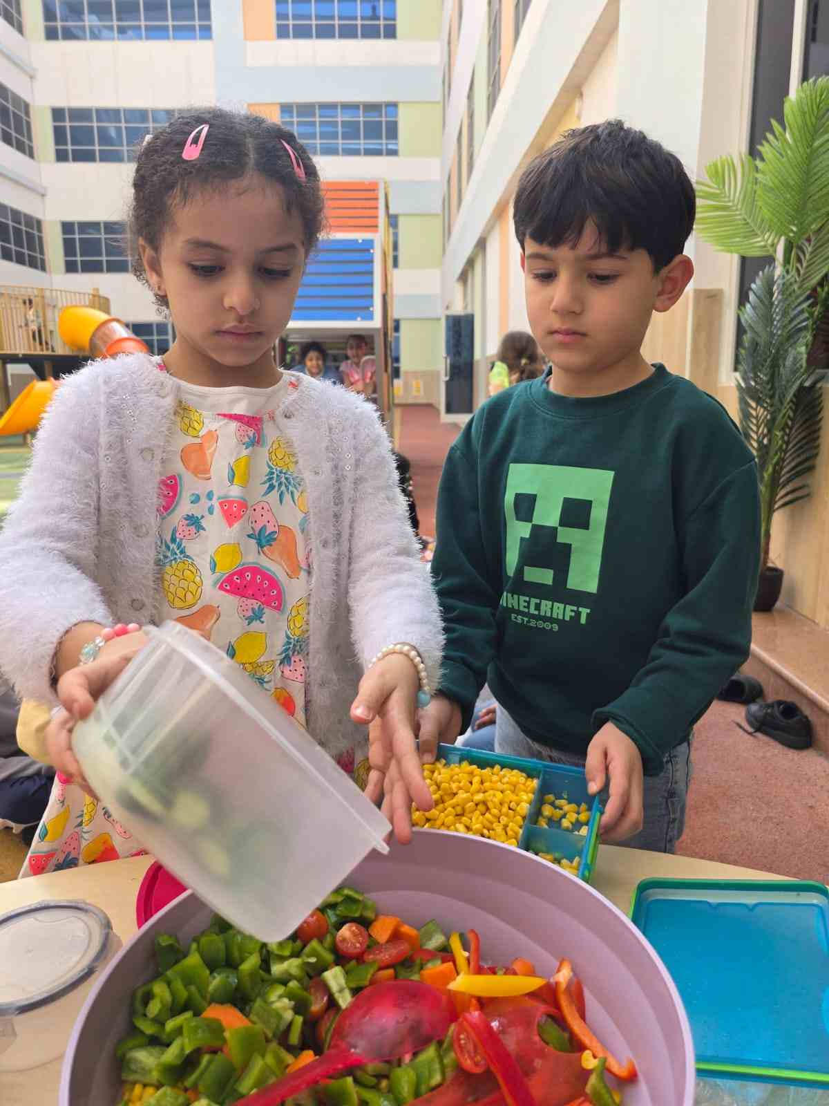 Vegetable and Fruit Salad Day was a fun and colorful celebration at our school. Students came dressed in their favorite fruit costumes and bright colors, filling the campus with excitement and creativity. Some students prepared fresh vegetable salads, while others made delicious fruit salads, showcasing that healthy eating is enjoyable. The day encouraged teamwork, creativity, and awareness of nutritious food, making it a memorable and joyful experience for everyone.