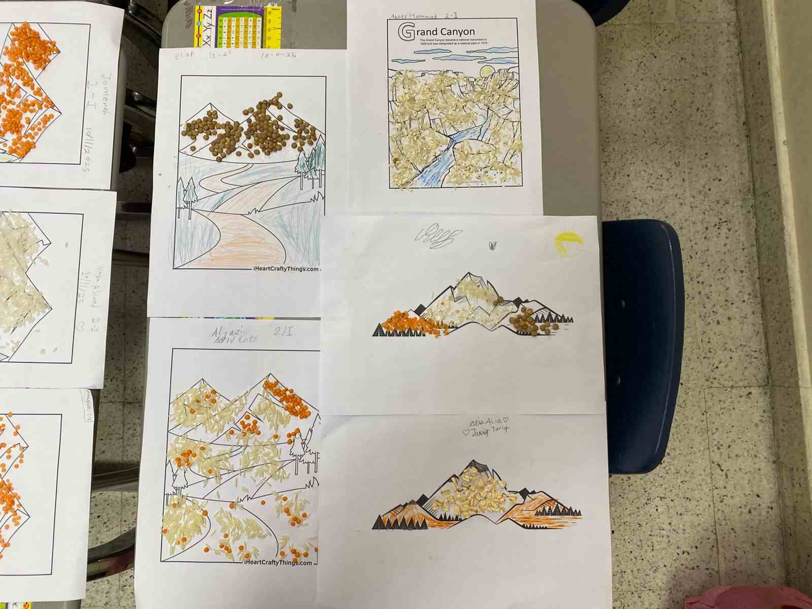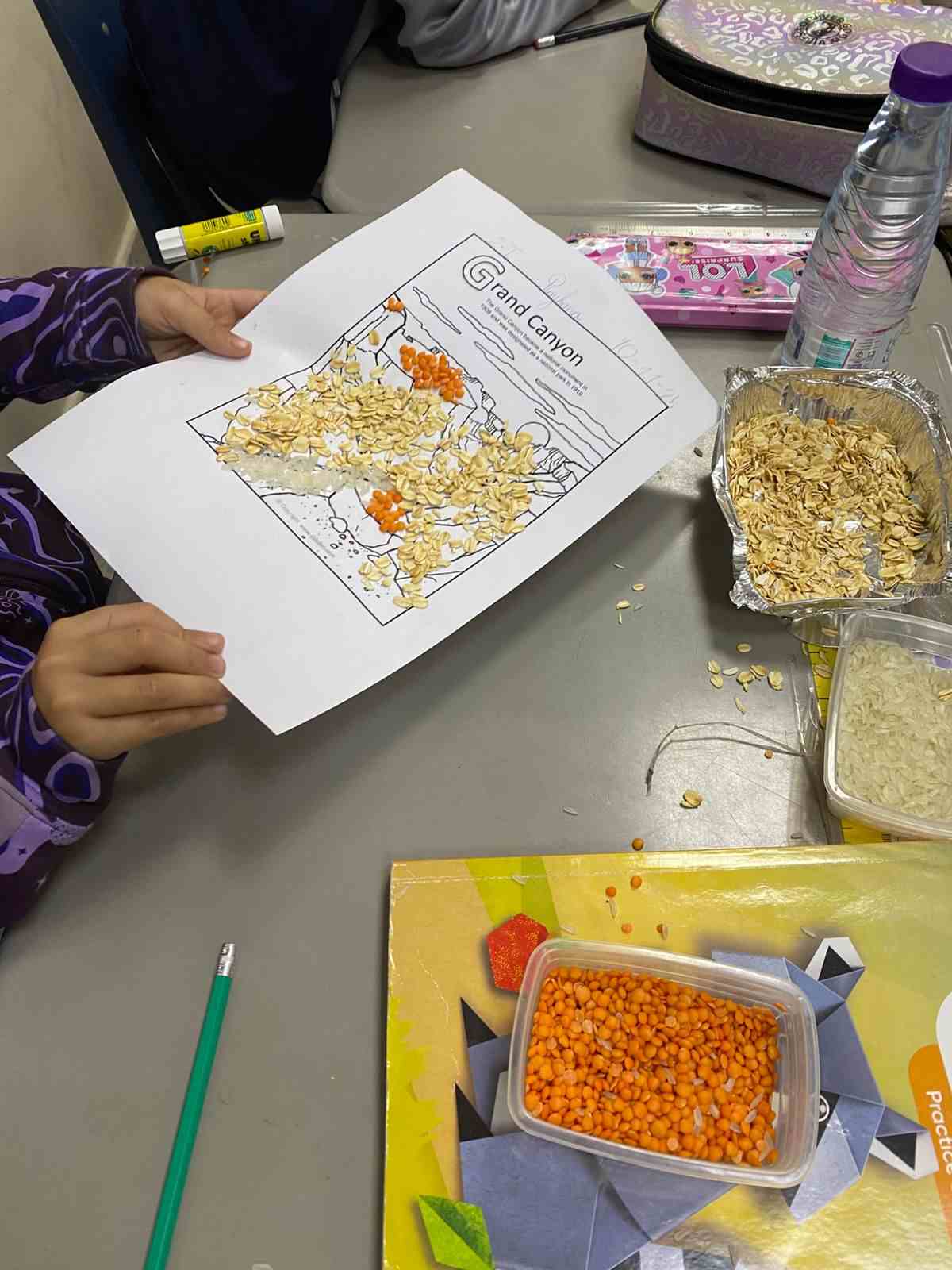 Using rice, lentils, and oats, they filled in landforms like mountains, hills, valleys, and canyons to understand their shapes and features.
