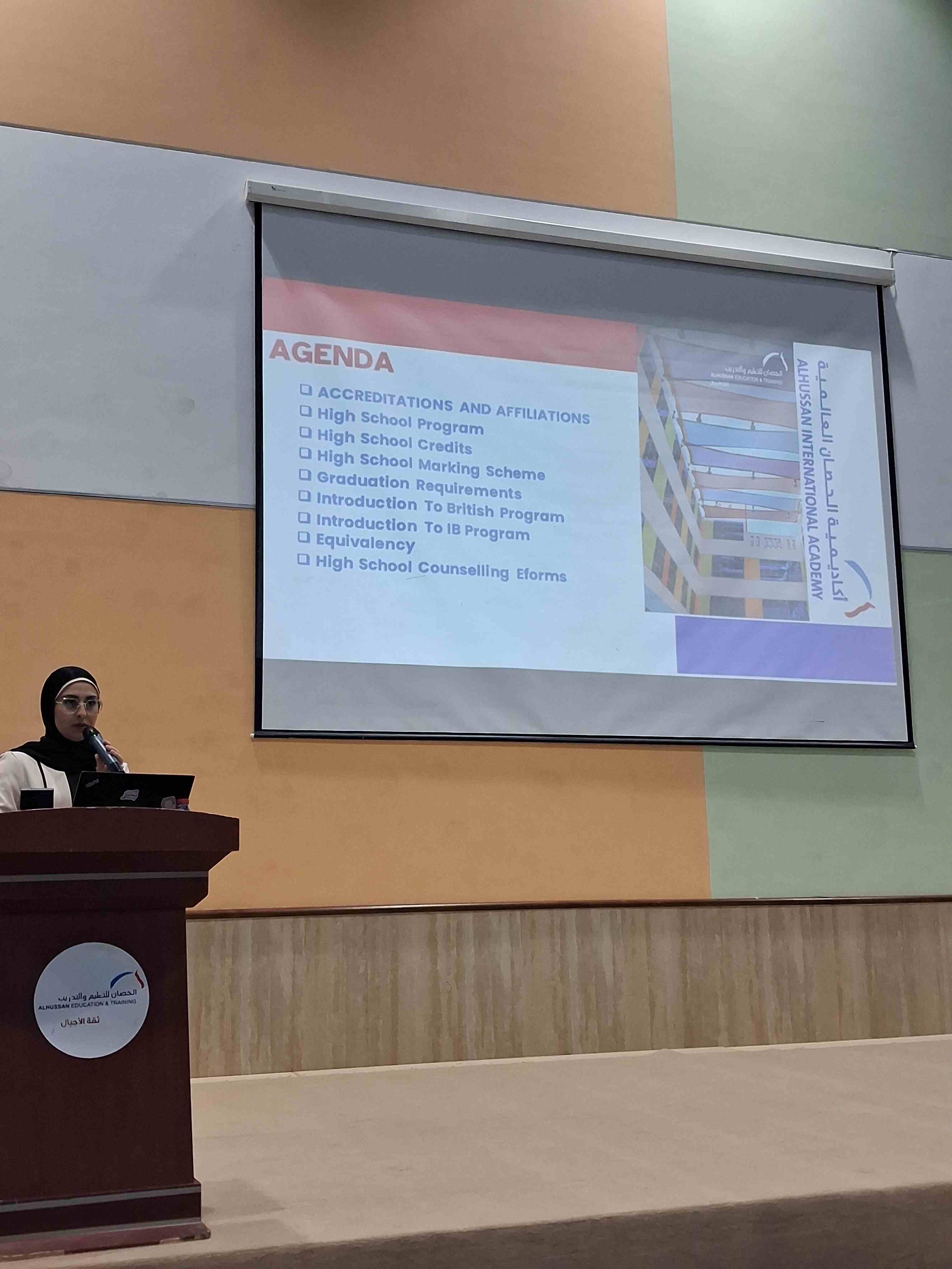 The orientation concluded with a question-and-answer session, allowing parents and students to engage directly with the Academic Coordinators, External Exam Coordinator/College Counsellor and IB Coordinator. The session reinforced Al-Hussan International Academy’s dedication to academic excellence, student-centered learning, and a strong partnership with parents.