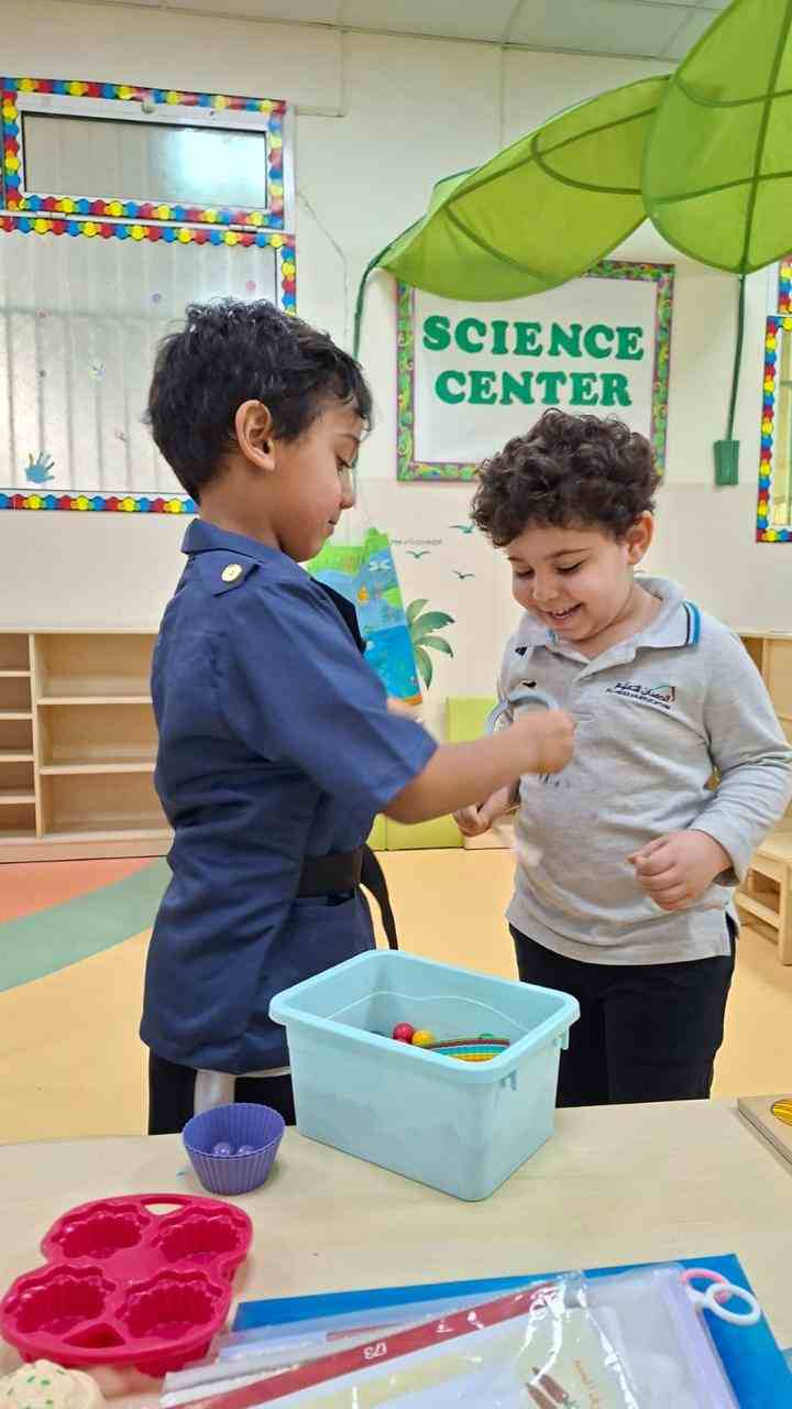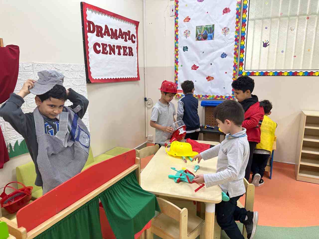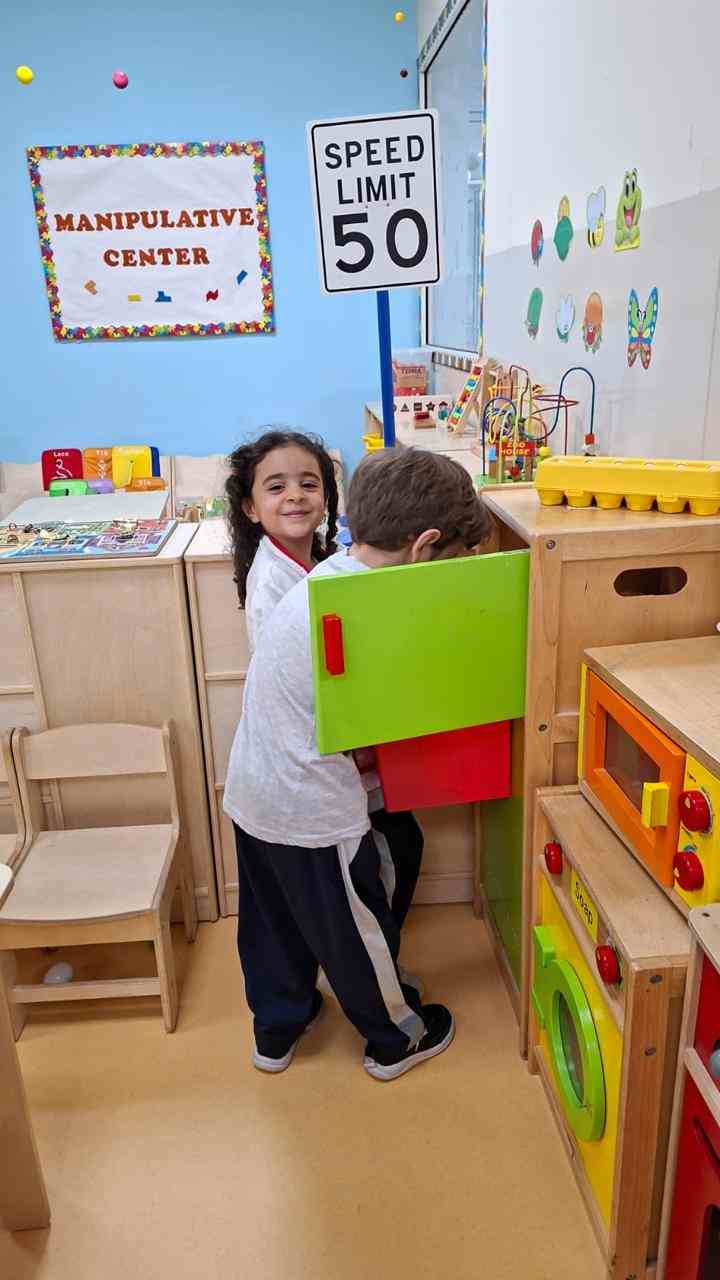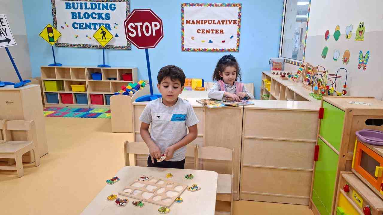 Our KG students actively engage in the center room, exploring a variety of learning centers through purposeful play Each center is designed to develop specific skills, including science, math, dramatic play, manipulatives, blocks, and sensory activities