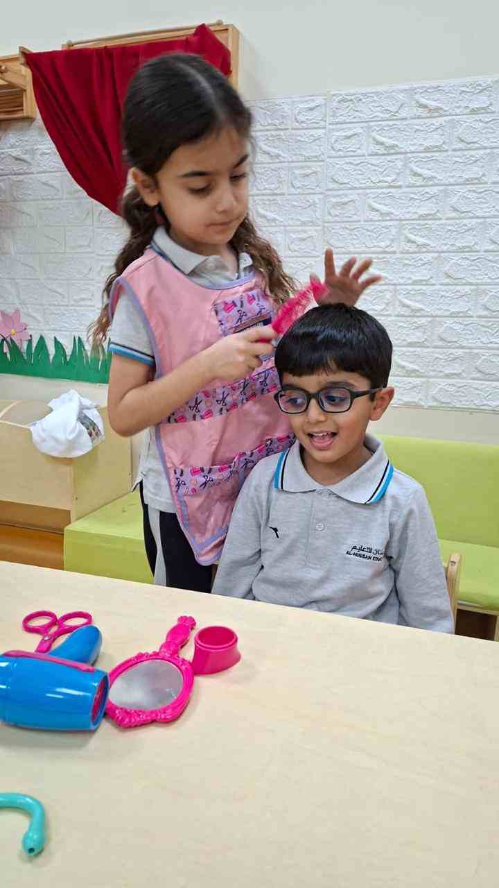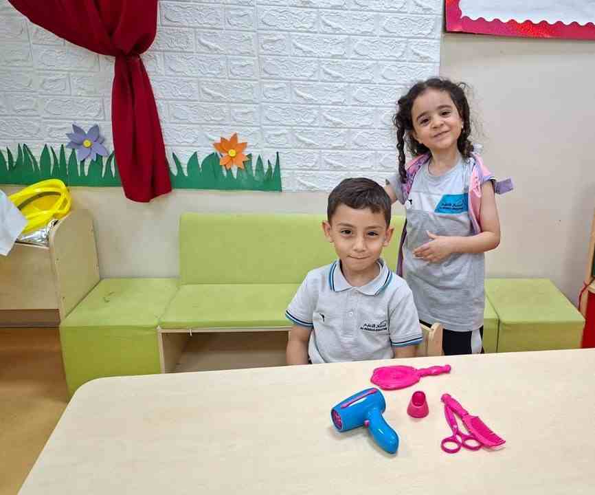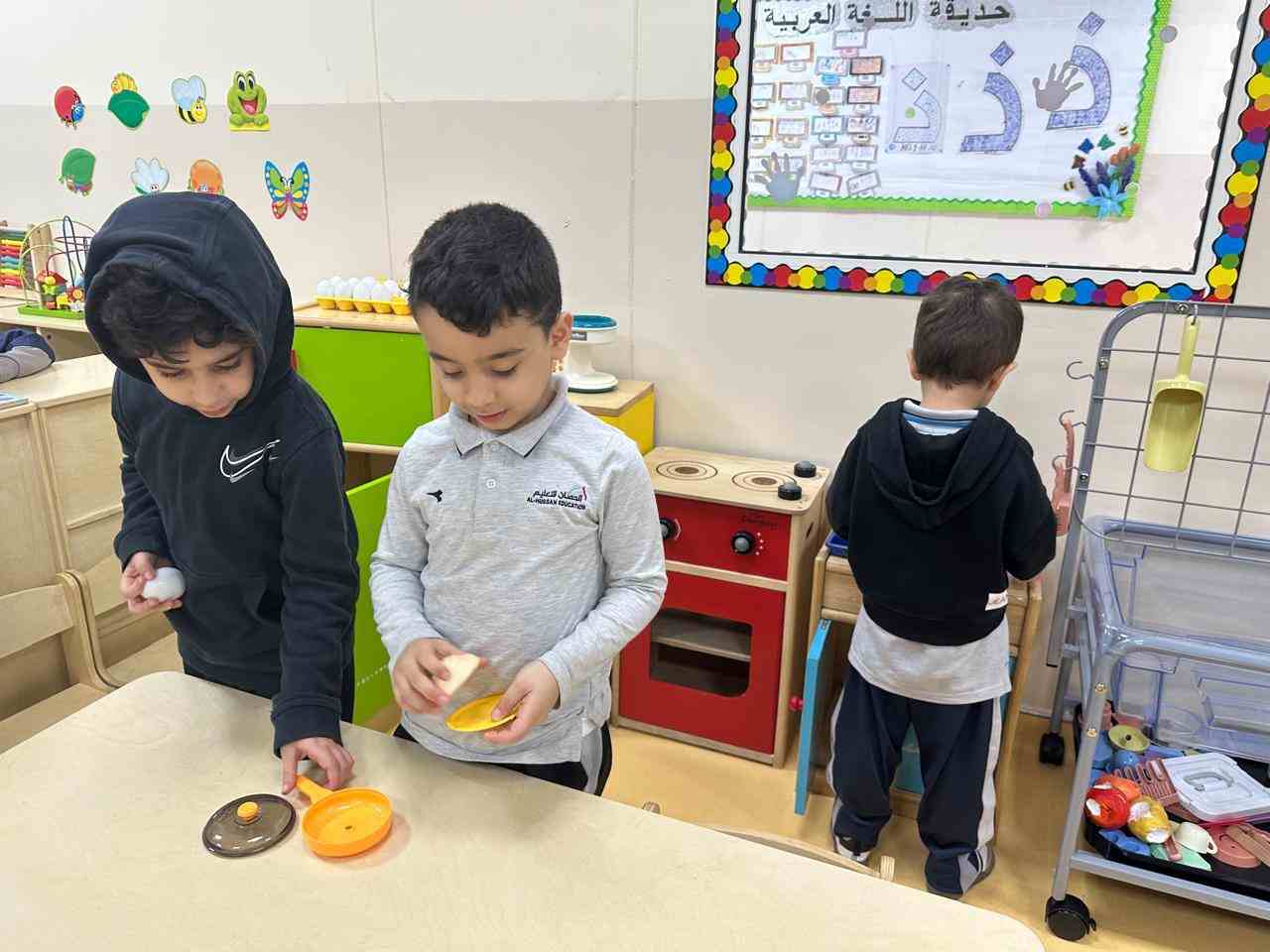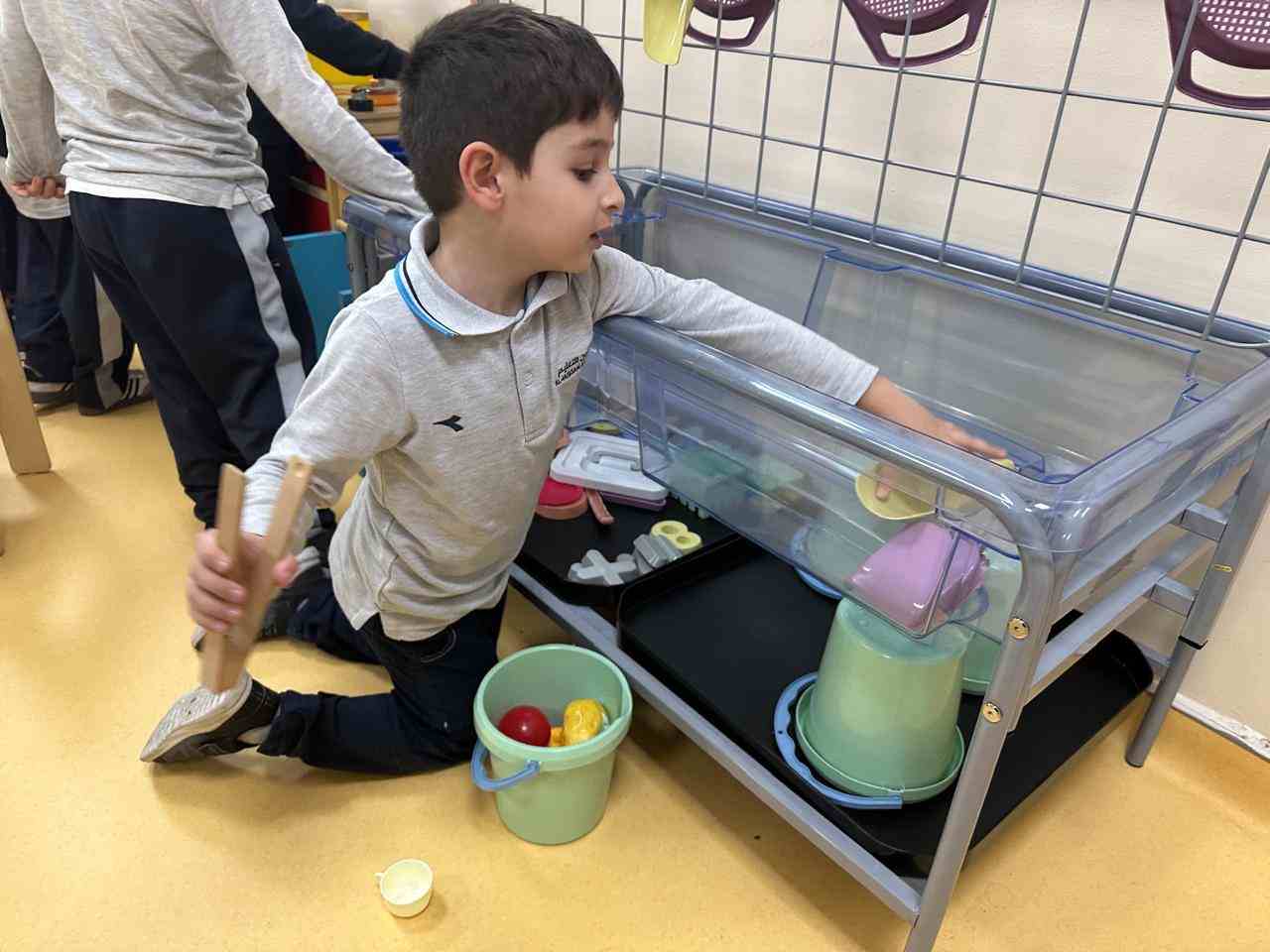 Our KG students actively engage in the center room, exploring a variety of learning centers through purposeful play Each center is designed to develop specific skills, including science, math, dramatic play, manipulatives, blocks, and sensory activities
