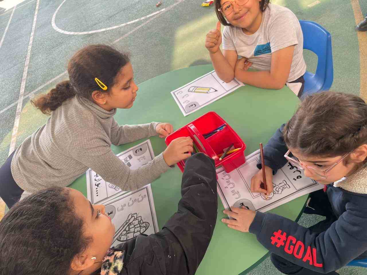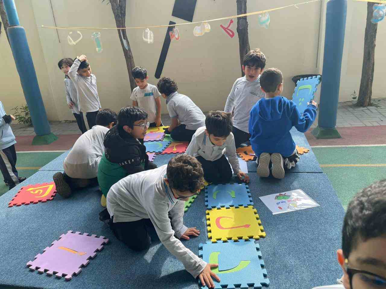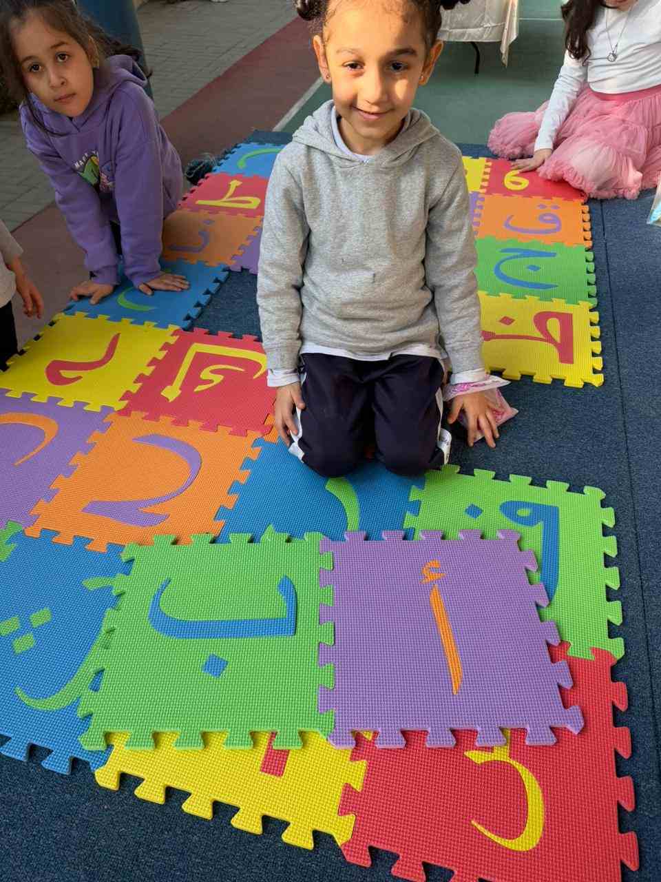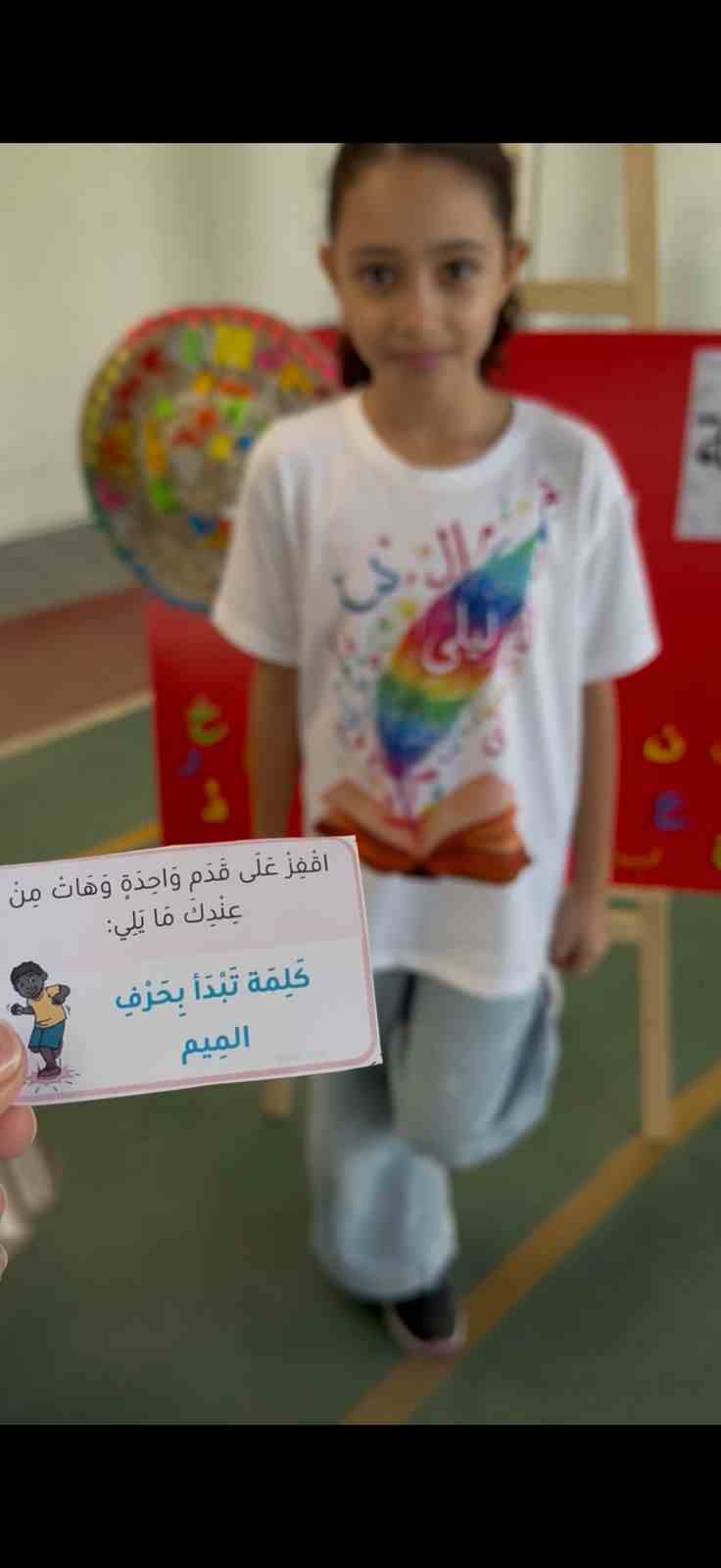 The activities included language games, songs, storytelling, and movement-based tasks, which supported the development of listening, speaking, reading, and writing skills in an enjoyable and age-appropriate way. Students showed high levels of enthusiasm and active participation, fostering a positive attitude toward learning Arabic.