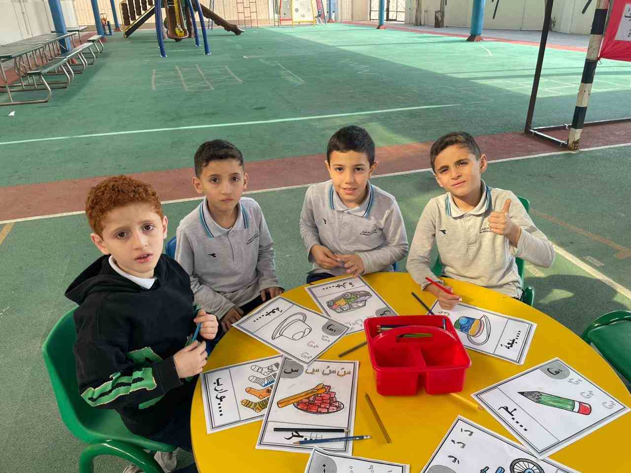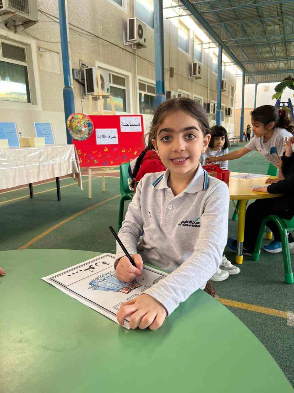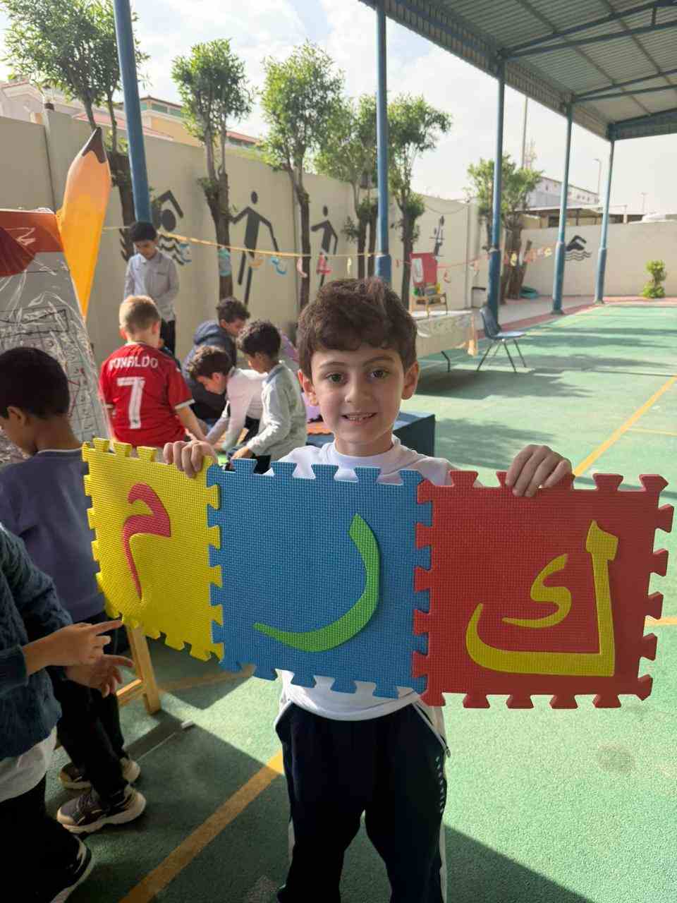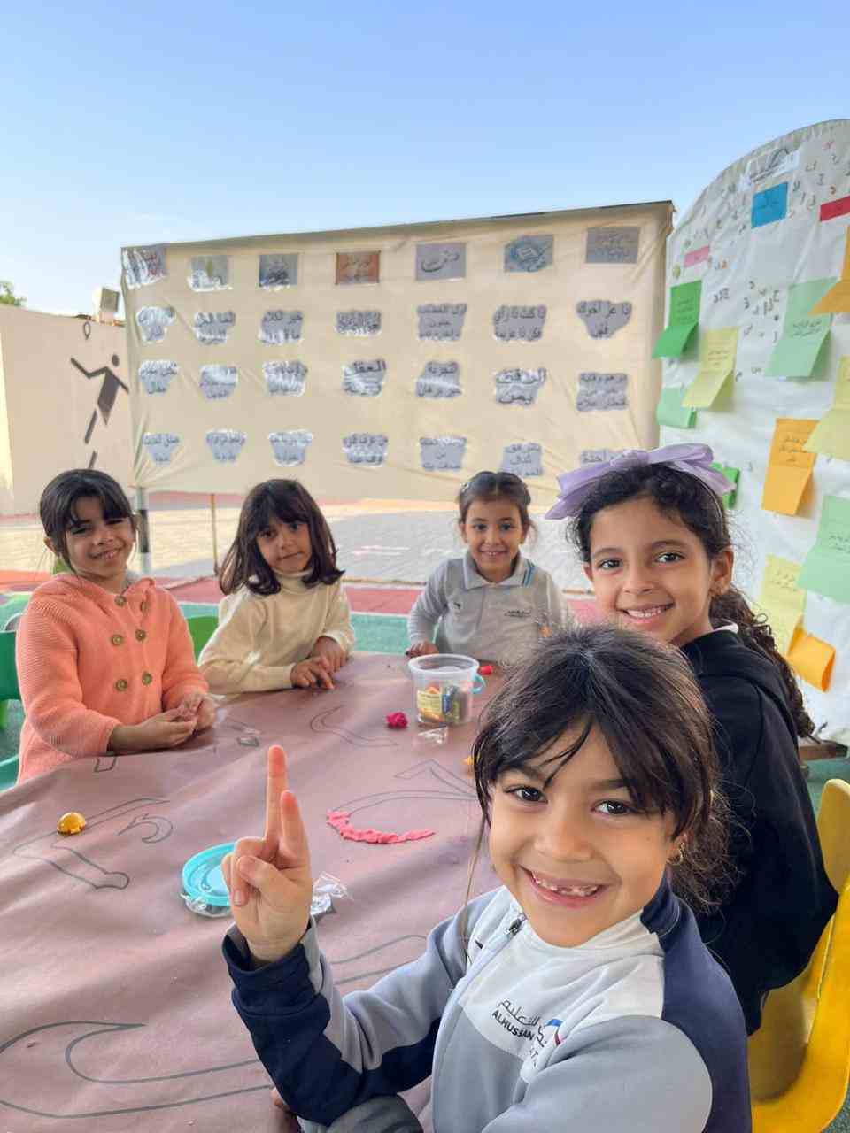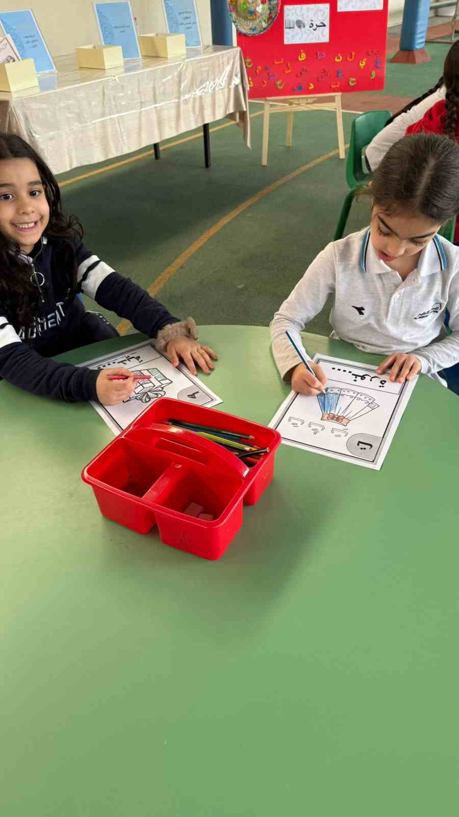 The activities included language games, songs, storytelling, and movement-based tasks, which supported the development of listening, speaking, reading, and writing skills in an enjoyable and age-appropriate way. Students showed high levels of enthusiasm and active participation, fostering a positive attitude toward learning Arabic.