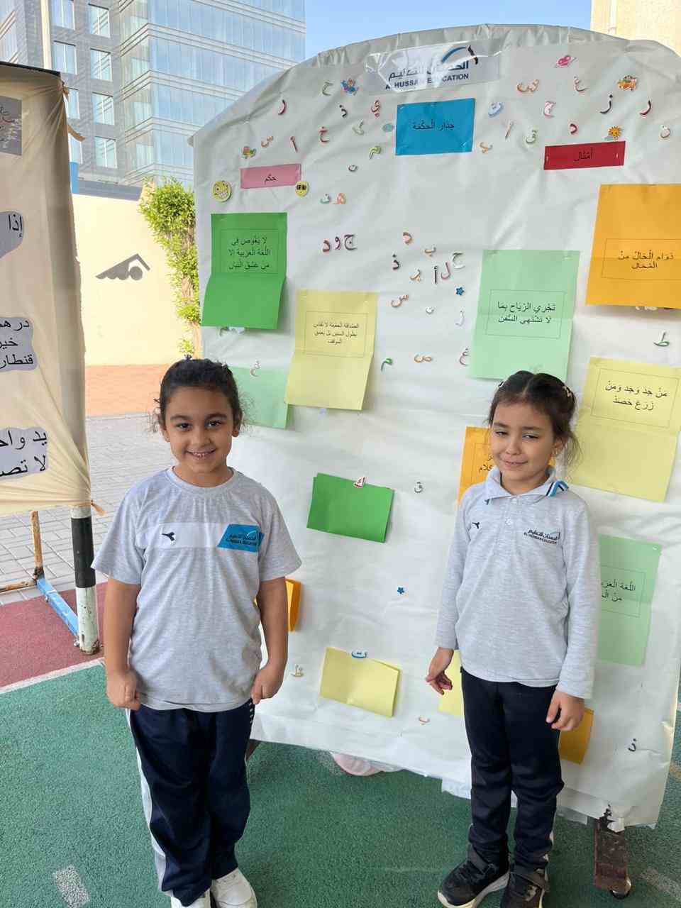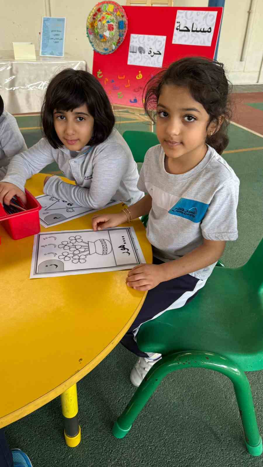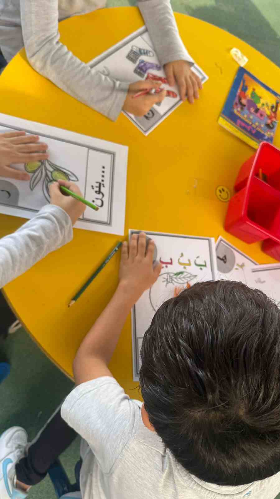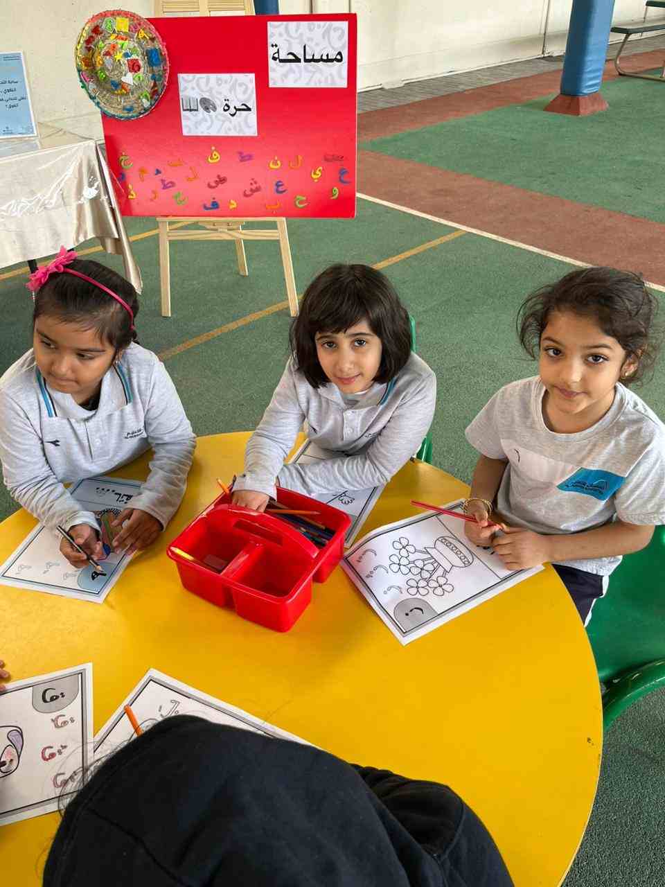 The activities included language games, songs, storytelling, and movement-based tasks, which supported the development of listening, speaking, reading, and writing skills in an enjoyable and age-appropriate way. Students showed high levels of enthusiasm and active participation, fostering a positive attitude toward learning Arabic.