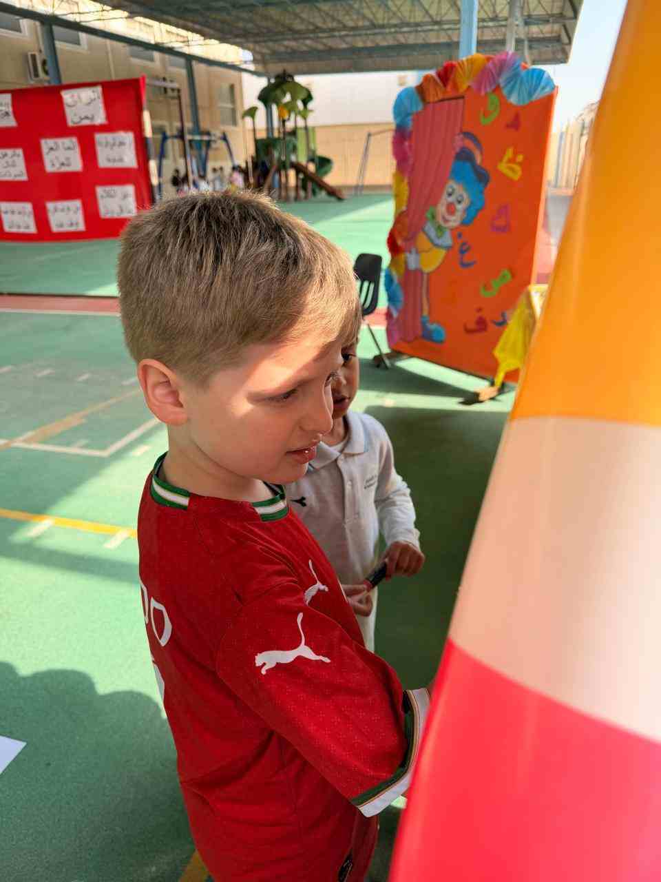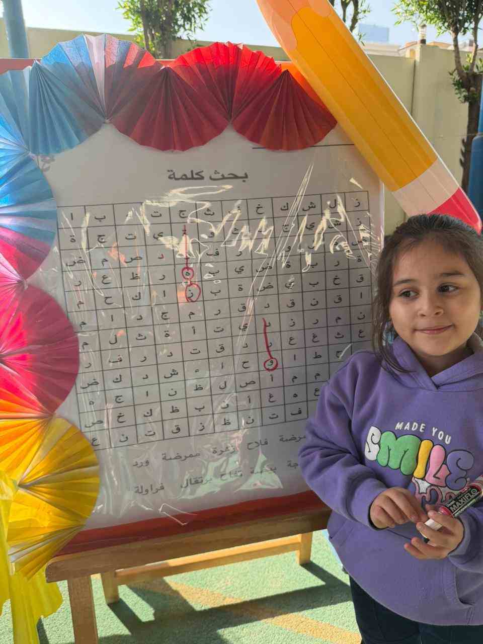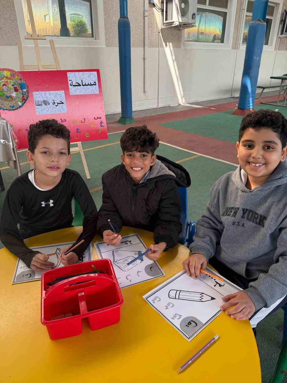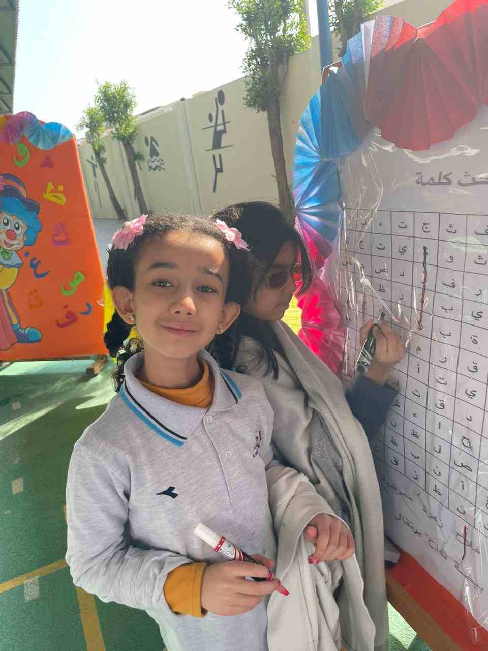 The activities included language games, songs, storytelling, and movement-based tasks, which supported the development of listening, speaking, reading, and writing skills in an enjoyable and age-appropriate way. Students showed high levels of enthusiasm and active participation, fostering a positive attitude toward learning Arabic.