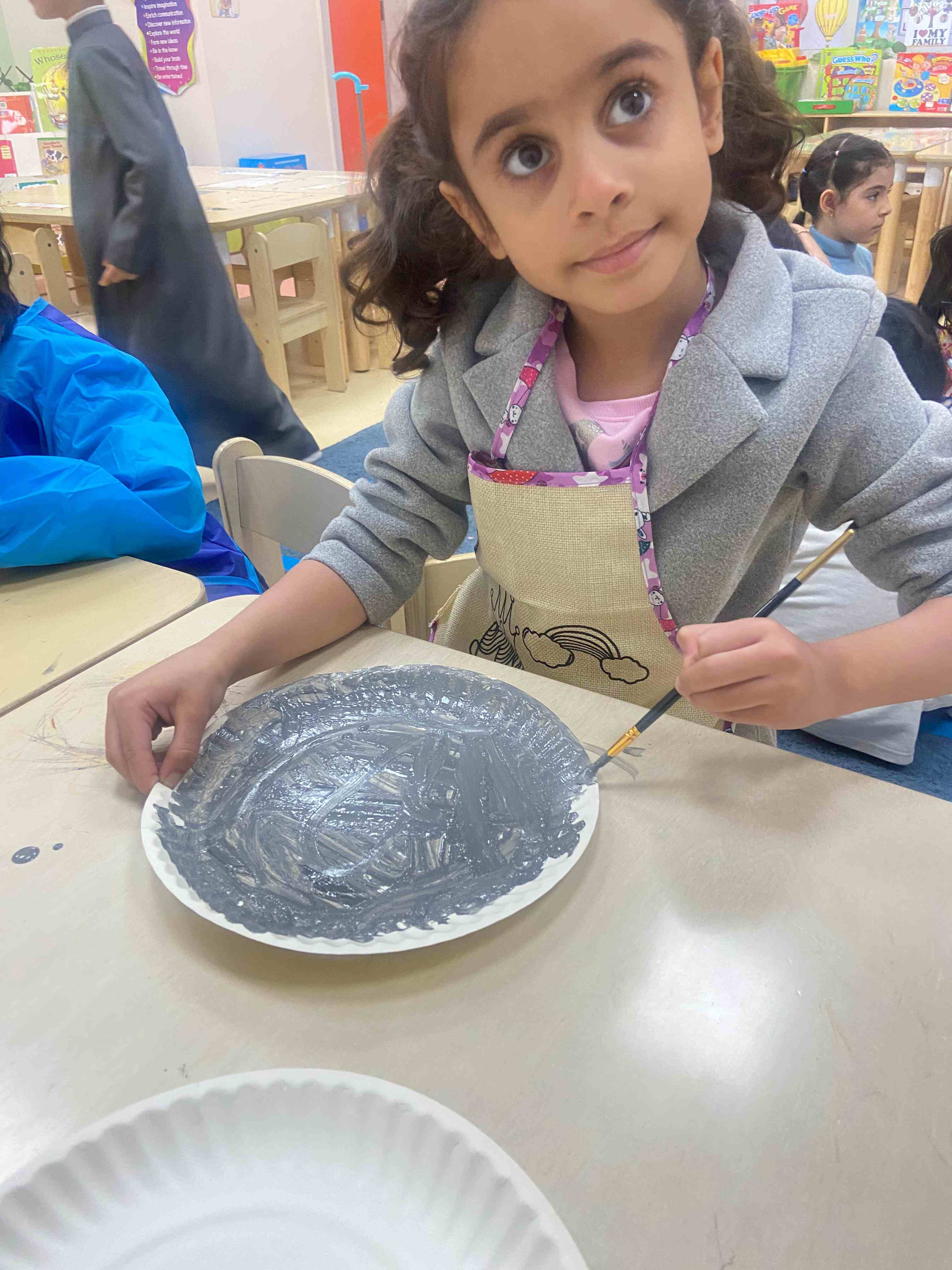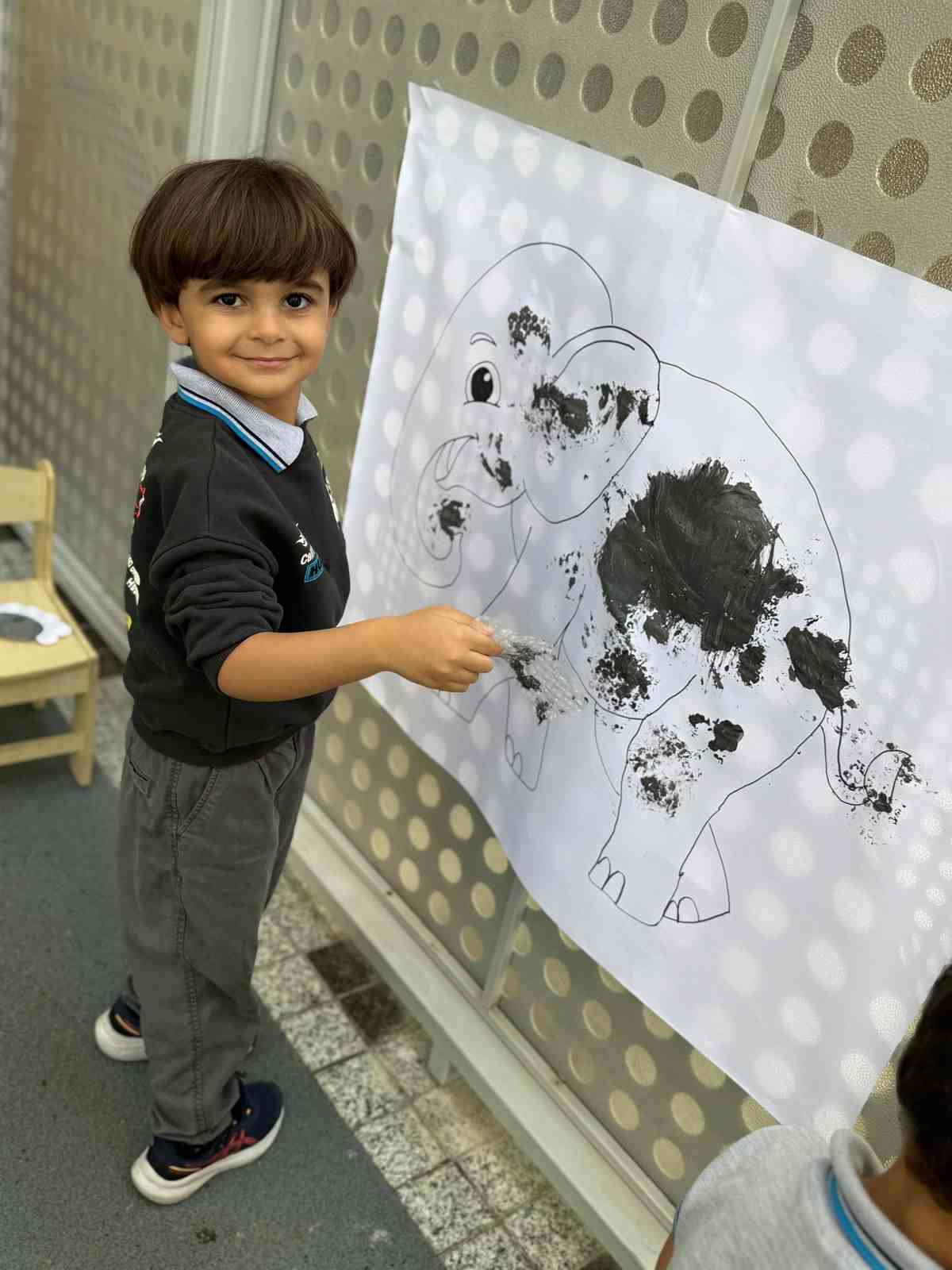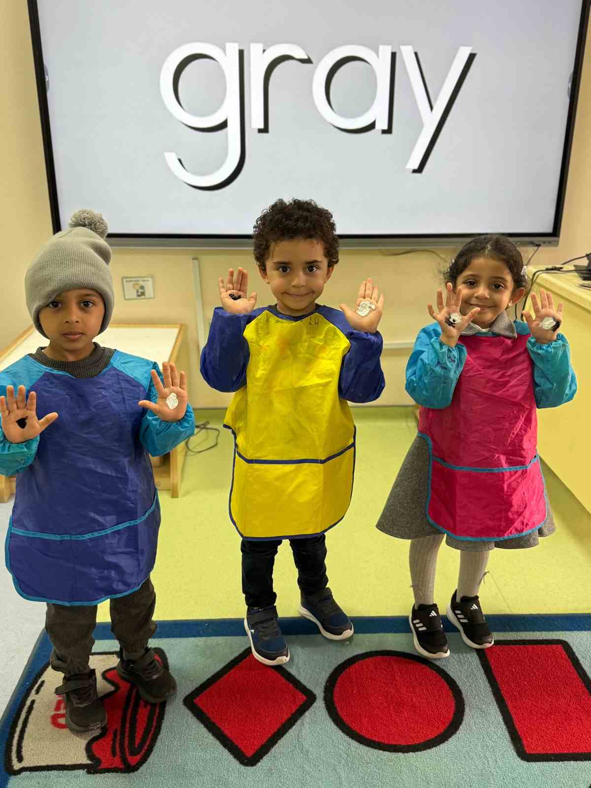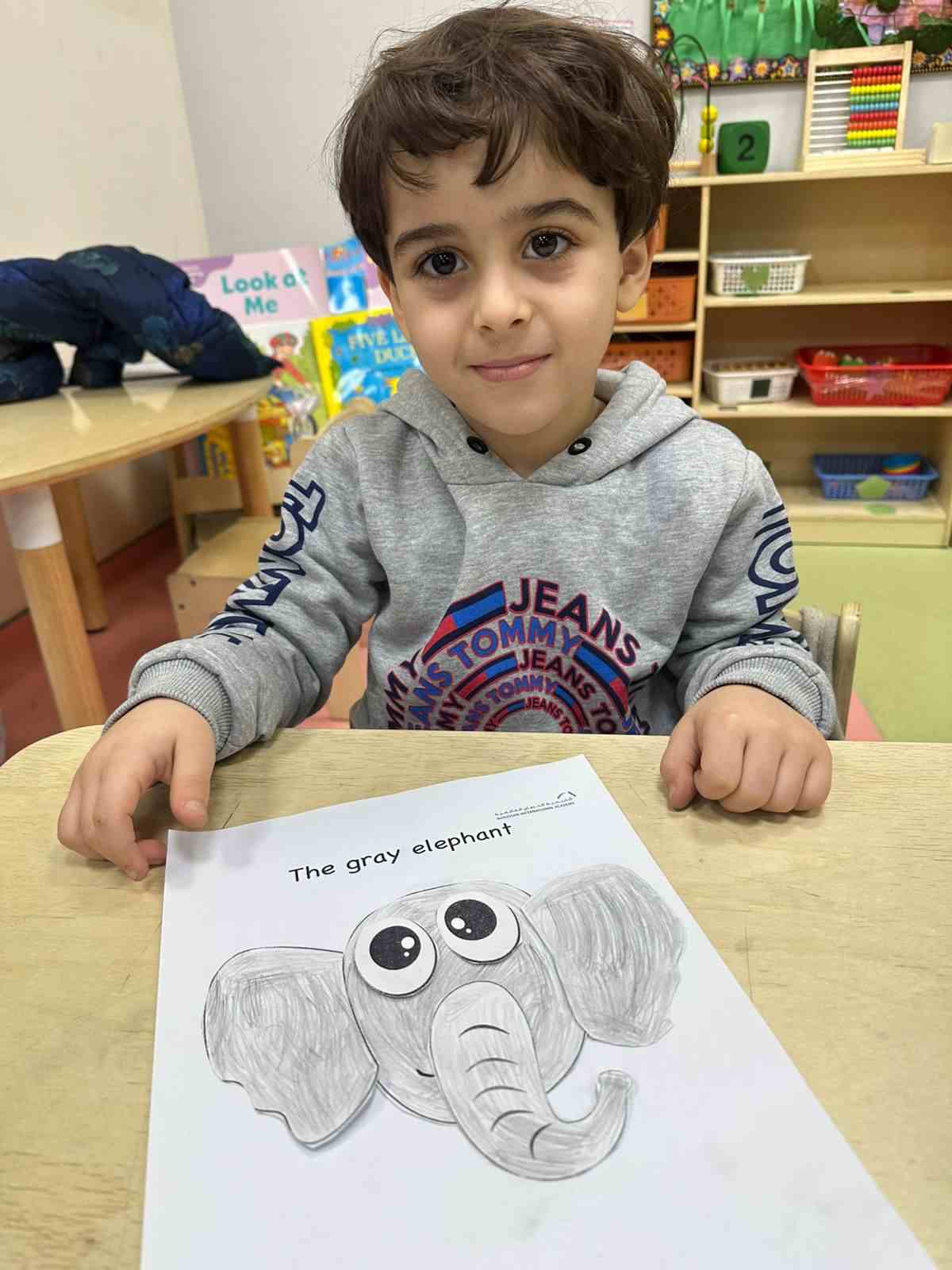 At the academy our KG had a fun Gray Day filled with learning and creativity. The children learned how to make the color gray by mixing black and white together. Everyone came to school wearing gray clothes, which made the classroom look extra special. The students worked together to create a giant elephant using foil, and they also colored pictures using the color gray. It was an exciting and memorable day for KG!