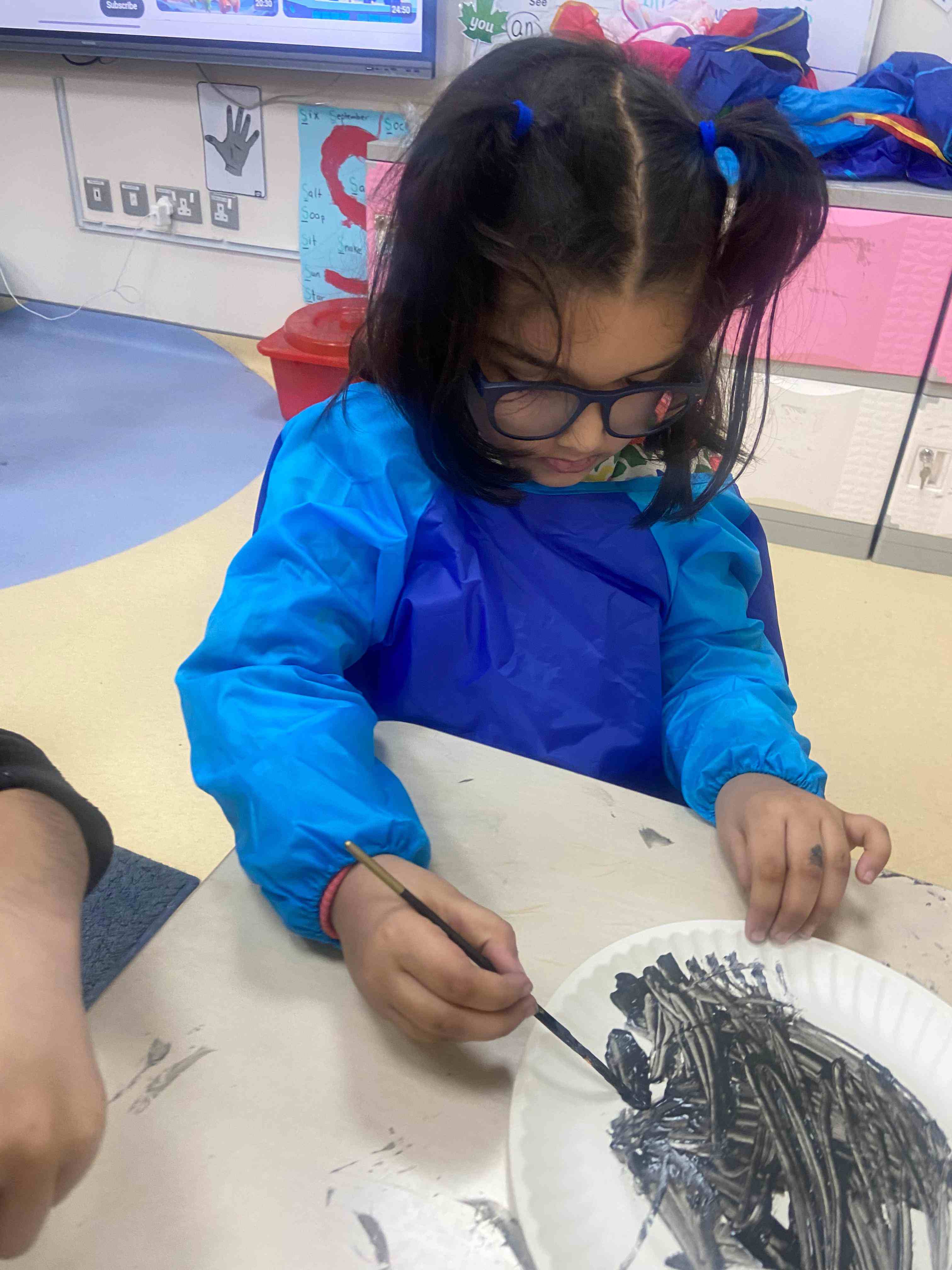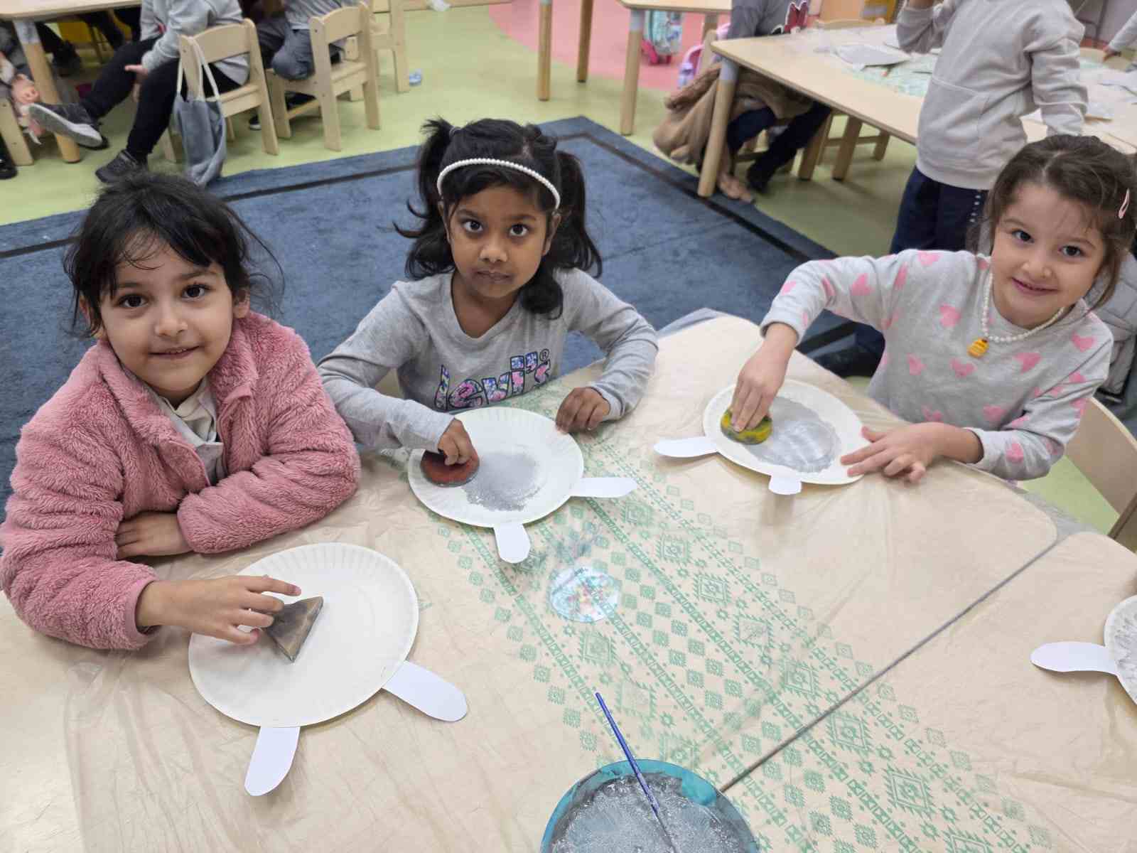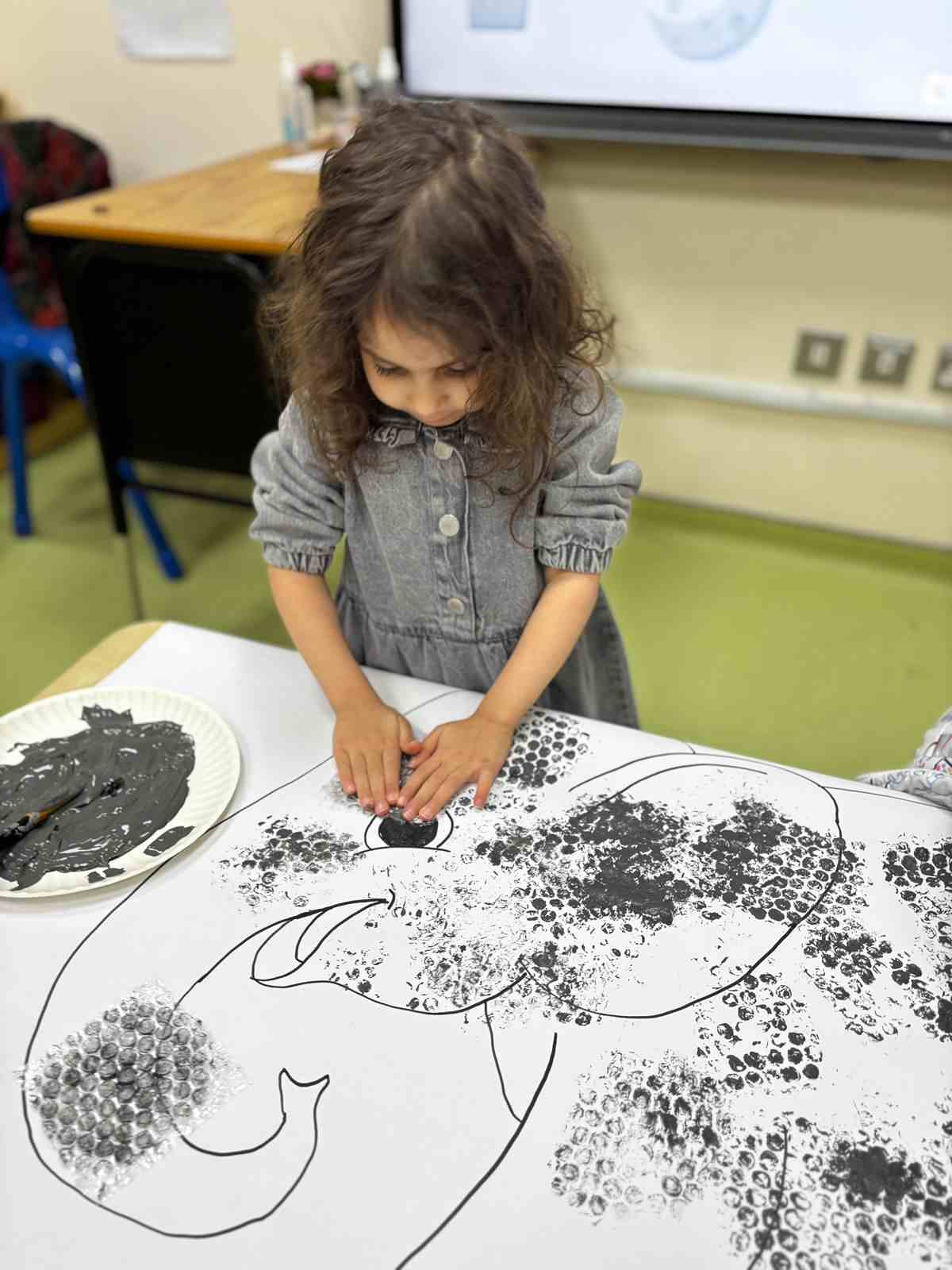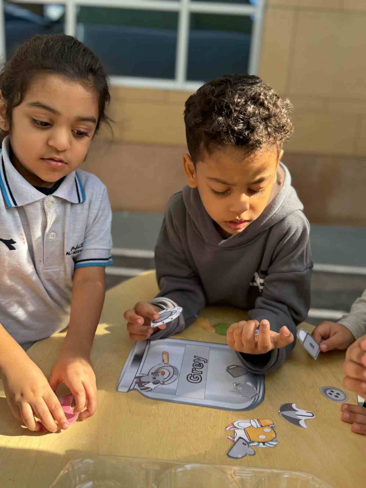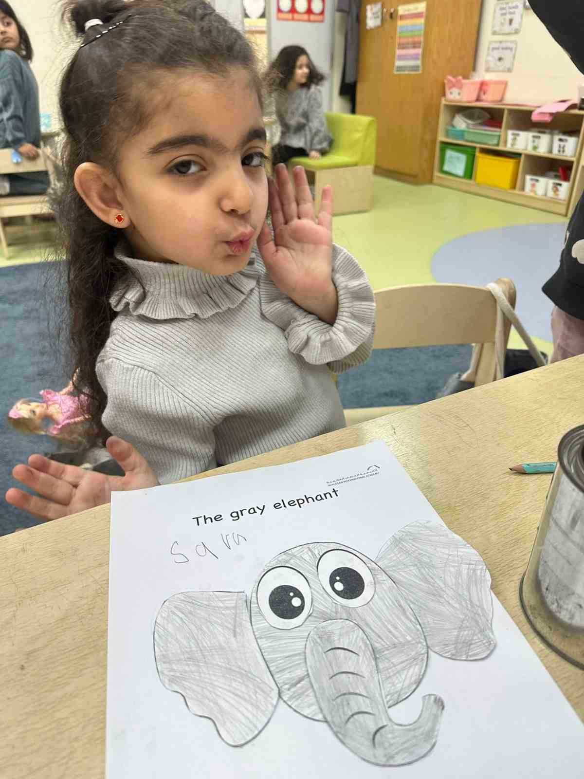At the academy our KG had a fun Gray Day filled with learning and creativity. The children learned how to make the color gray by mixing black and white together. Everyone came to school wearing gray clothes, which made the classroom look extra special. The students worked together to create a giant elephant using foil, and they also colored pictures using the color gray. It was an exciting and memorable day for KG!