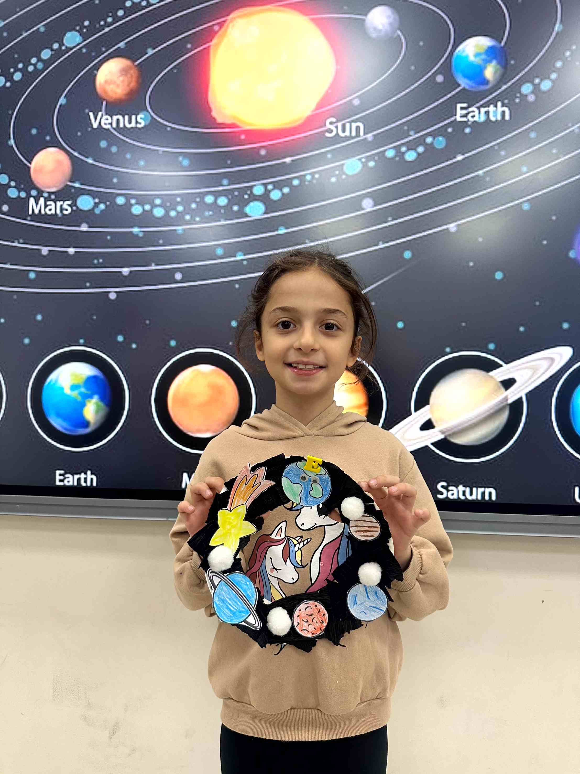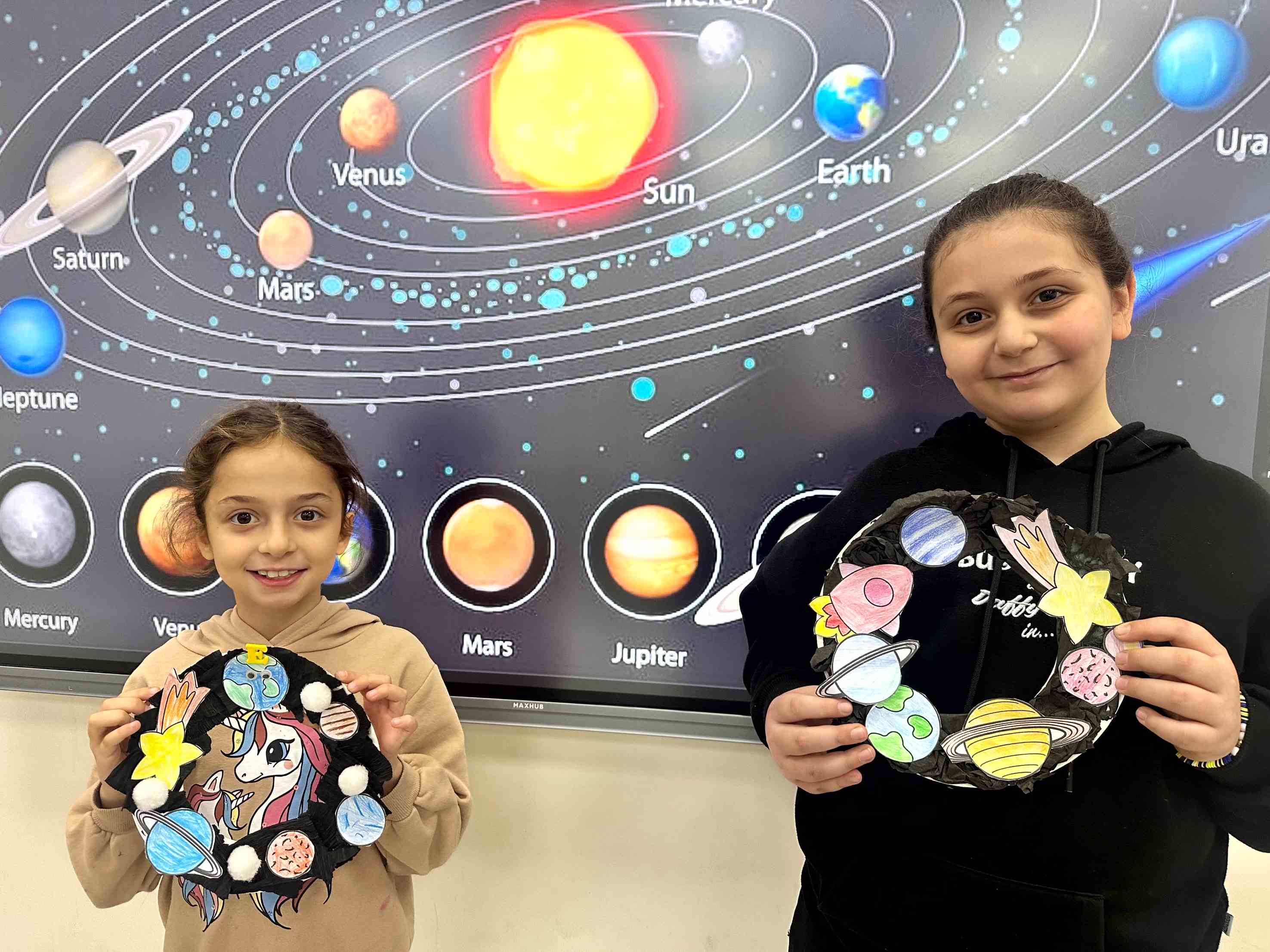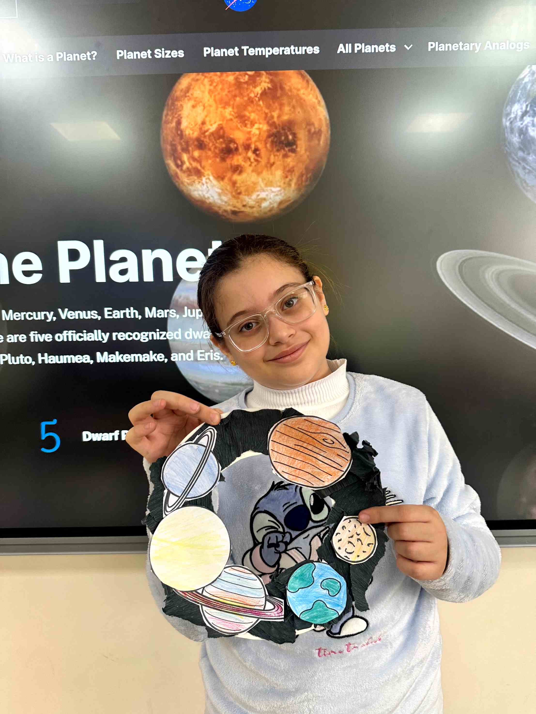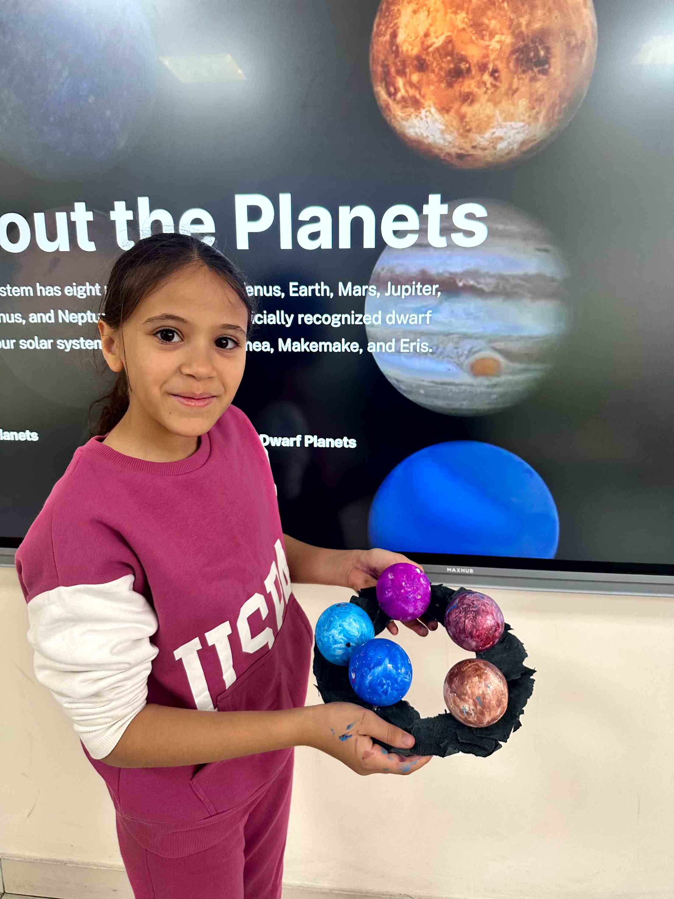 As part of the project, students designed creative models illustrating the planets and their order around the Sun. The project aimed to strengthen scientific understanding, develop research and hands-on skills, and encourage creativity and collaboration among students.