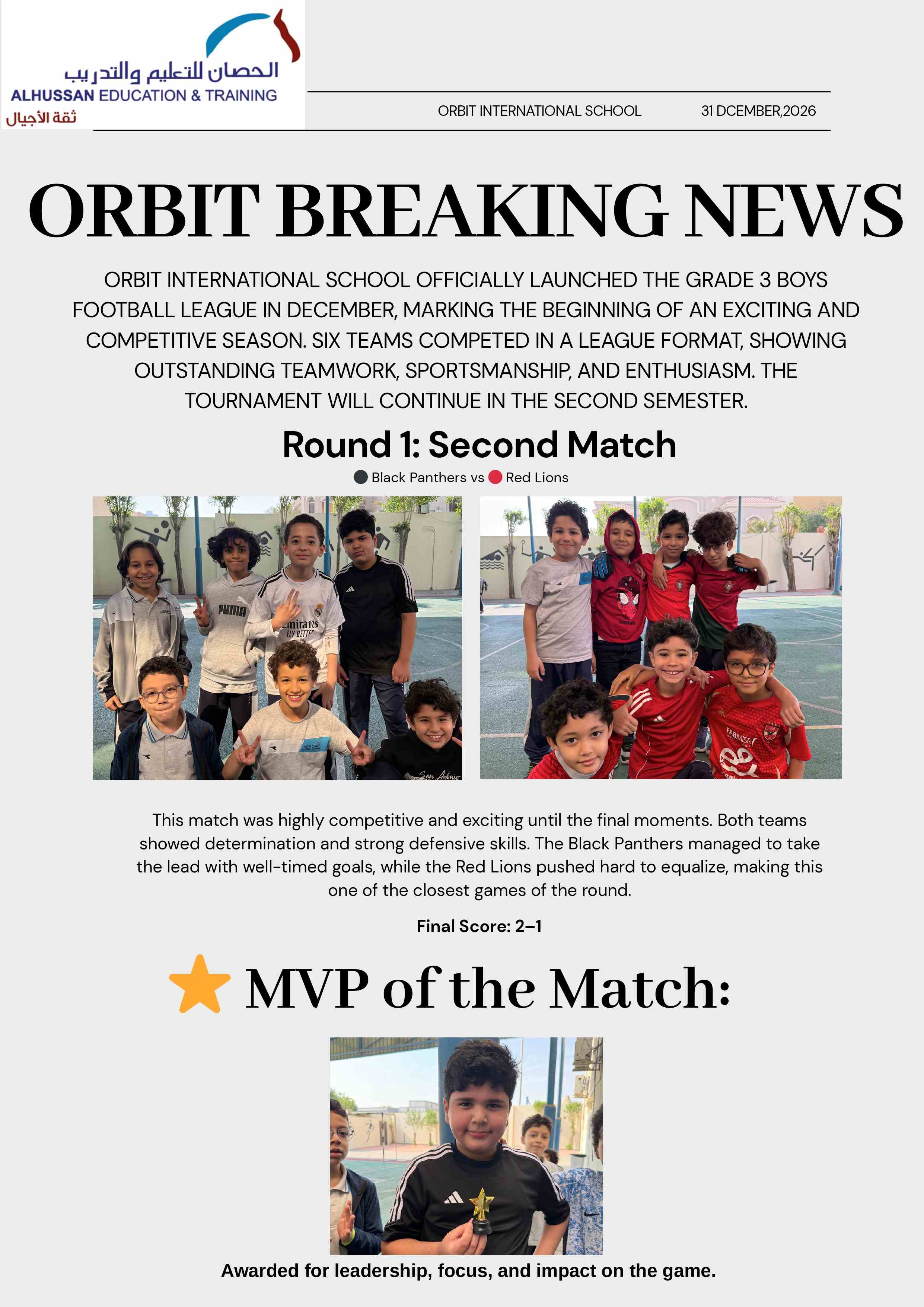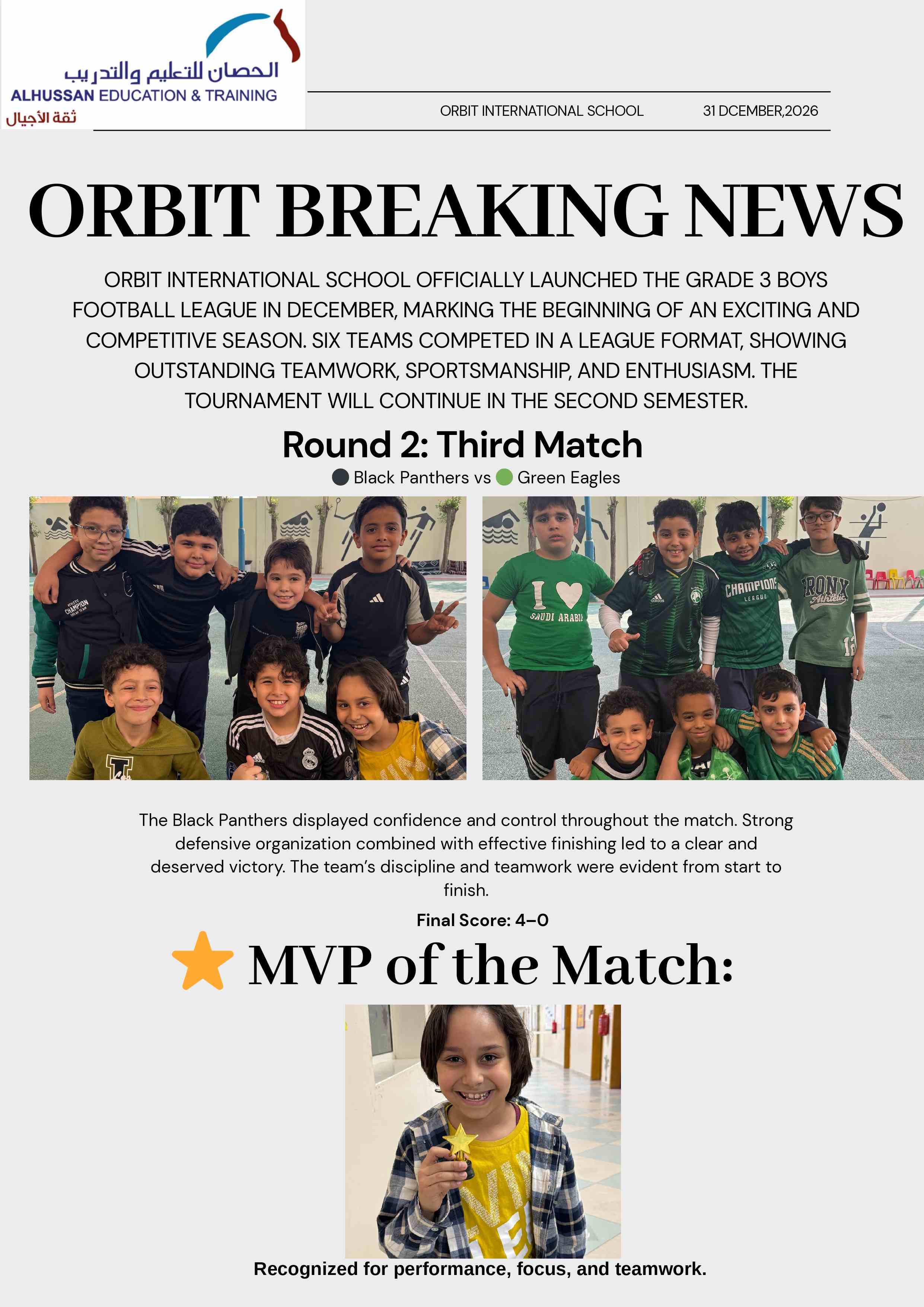 We officially launched the Grade 3 Boys’ Football League in December, marking the beginning of an exciting and competitive season. Six teams competed in a league format, demonstrating outstanding teamwork, sportsmanship, and enthusiasm throughout the tournament.