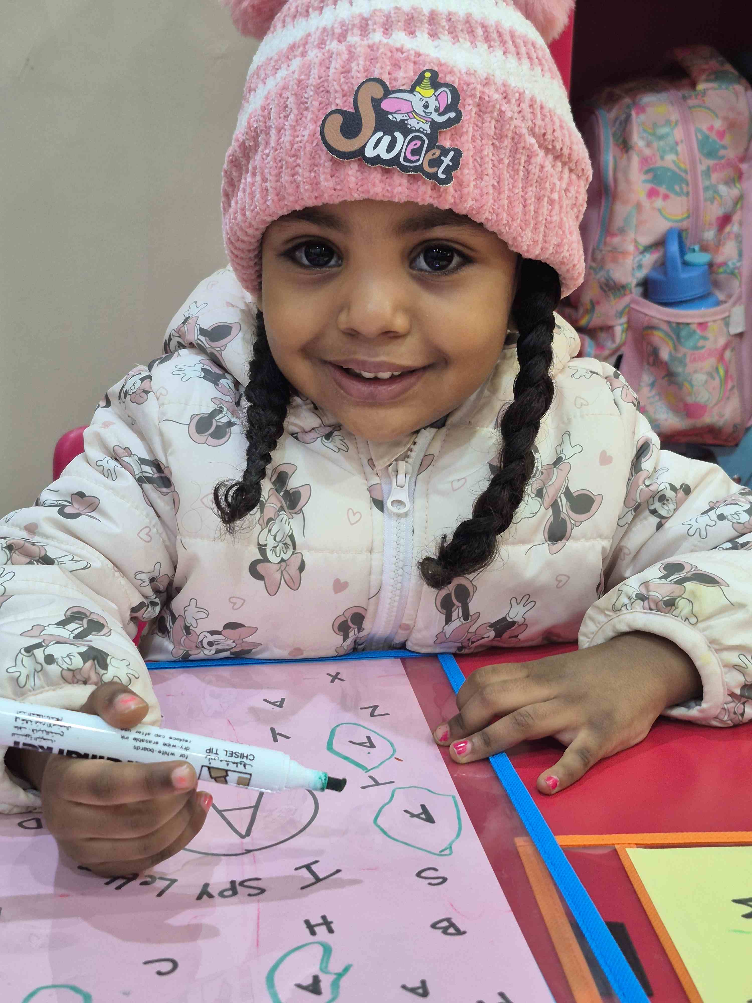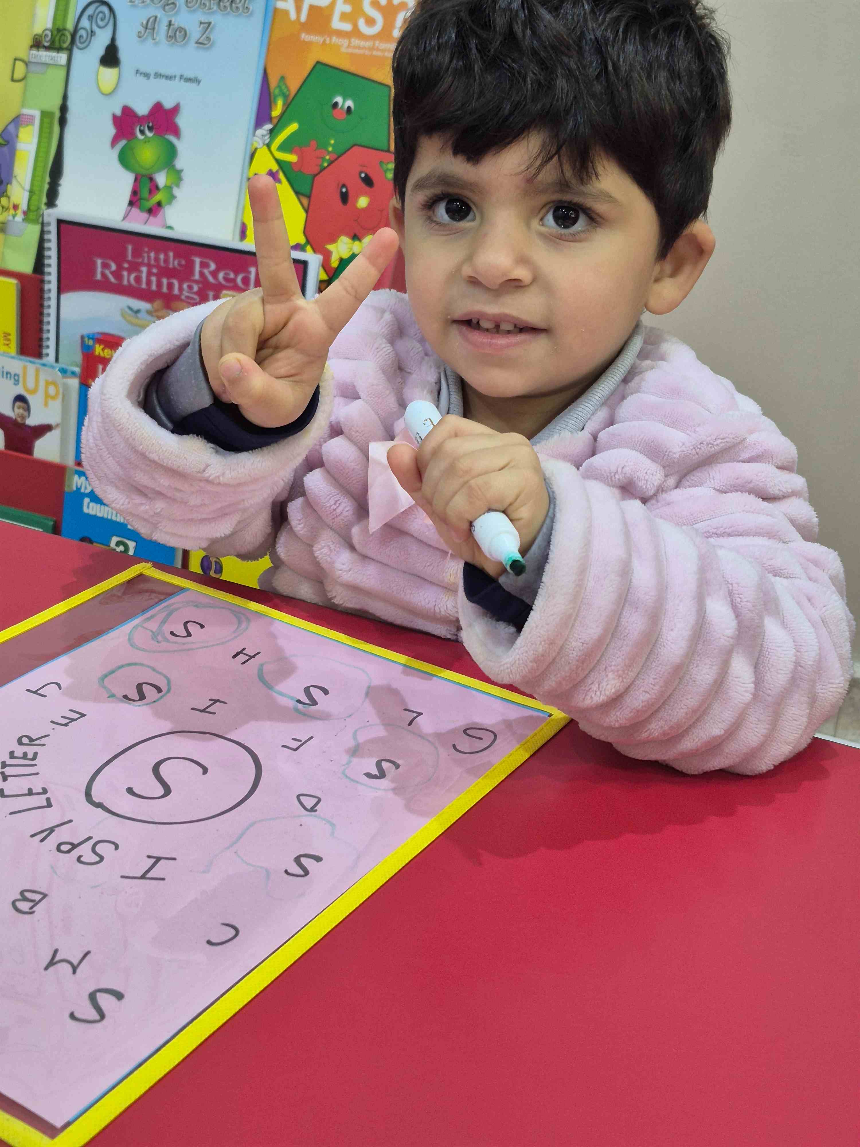 Our KG1 H student were given an I Find a Letter worksheet. They had to search for a specific target letter among a mix of different letters and then circle all the correct matches they could find. This activity helps students identify letters, practice visual scanning skills, and develop early literacy awareness in a fun and engaging way.