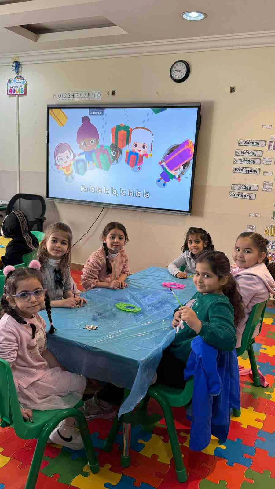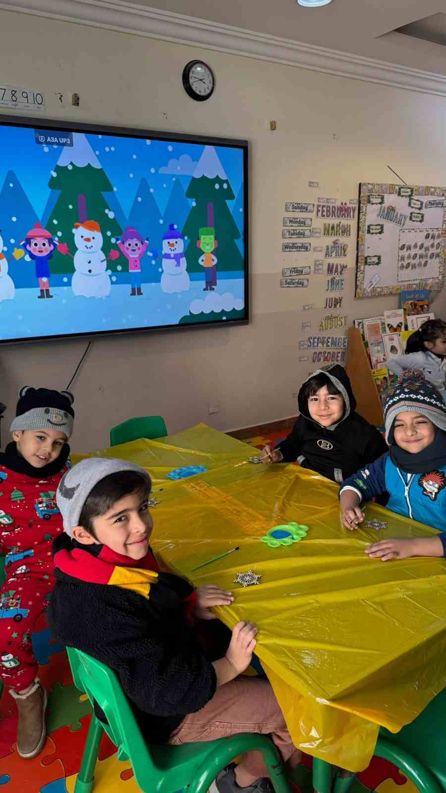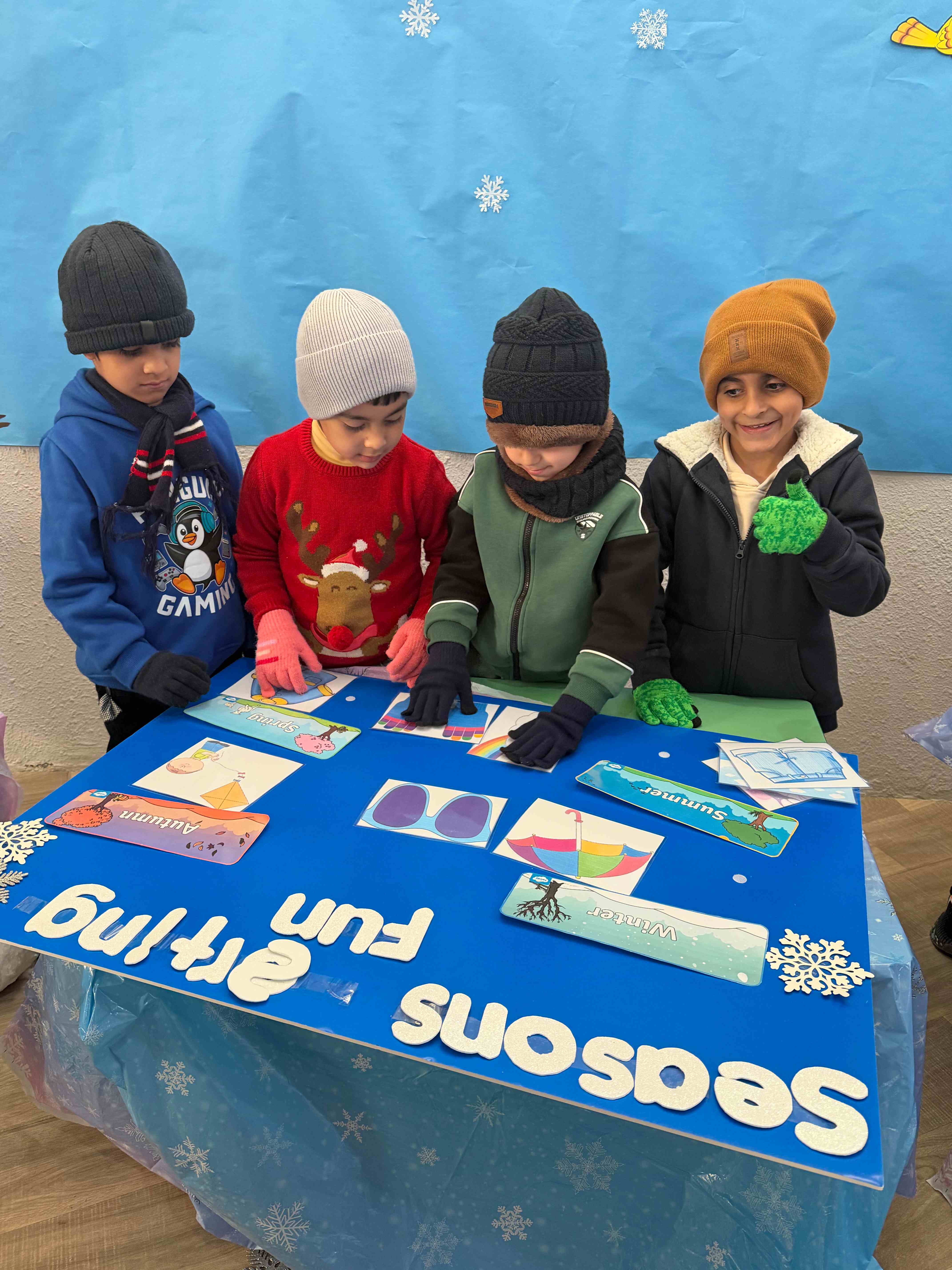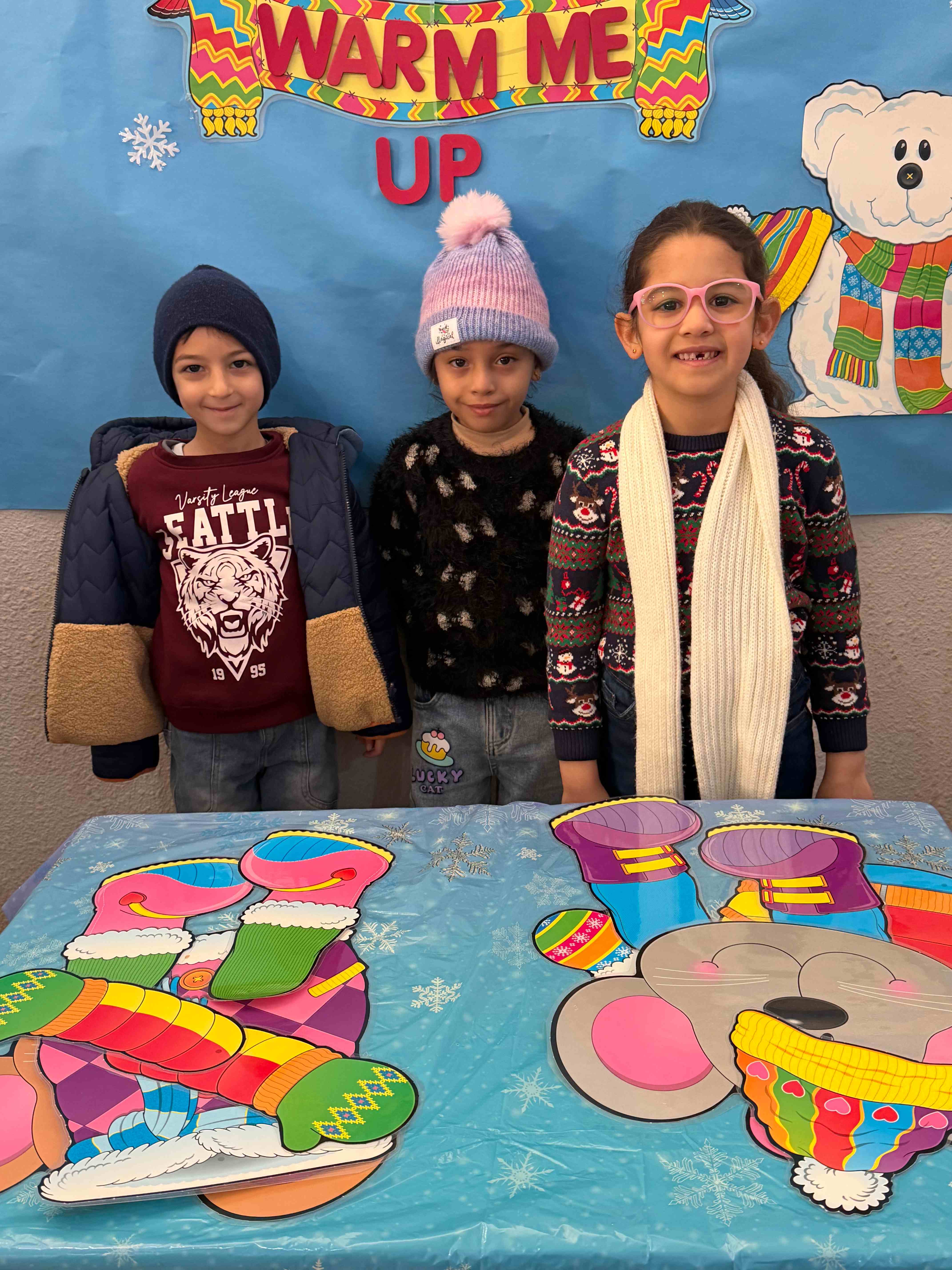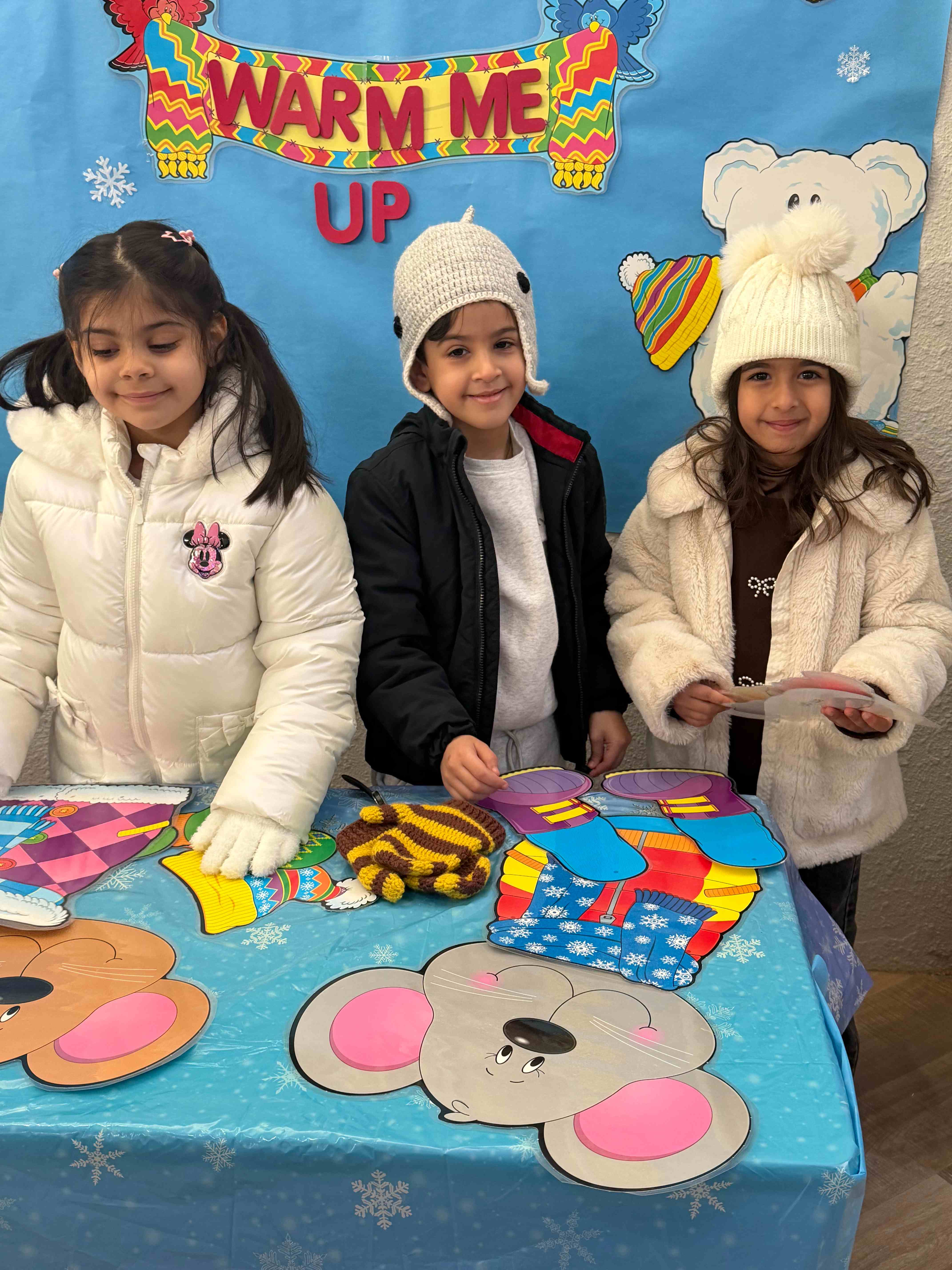 Our KG students had a winter Wonderland Day full of fun activities. Students enjoyed dressing up our mice characters with winter clothes, they enjoyed filling the snowman with cotton balls and sorting pictures depending on the season. Our students and taking pictures enjoyed taking pictures at the winter-themed photo booth.