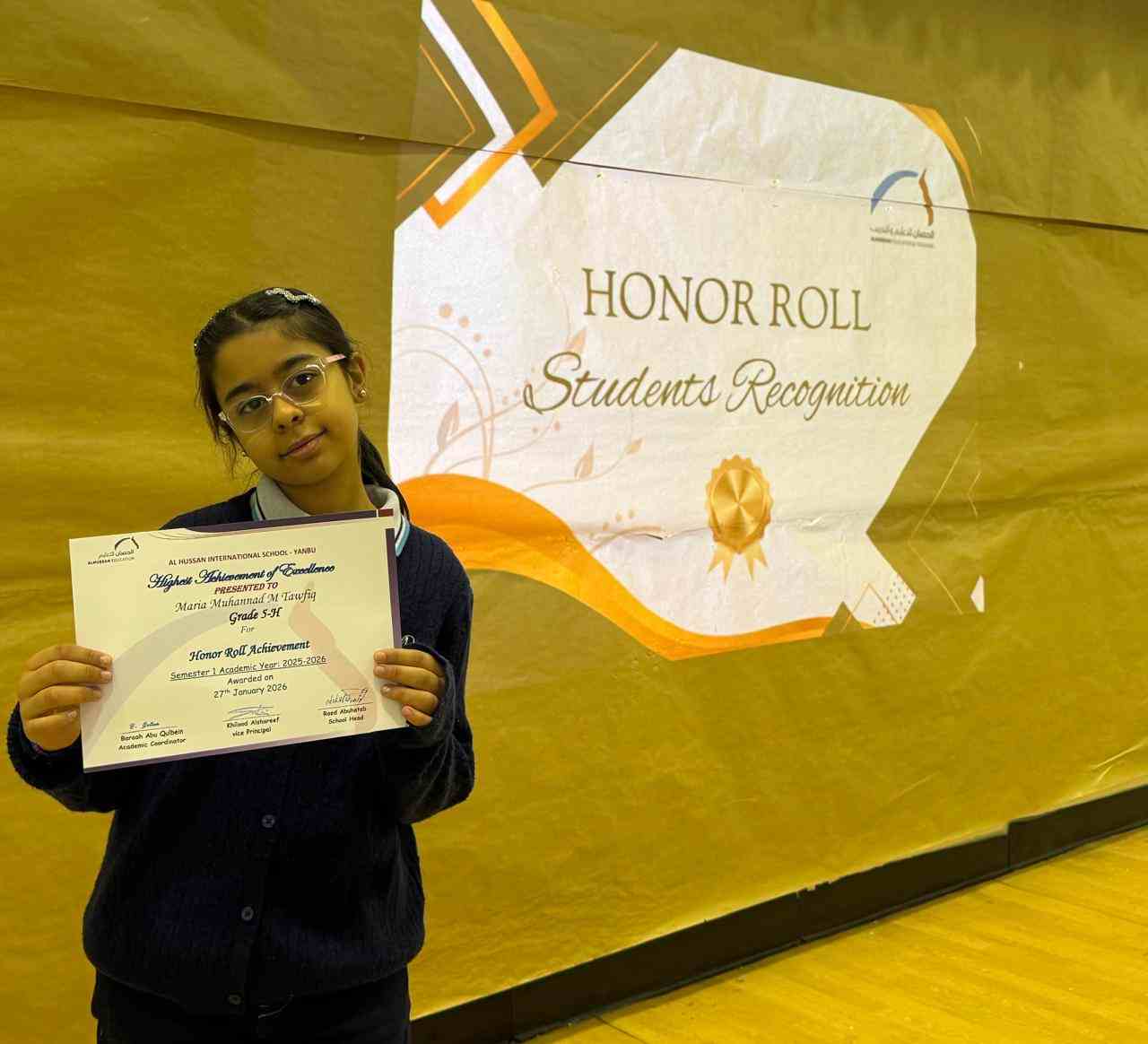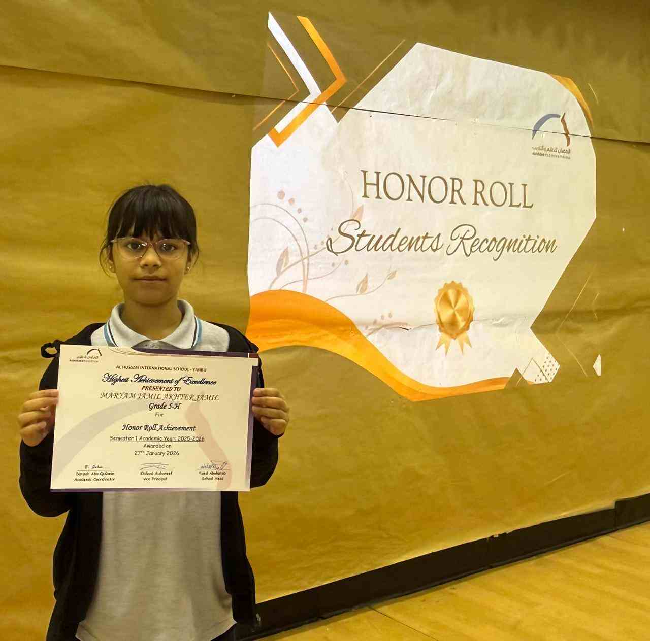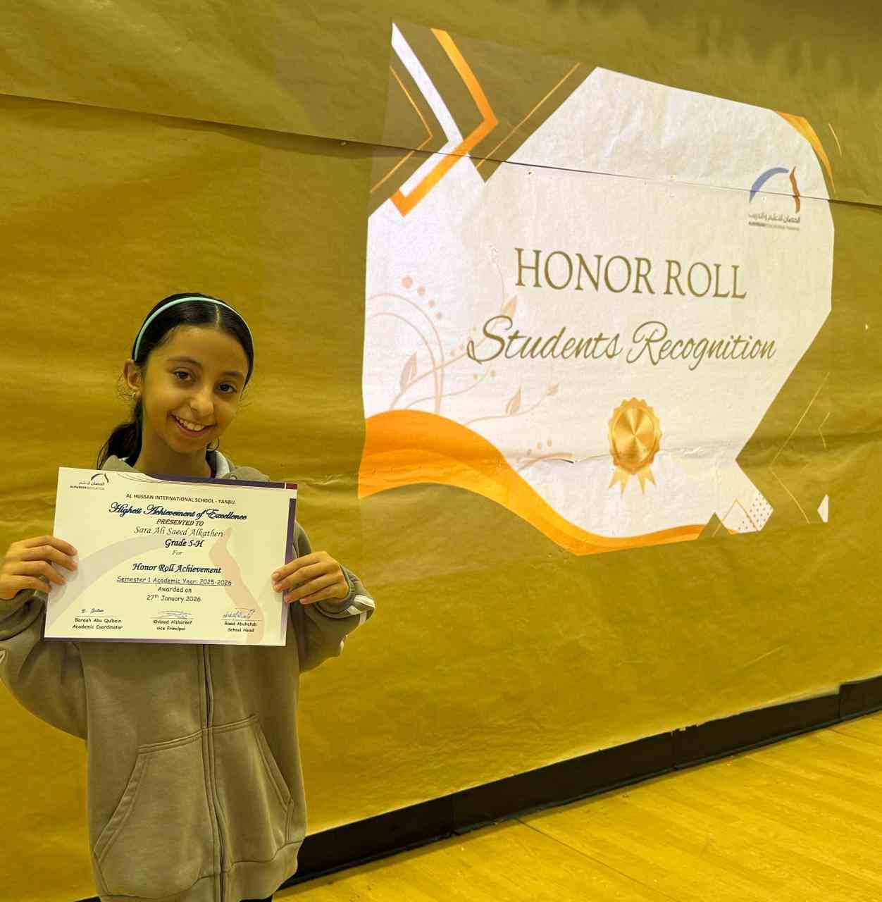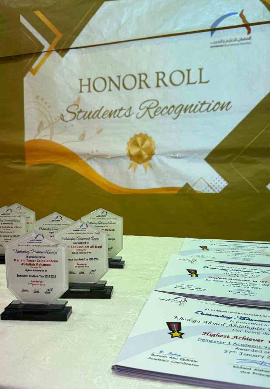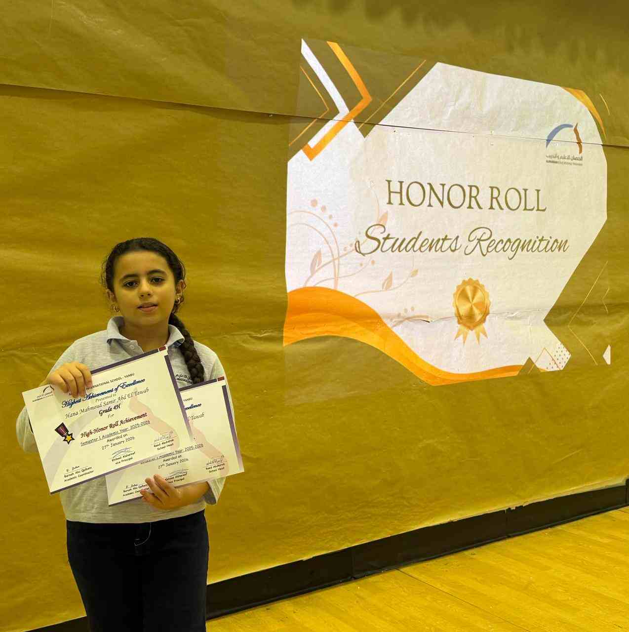 The Honor Roll / Students’ Recognition ceremony was held at school – (Girls’ Section) on Tuesday, 27-1-2026, recognizing students for their outstanding performance and academic dedication. The event highlighted their hard work and perseverance, fostering a proud and motivating atmosphere within the school community.