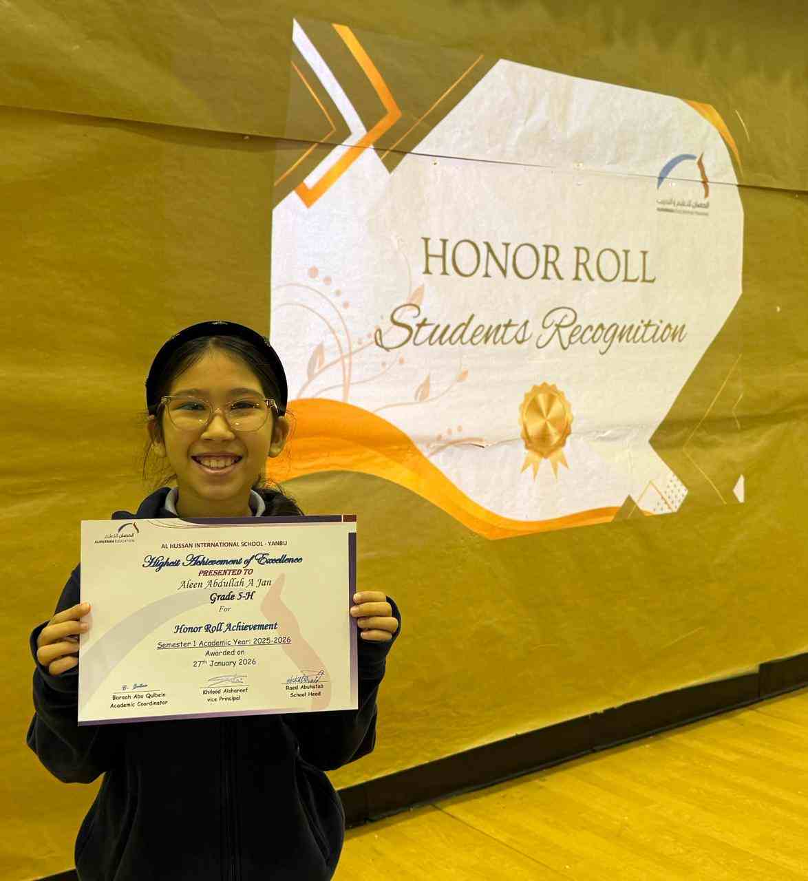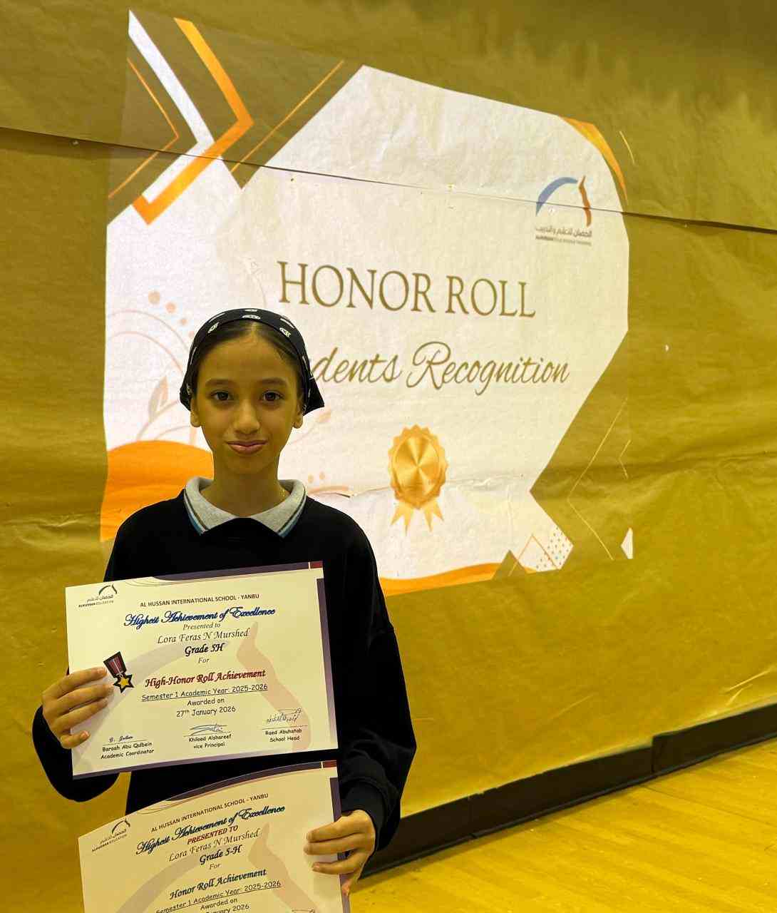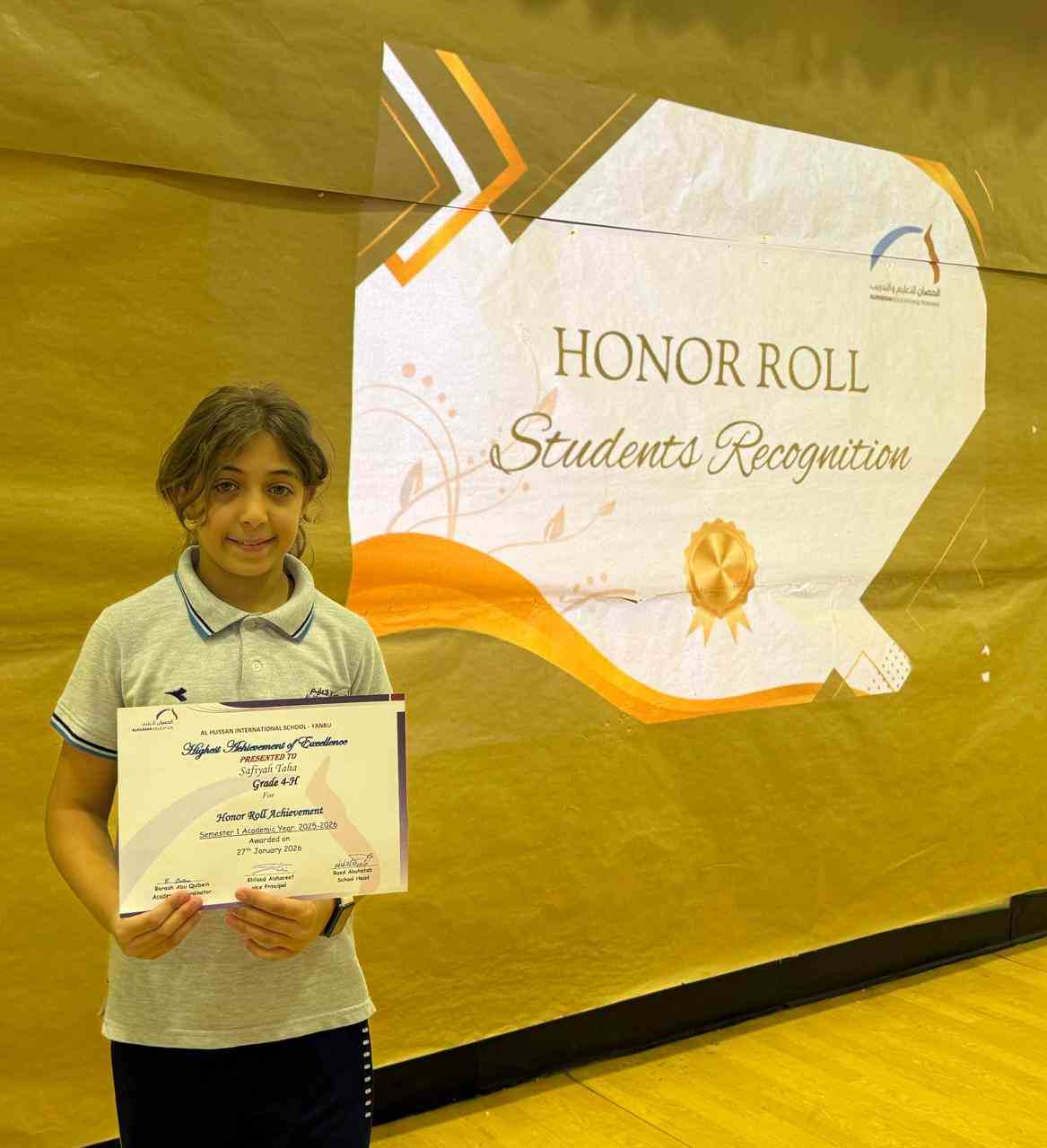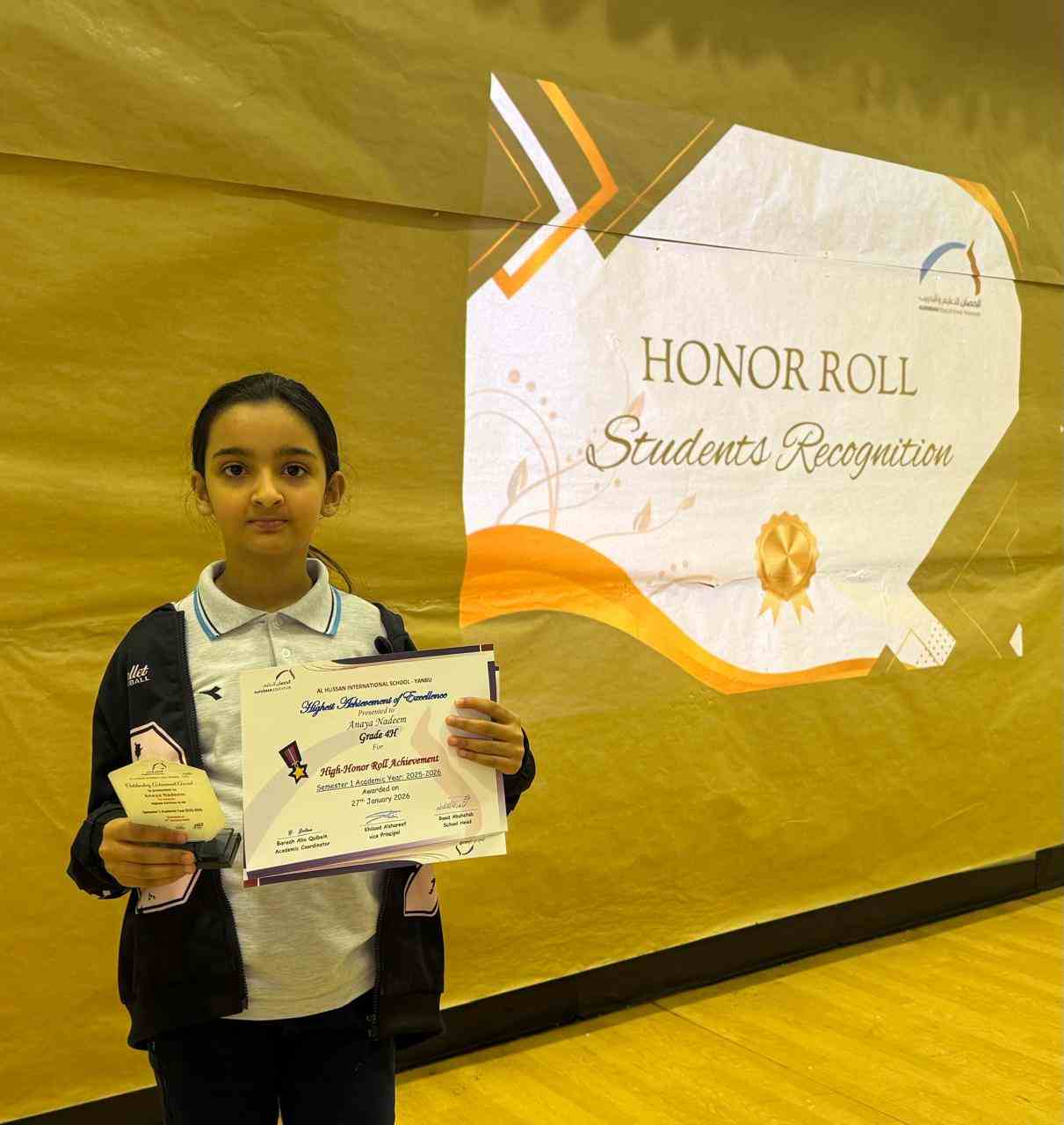 The Honor Roll / Students’ Recognition ceremony was held at school – (Girls’ Section) on Tuesday, 27-1-2026, recognizing students for their outstanding performance and academic dedication. The event highlighted their hard work and perseverance, fostering a proud and motivating atmosphere within the school community.