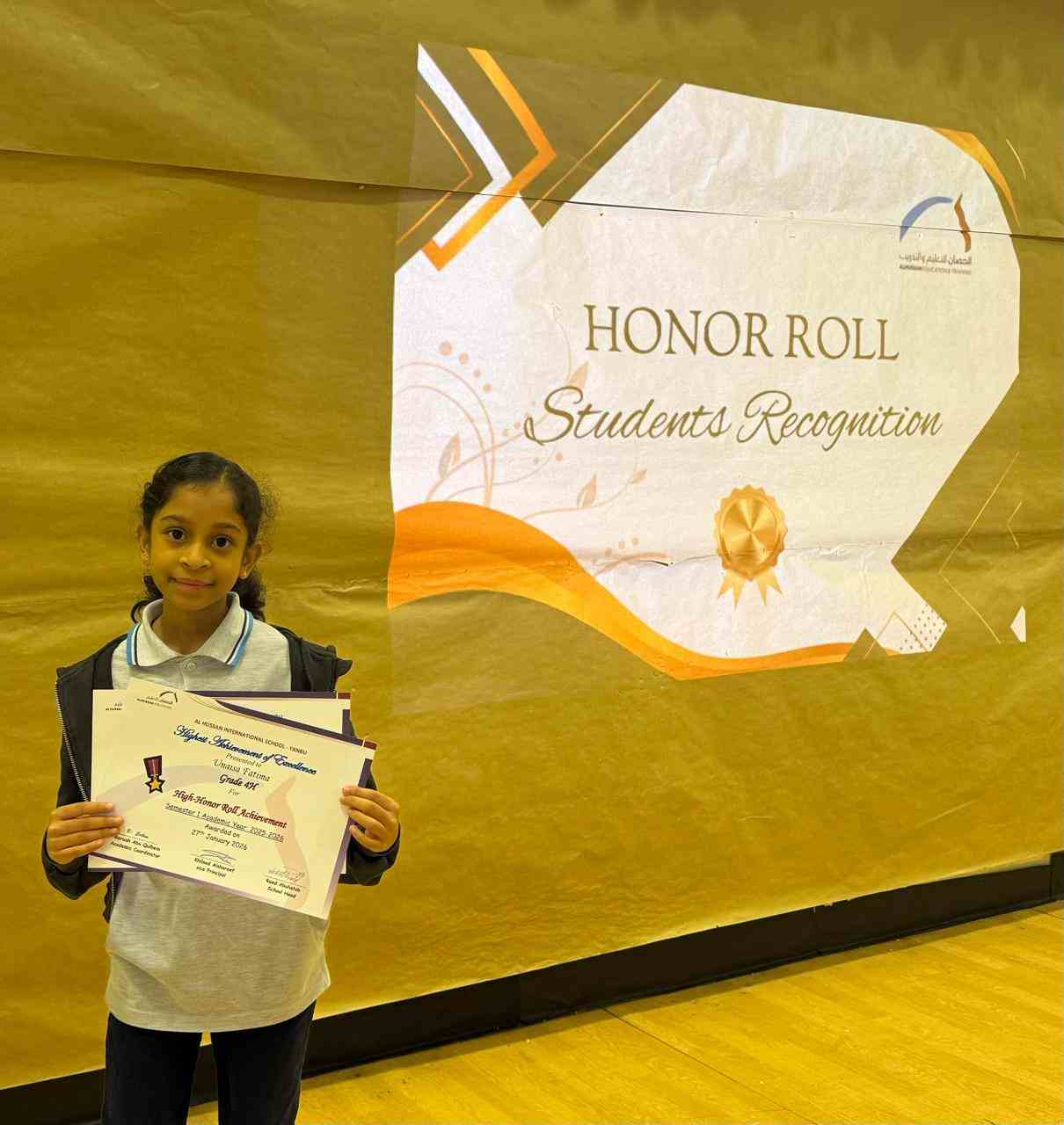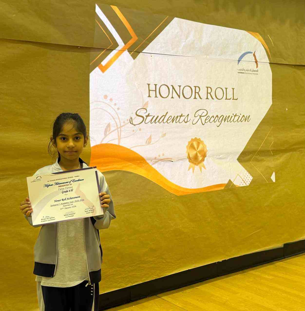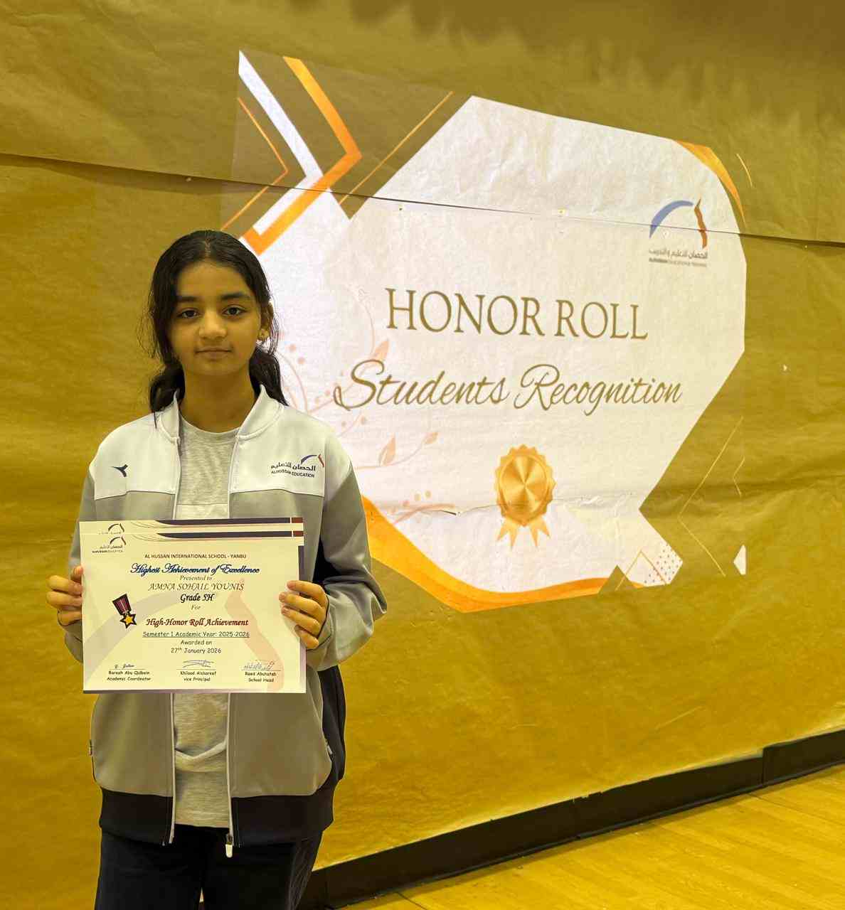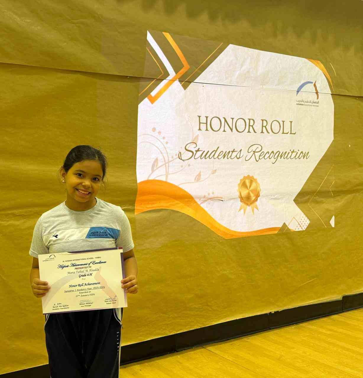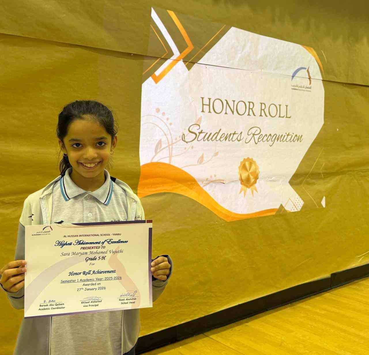 The Honor Roll / Students’ Recognition ceremony was held at school – (Girls’ Section) on Tuesday, 27-1-2026, recognizing students for their outstanding performance and academic dedication. The event highlighted their hard work and perseverance, fostering a proud and motivating atmosphere within the school community.