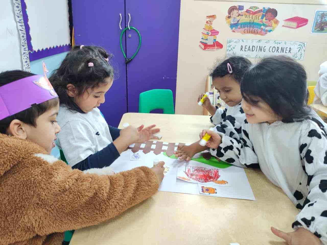 As part of the activity, KG3 students colored their favorite animals and designed crowns and barn collage adding an extra layer of creativity and excitement. This joyful experience helped promote creativity, confidence, fine motor skills, and happy learning in an engaging environment