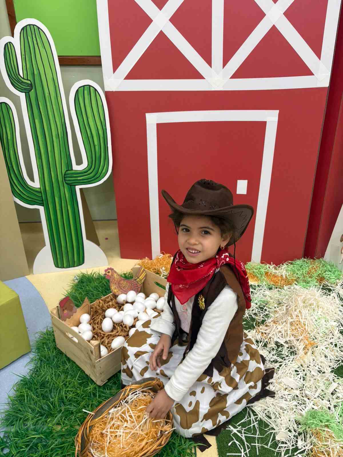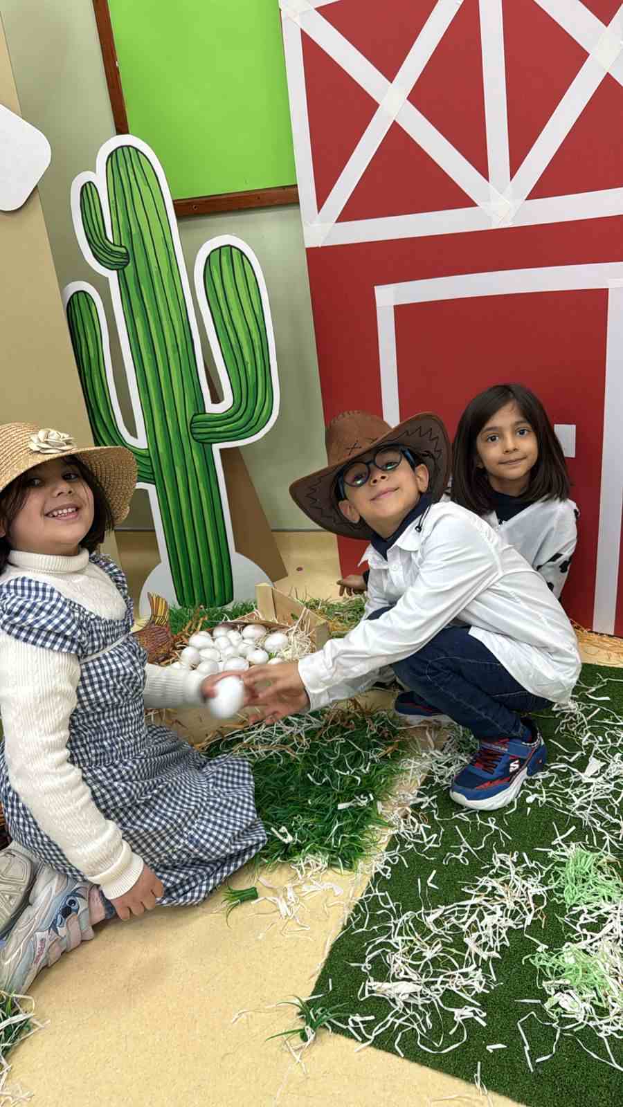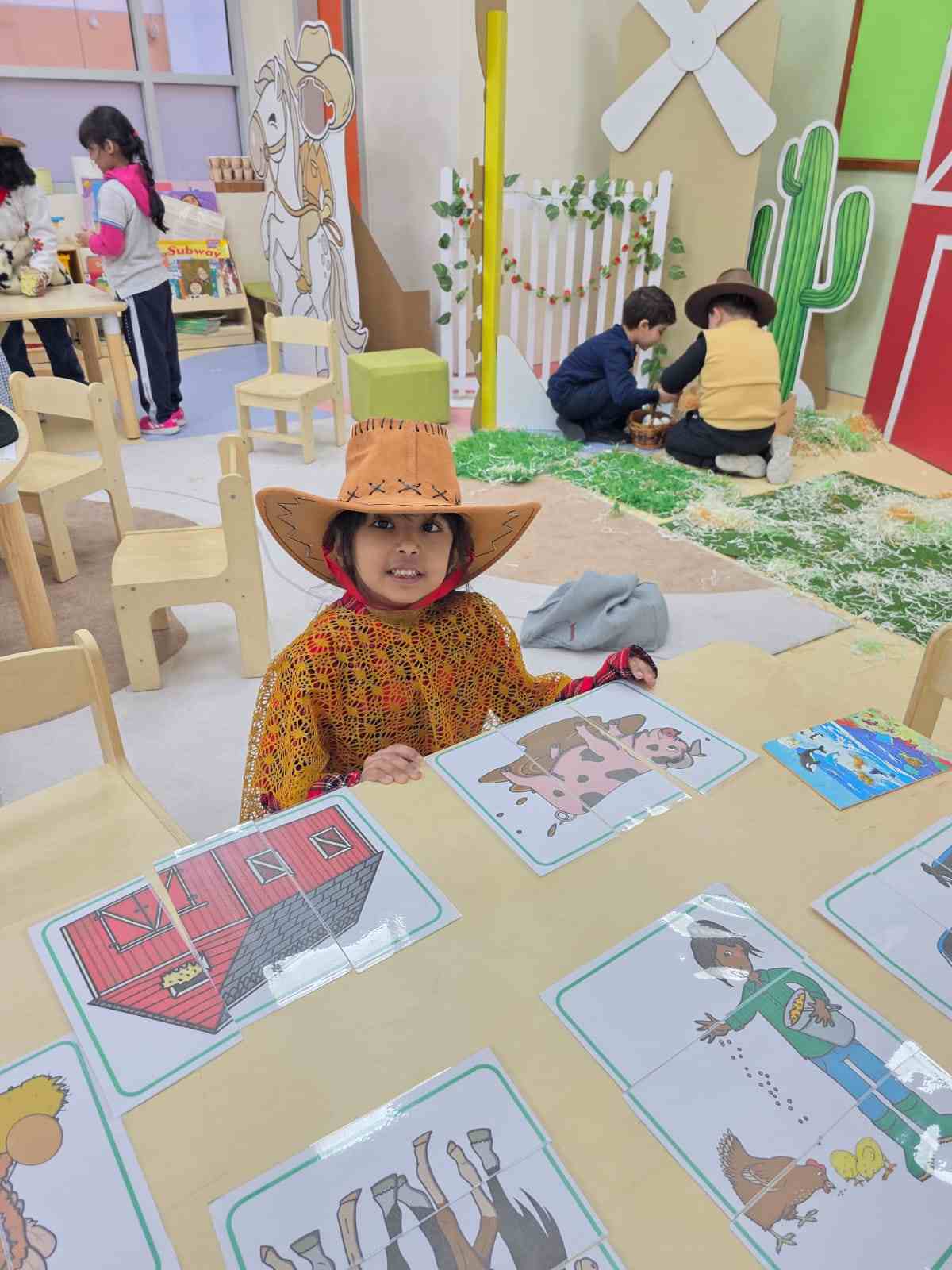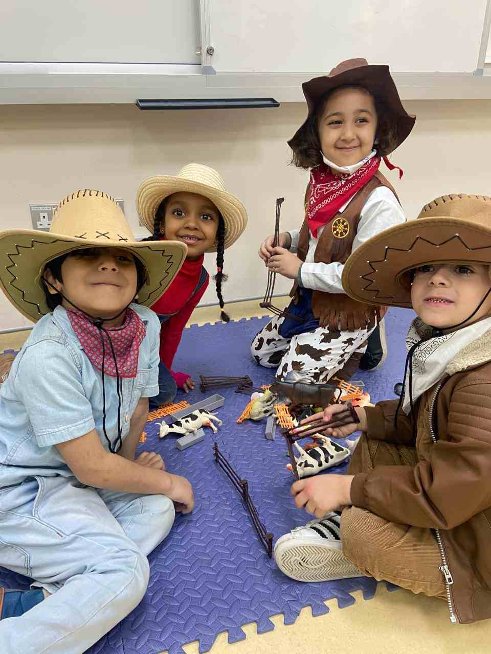At the academy, the KG3 students enjoyed a fun and exciting Farm Day, where they dressed up as cowboys and cowgirls, adding a lively farm atmosphere to the classroom. They participated in hands-on activities such as milking a cow, solving puzzles, matching shapes, and creating fences using ice cream sticks. The day was filled with learning, creativity, and lots of smiles as the children explored farm life through play.
