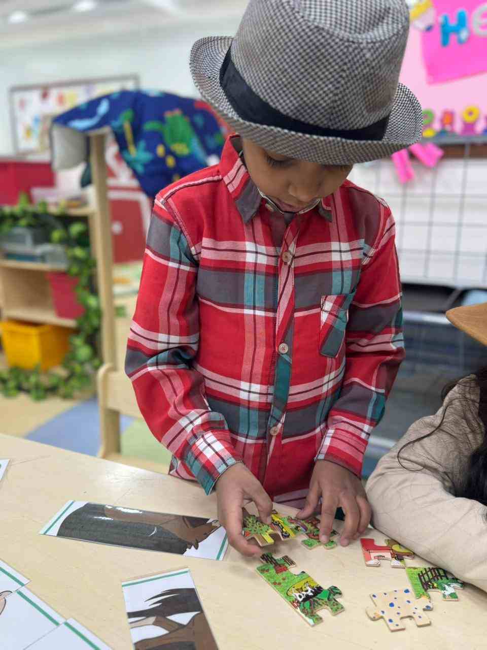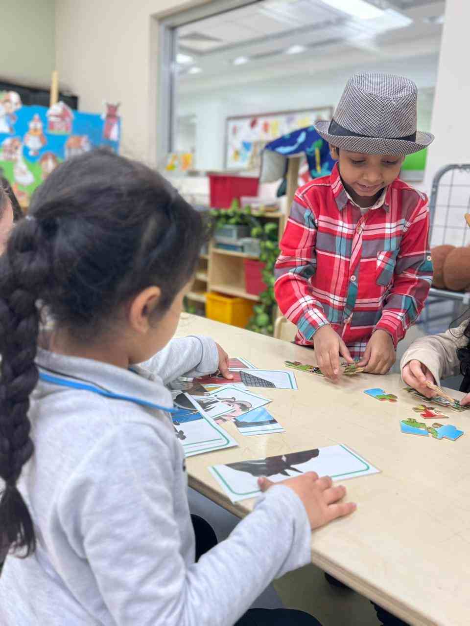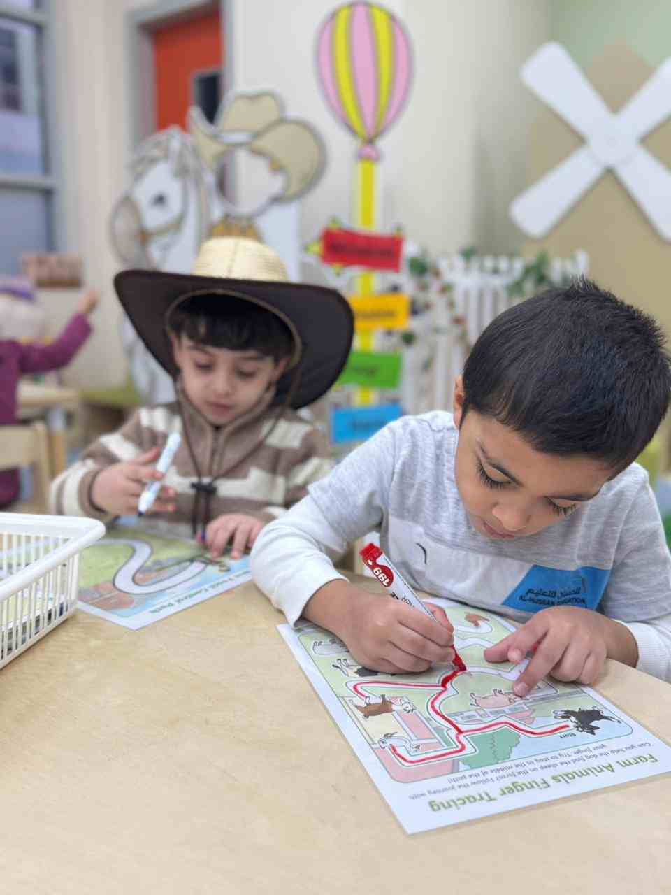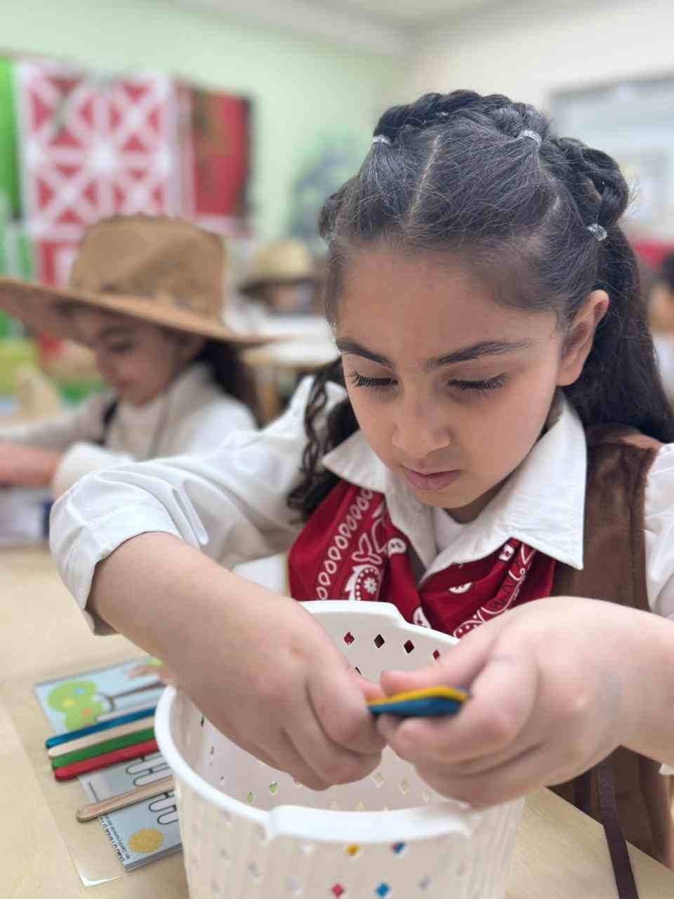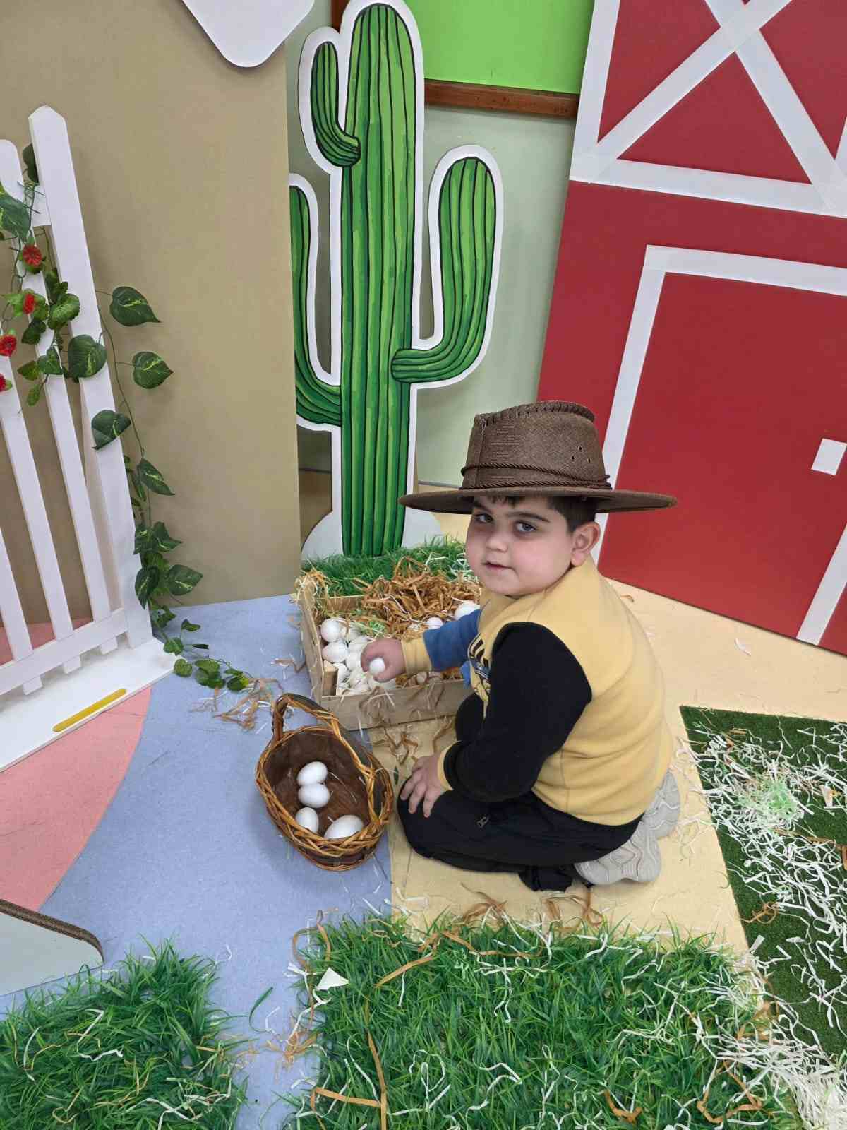 At the academy, the KG3 students enjoyed a fun and exciting Farm Day, where they dressed up as cowboys and cowgirls, adding a lively farm atmosphere to the classroom. They participated in hands-on activities such as milking a cow, solving puzzles, matching shapes, and creating fences using ice cream sticks. The day was filled with learning, creativity, and lots of smiles as the children explored farm life through play.