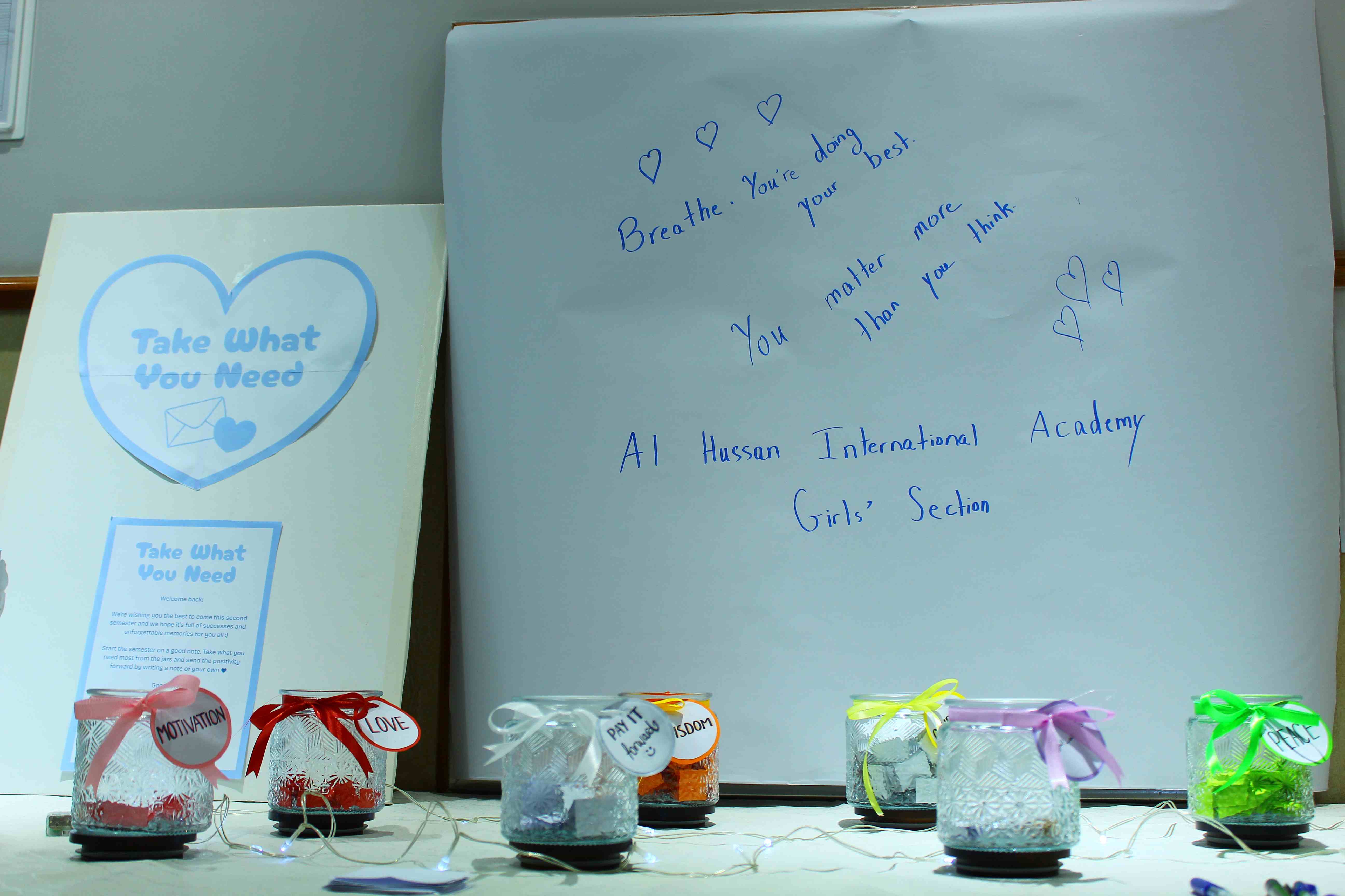 Girls’ Section, the “Take What You Need” wellbeing initiative was successfully implemented to promote positivity, reflection, and emotional support within the school community.