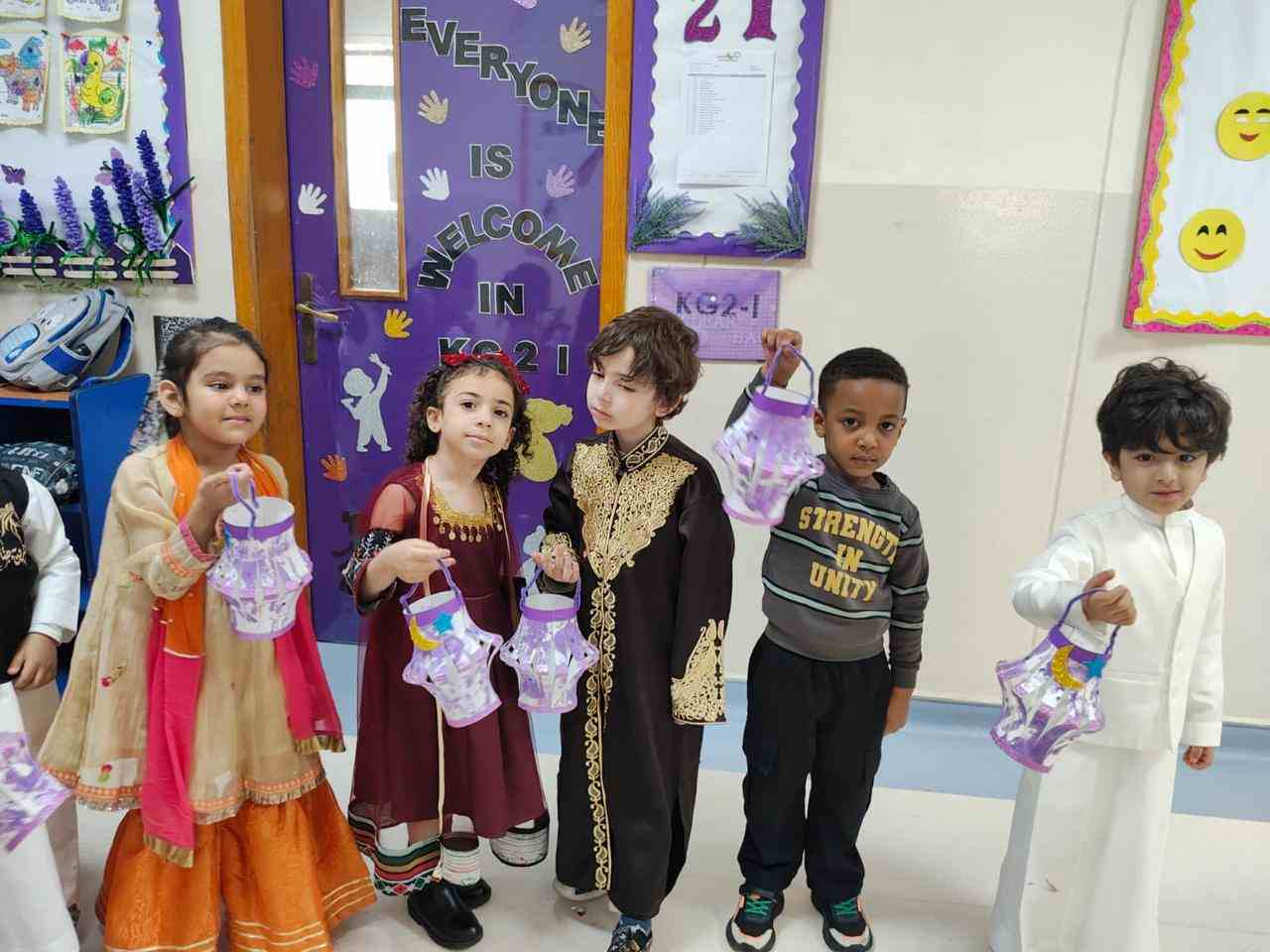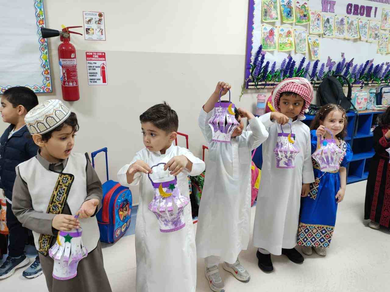 Our KG moms joined their children in a joyful “Pretend Iftar” celebration as part of the students’ learning about Ramadan around the World. The event began with a delightful student parade, where children proudly carried their handmade lanterns and performed cheerful Ramadan songs. Moms also took part by engaging in religious Q&A, adding a meaningful touch to the celebration.