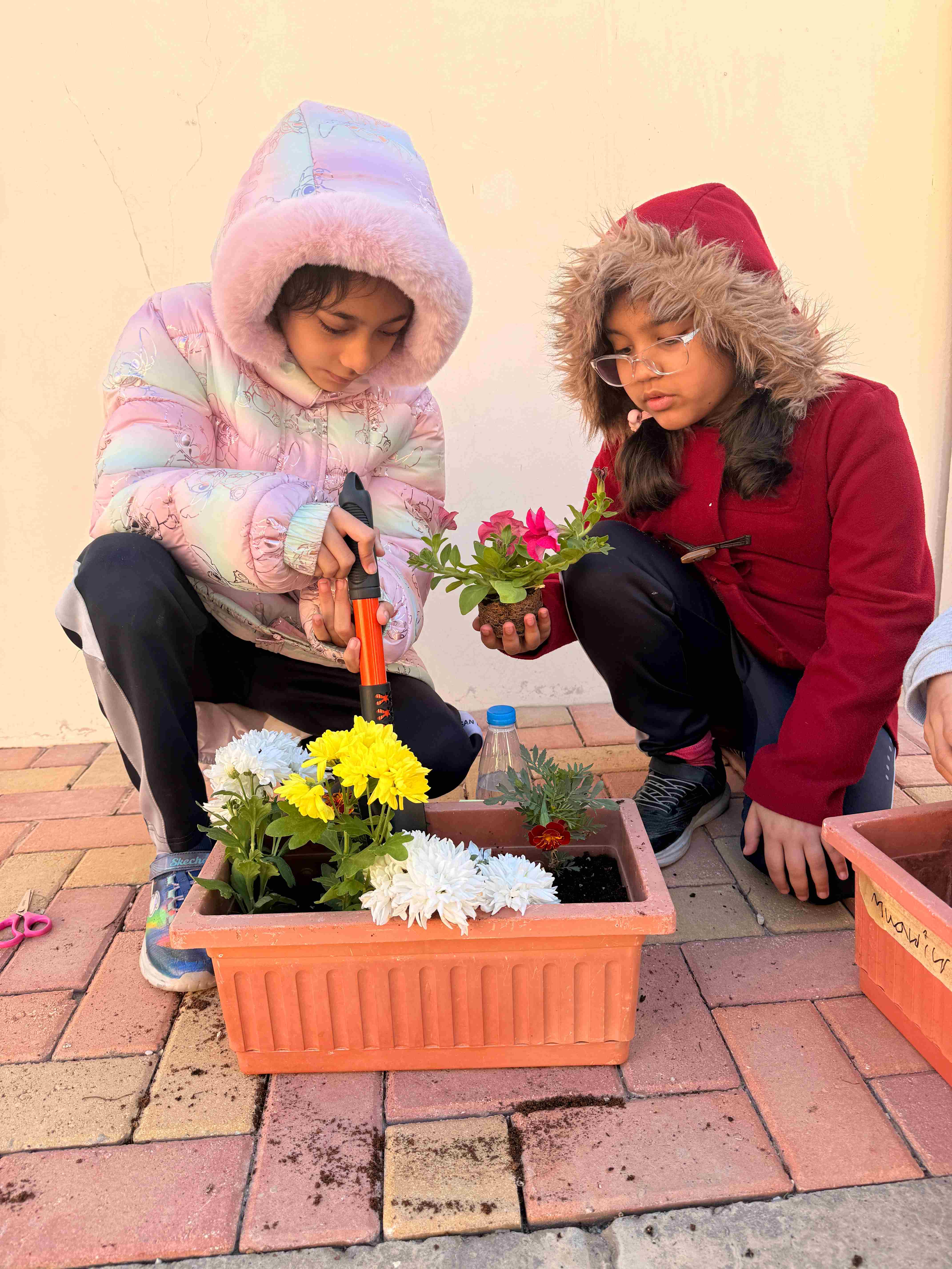 Our Grade 4-H and 4-I students participated enthusiastically in a hands-on plantation activity, planting flowers in pots. They learned about the plant life cycle and essential growth needs: soil, water, sunlight, and care. The activity promoted environmental awareness, teamwork, and responsibility through meaningful, enjoyable learning.