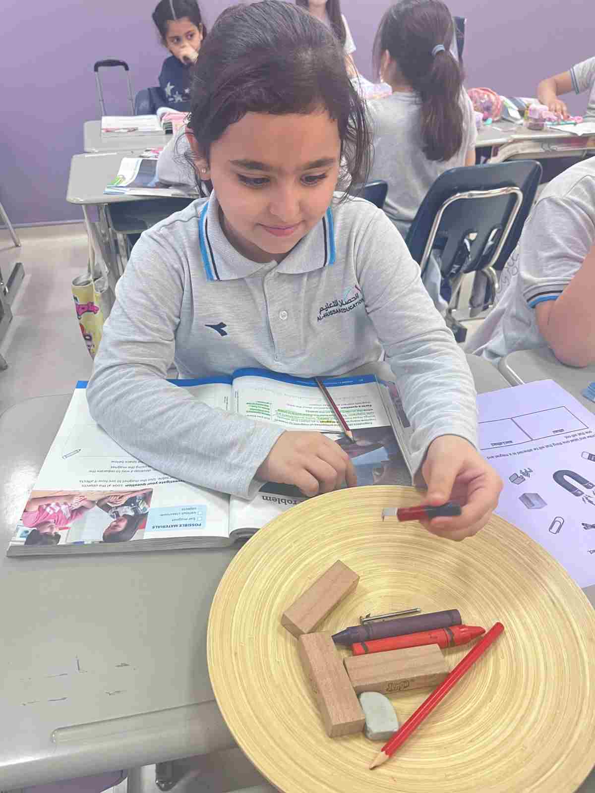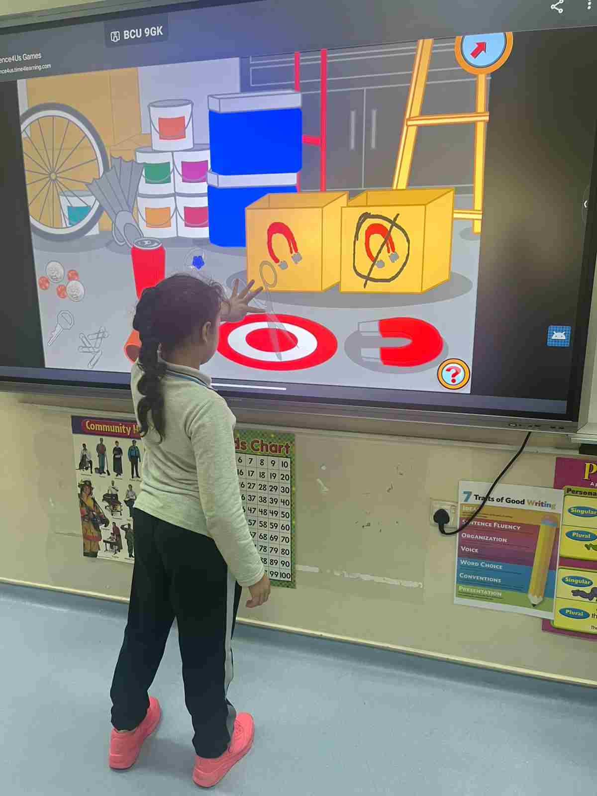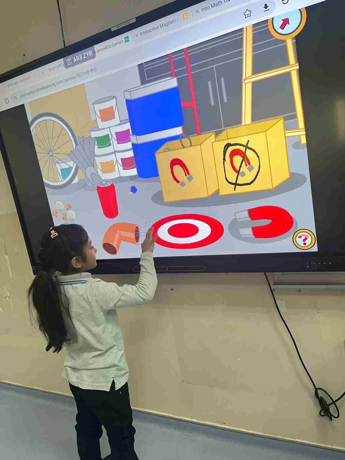 Our Grade 3 Girls explored magnets through an exciting hands-on learning experience. They used real magnets and everyday objects to observe how magnets attract and repel, discovering which materials are magnetic and which are not. Along with this, students also used an AI tool to deepen their understanding of how magnets interact with different objects. This fun and engaging activity brought science to life while encouraging curiosity, teamwork, and active learning.