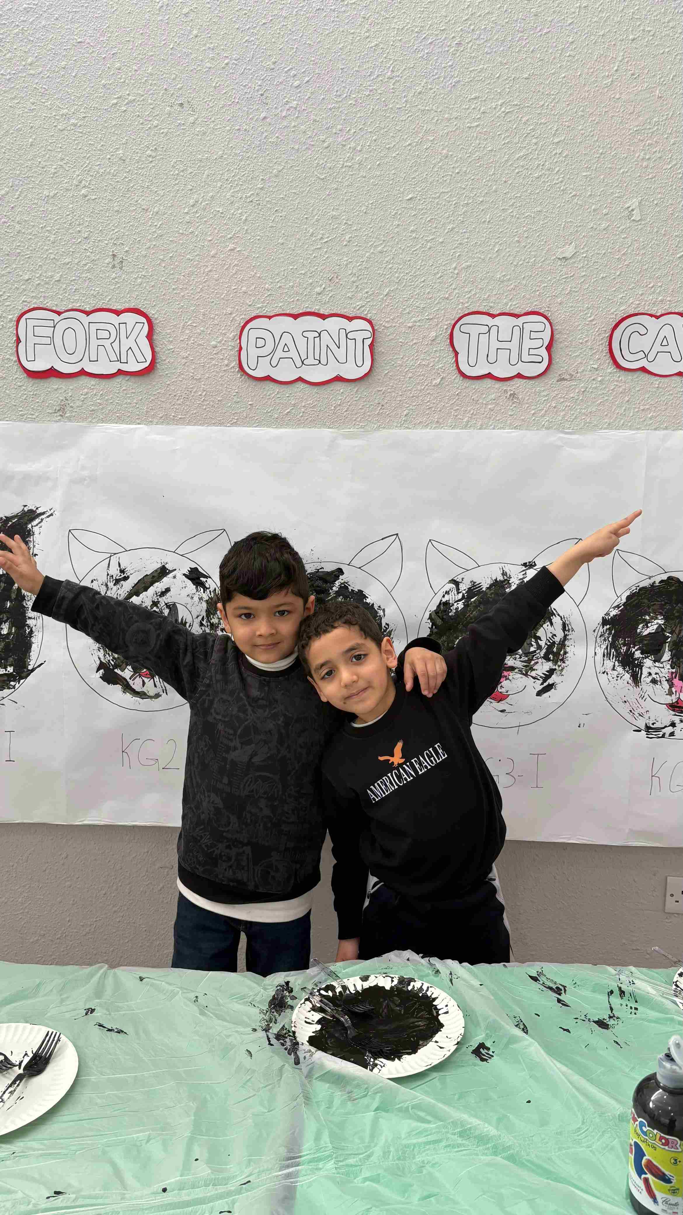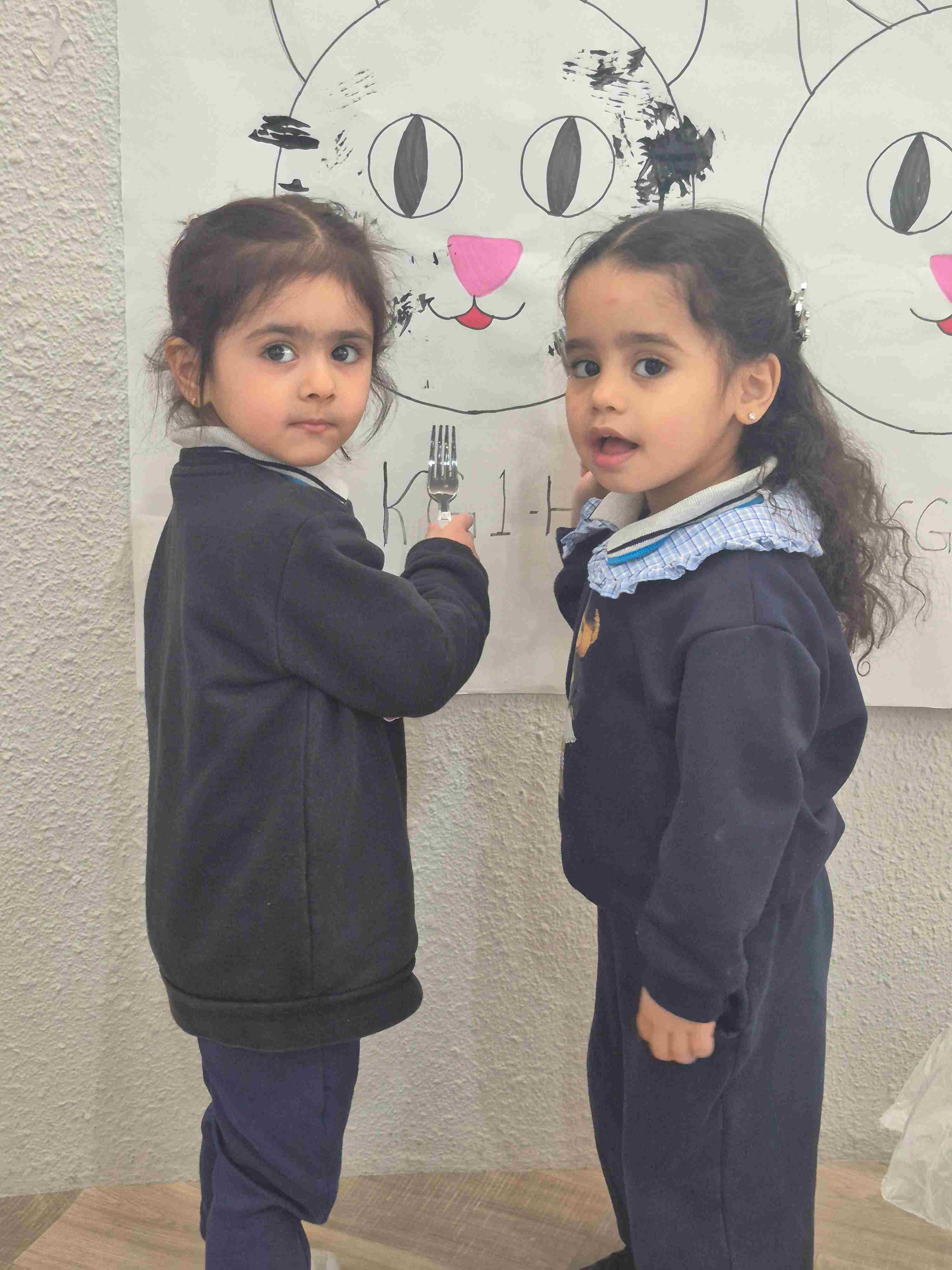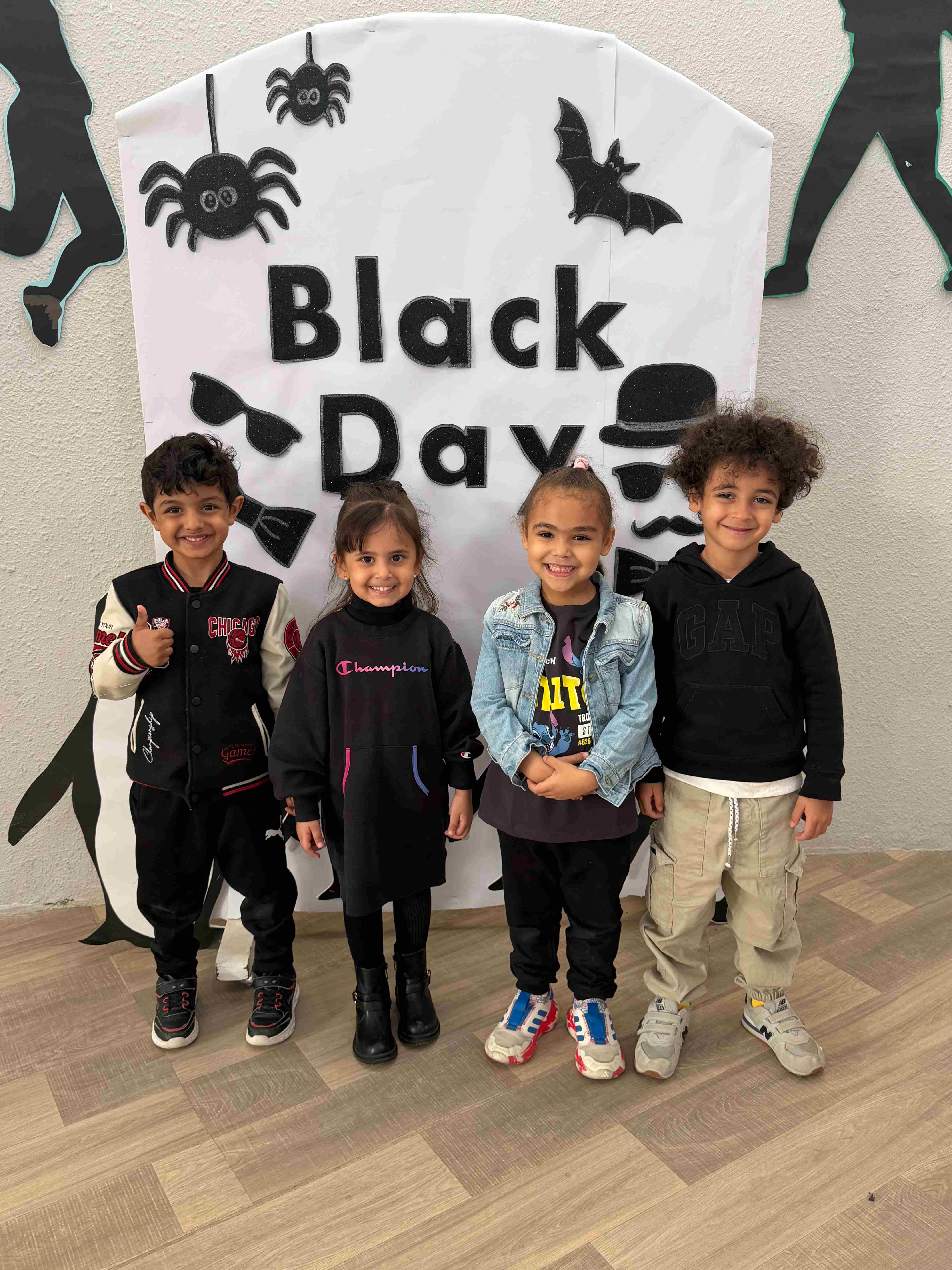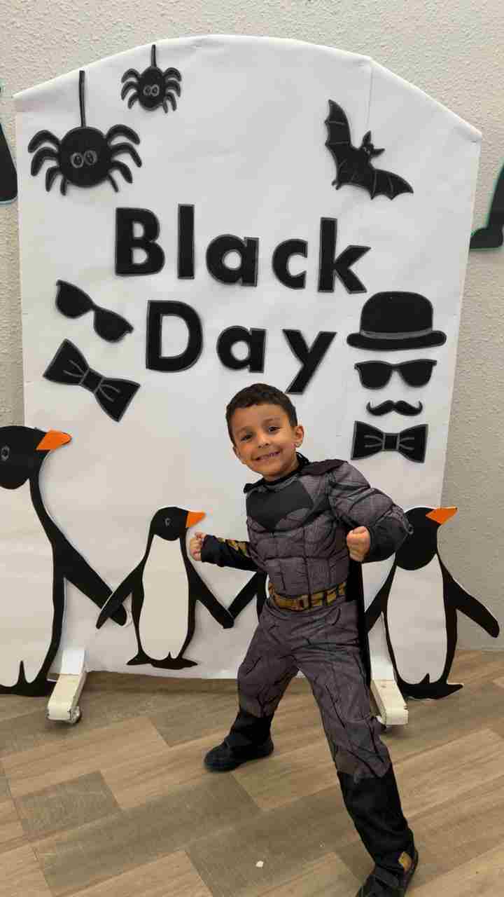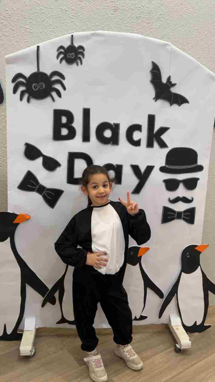 Our KG students celebrated Black Color Day through a series of joyful Montessori-inspired hands-on activities. Children explored the color black by fork-painting a black cat's face, engaging in a lively bowling game using black penguin pins, and participating in a creative fine-motor task where they rolled black yarn to feed characters with pretend black pasta. Dressed in their coolest black outfits, students enjoyed a rich sensory experience that strengthened coordination, encouraged imagination, and deepened their recognition of the color black.
