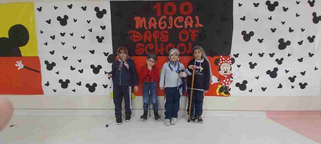 Children and teachers dressed up as 100-year-olds and proudly participated in a parade around the school