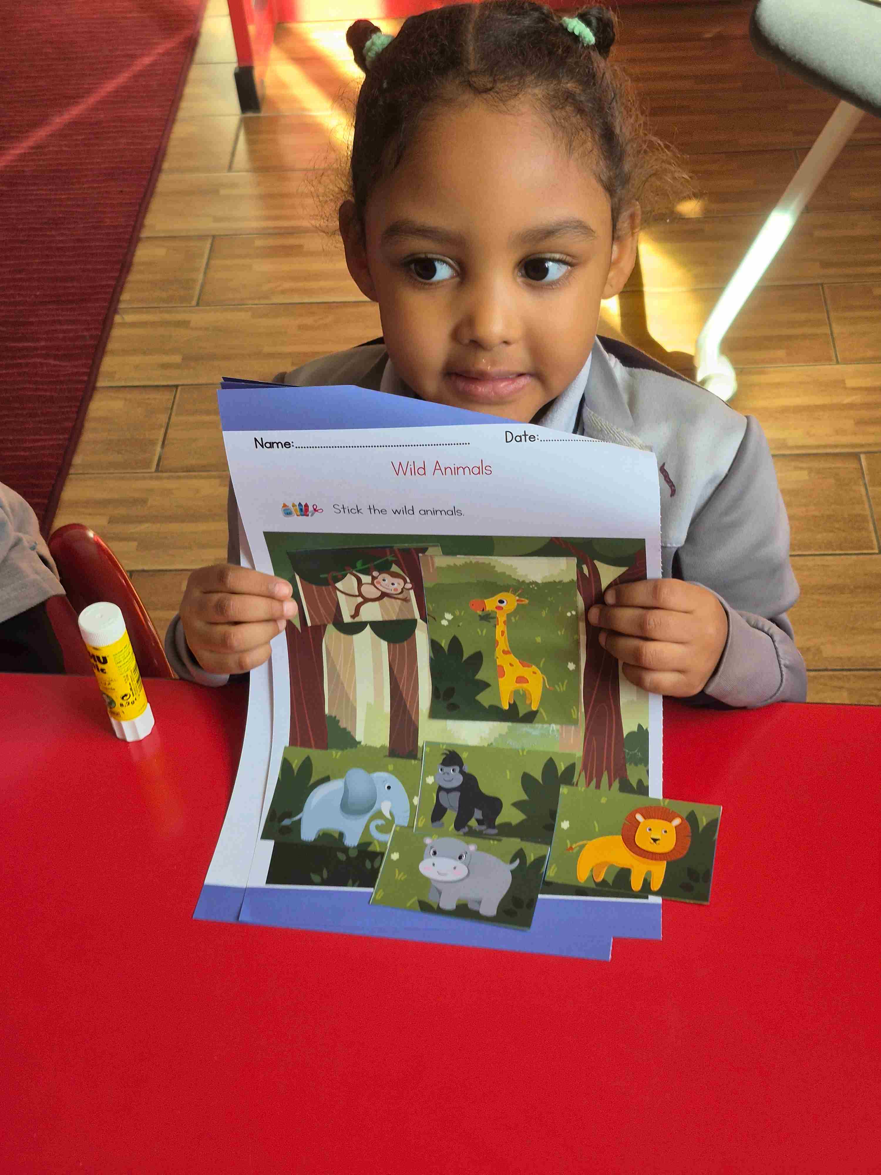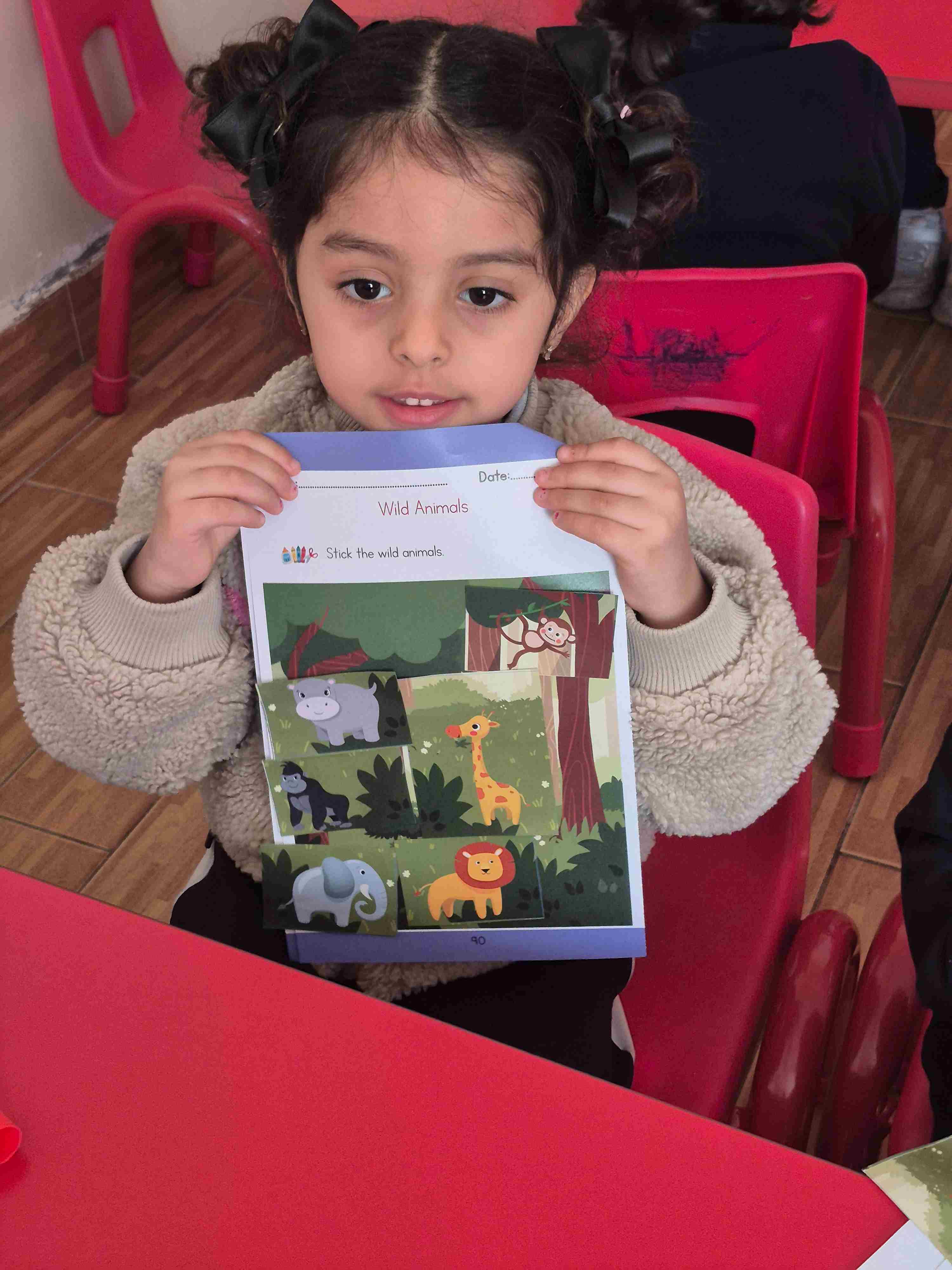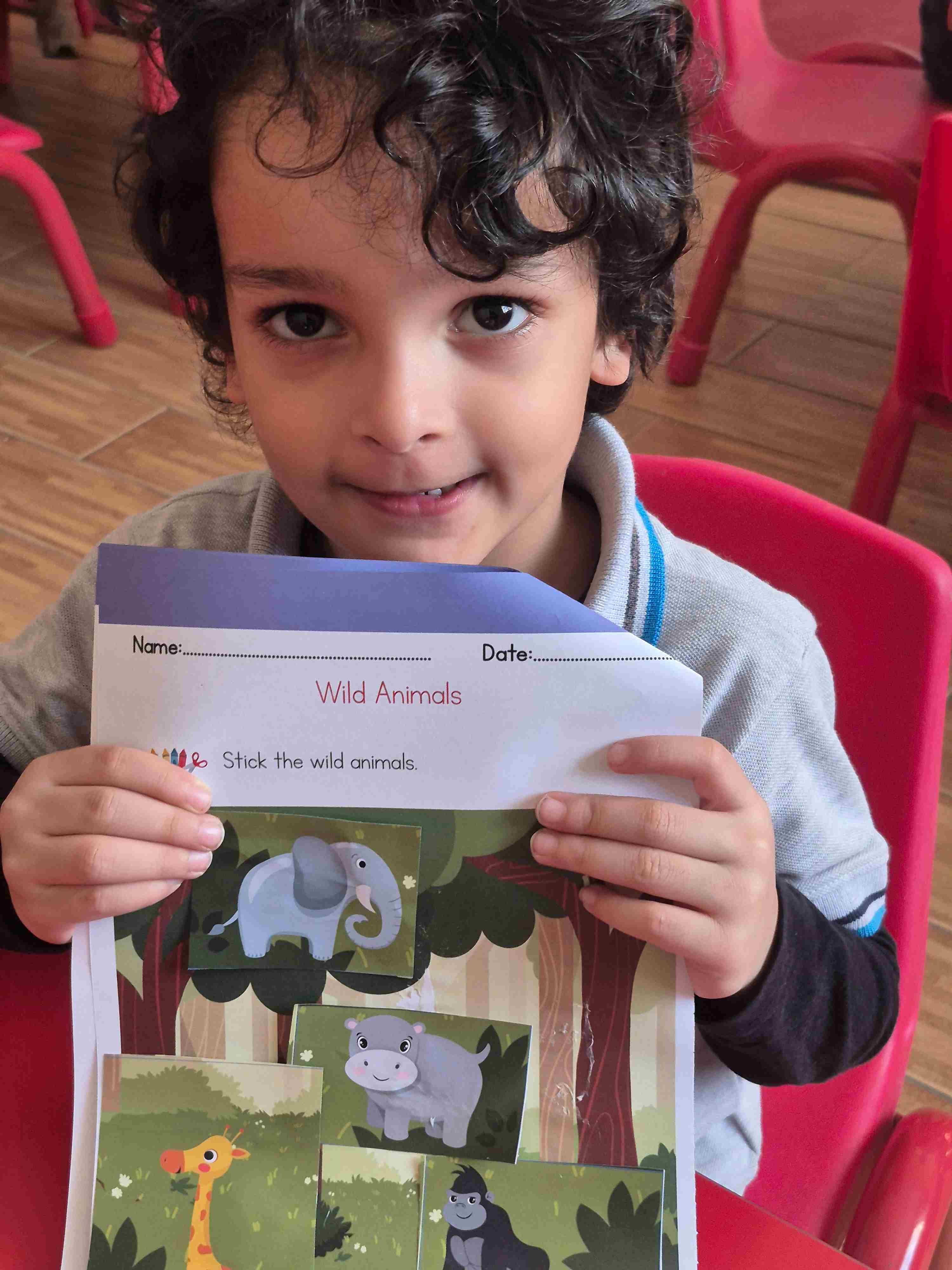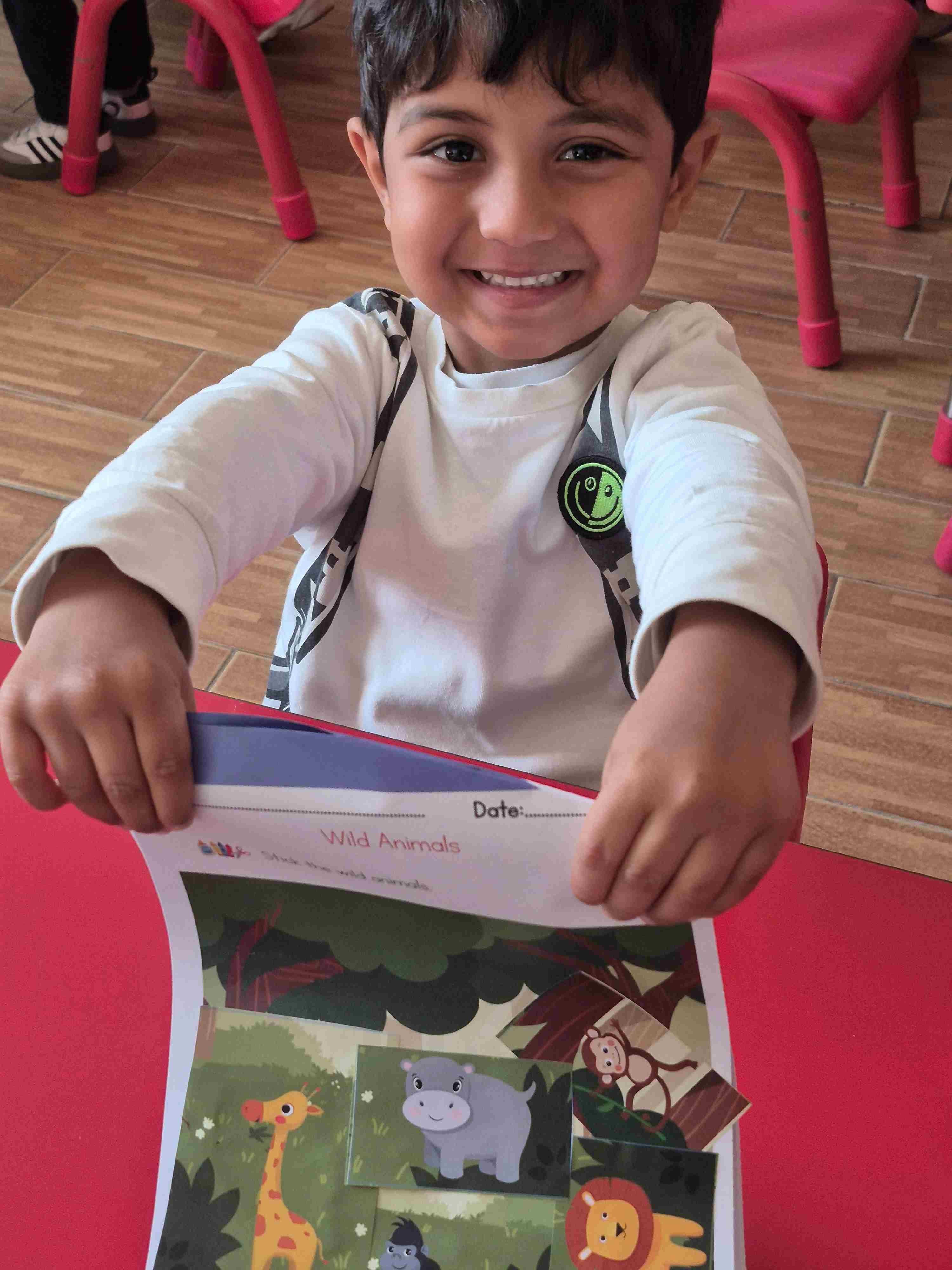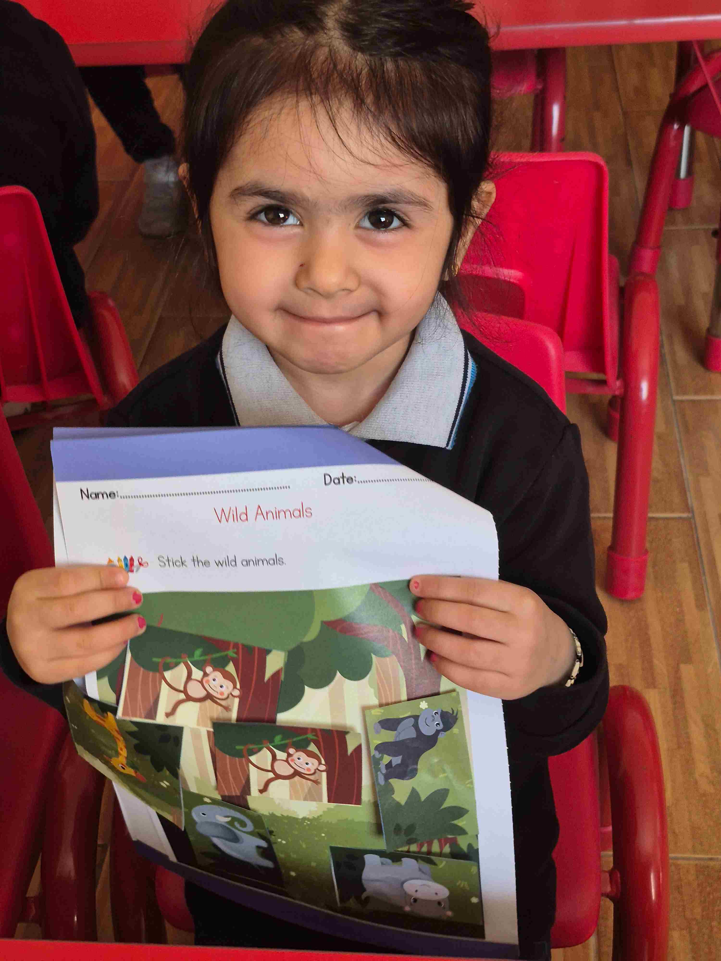 Our KG1 students participated in a fun and engaging zoo animal art activity. The children were provided with cut-out pictures of different zoo animals and a jungle background sheet. Each student carefully selected an animal, identified it, and glued it onto the jungle picture. This activity helped students recognize and name zoo animals while developing fine motor skills, hand-eye coordination, and creativity. The children enjoyed creating their own jungle scenes and proudly shared their completed work with their classmates.