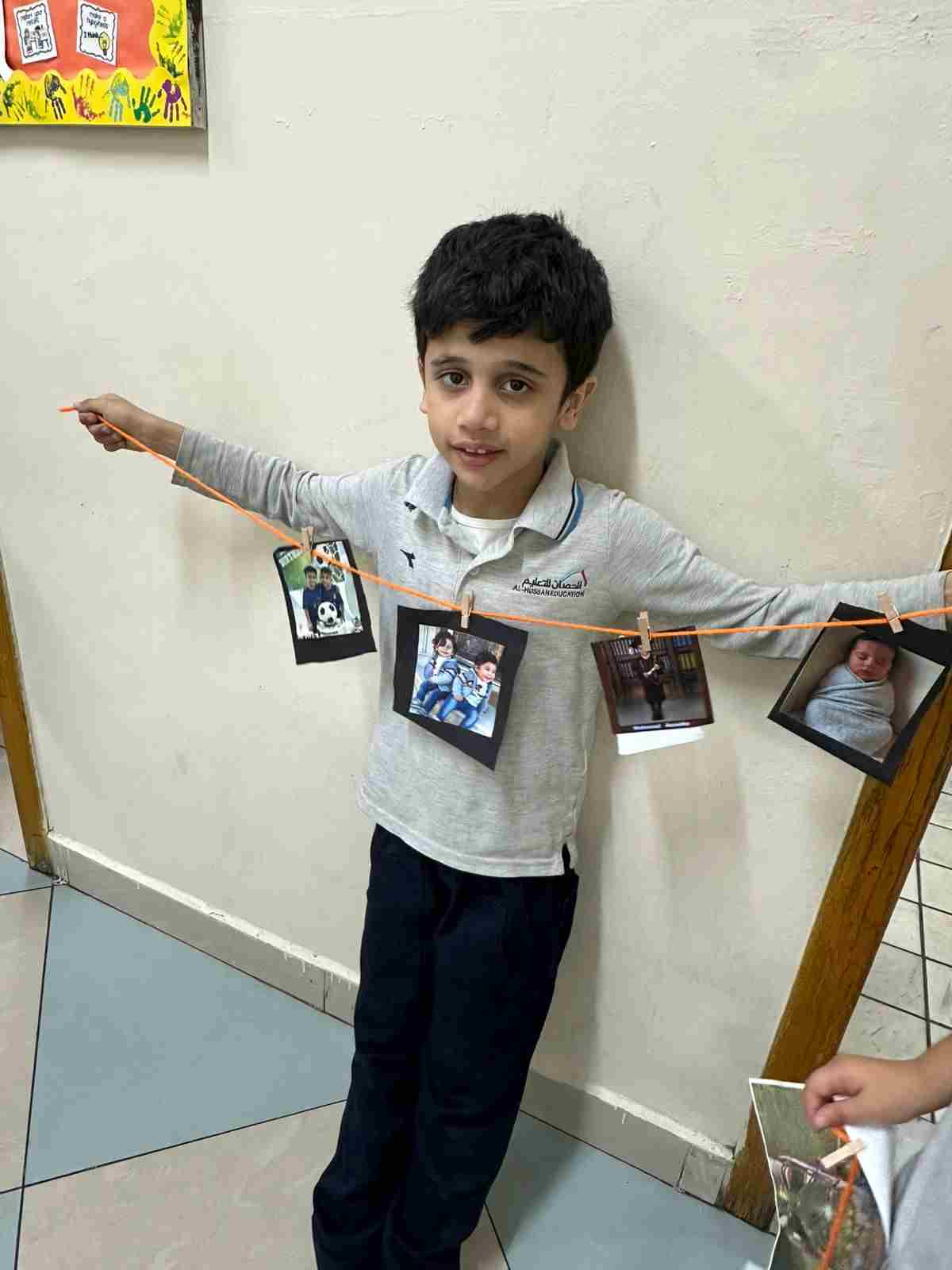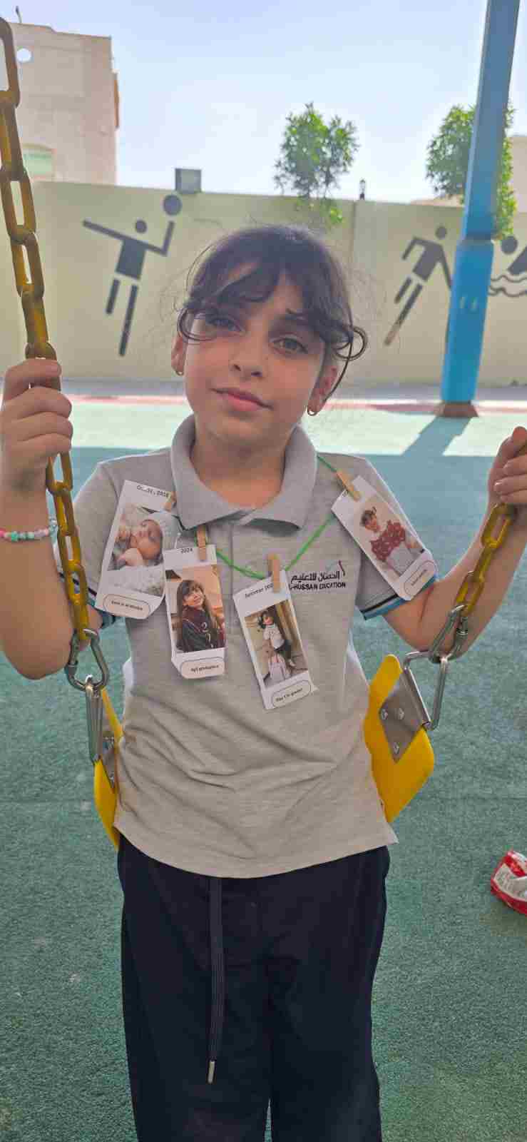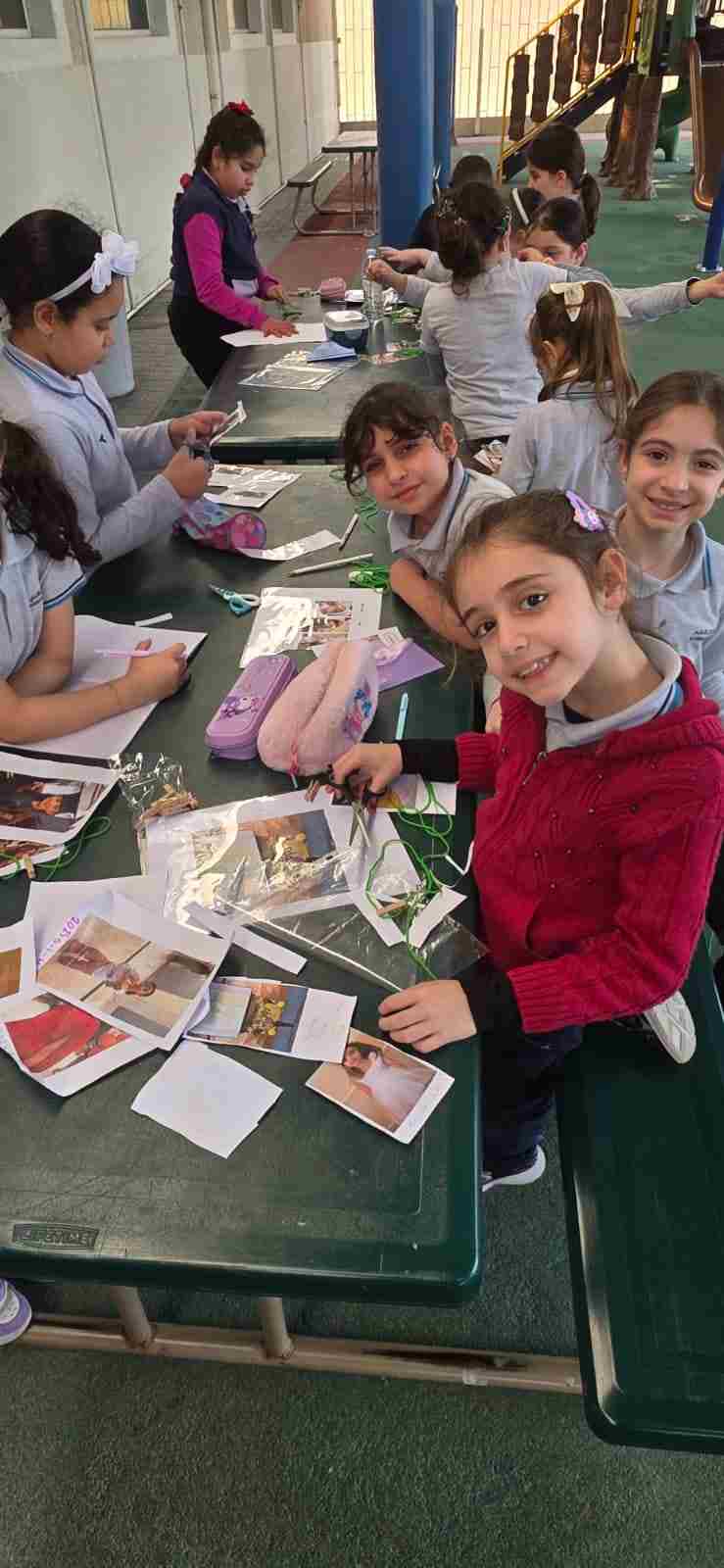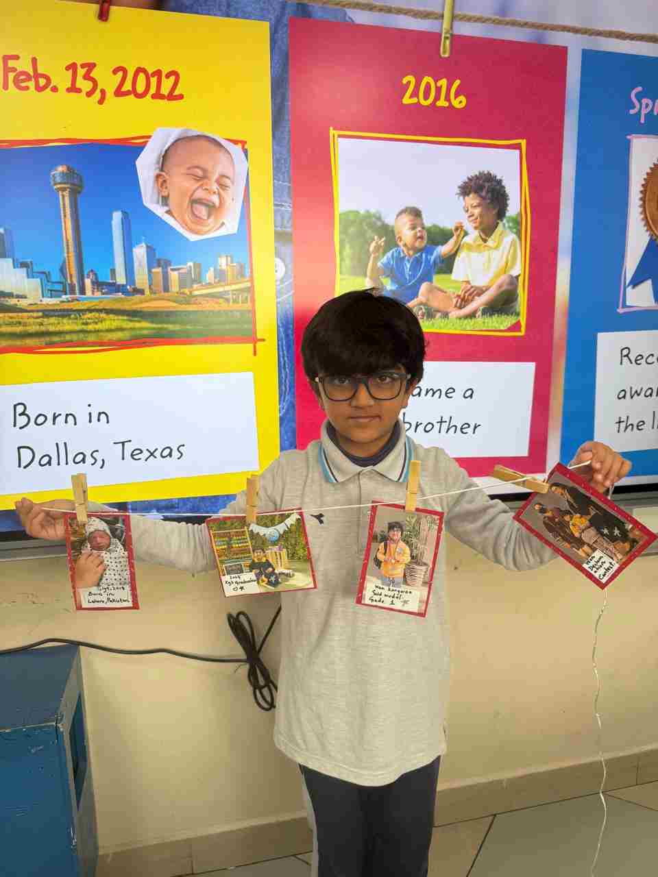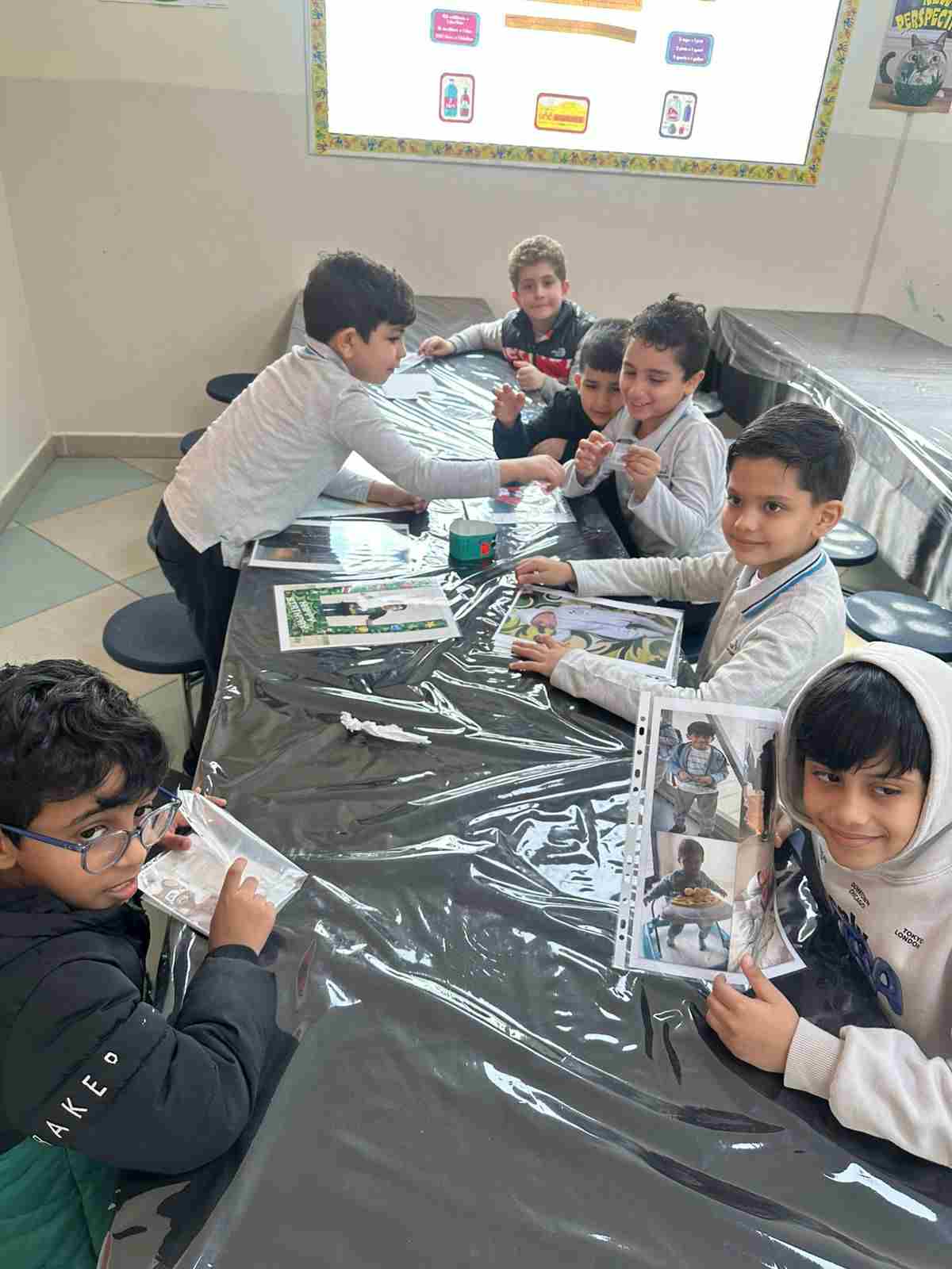 Students in Grade 2, enjoy the English timeline activity at the playground. They talk about events from their life, starting when they were a baby and growing into a child.