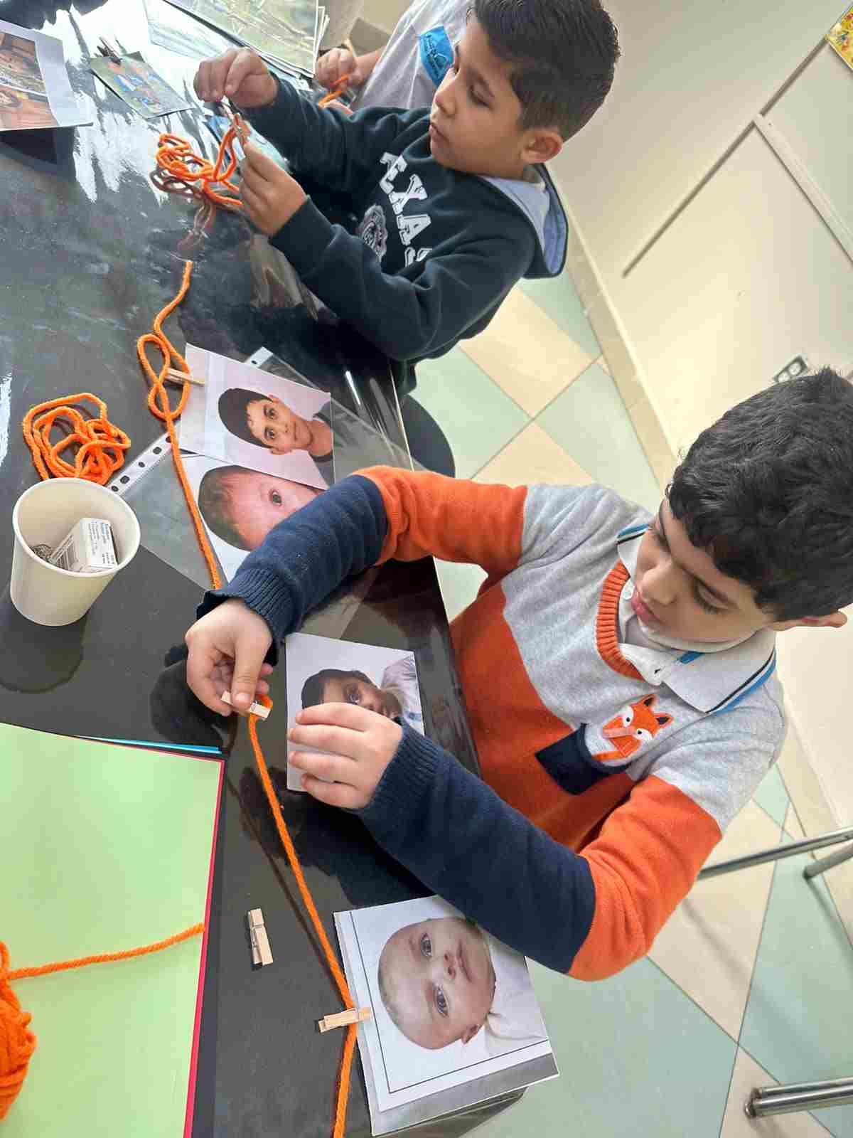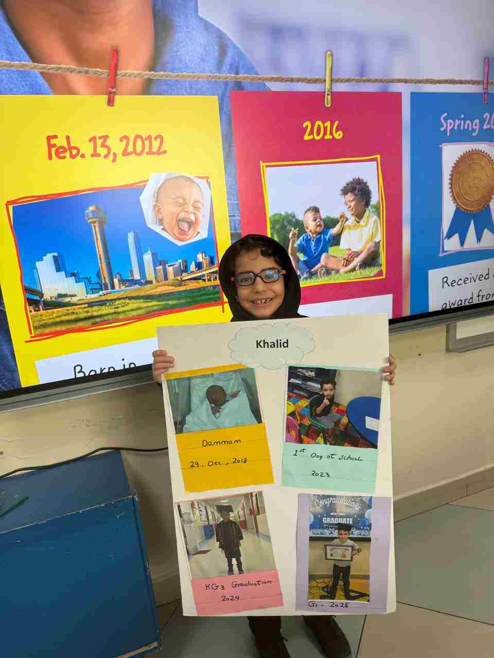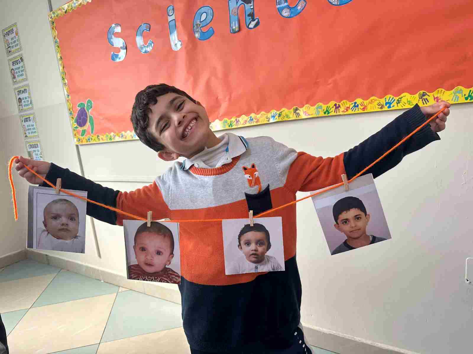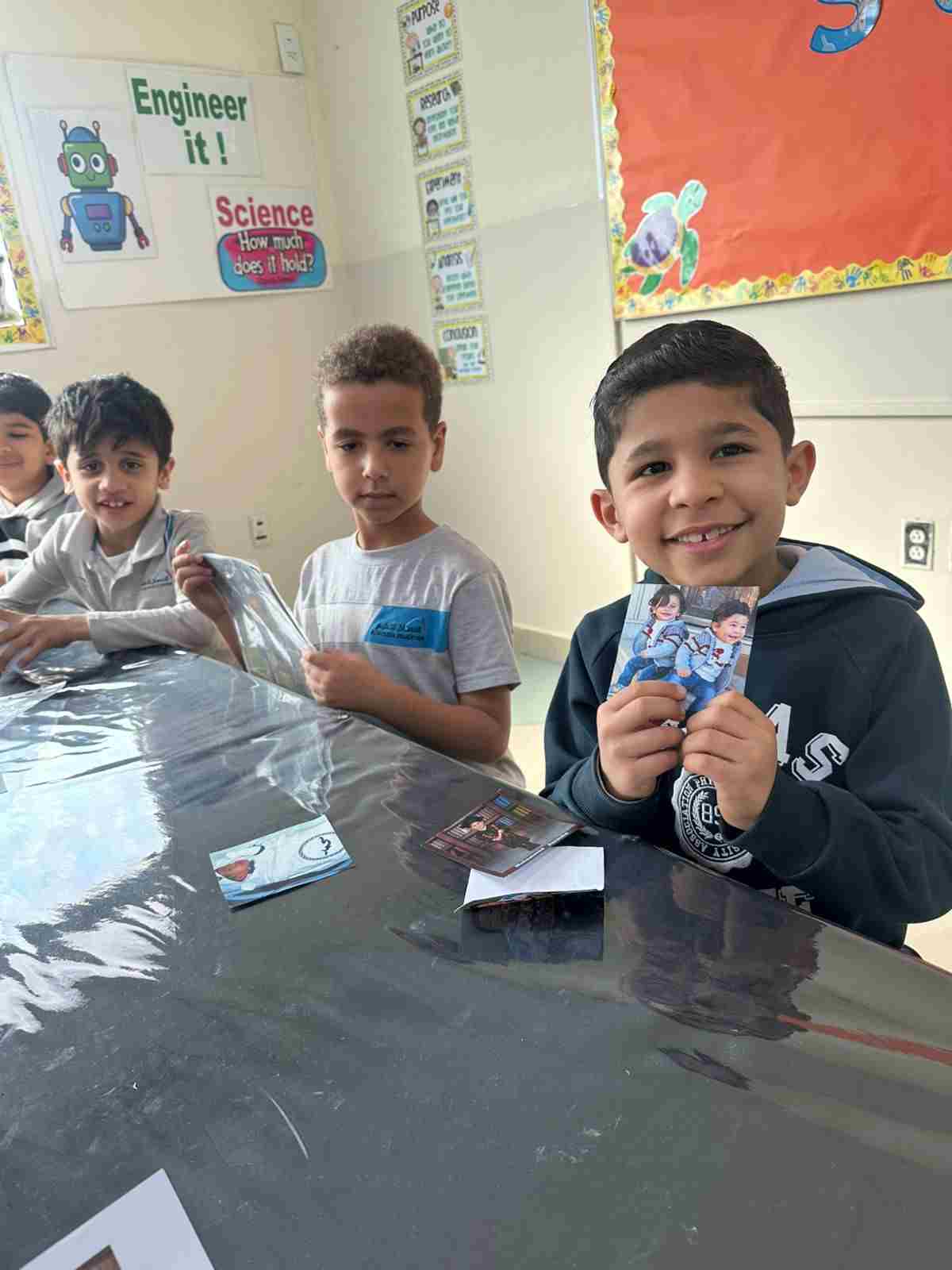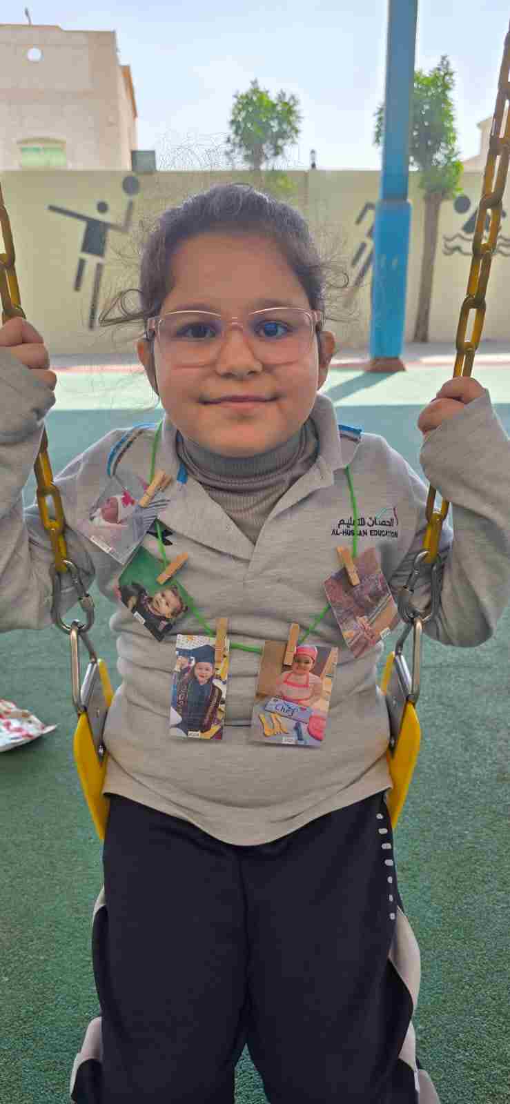 Students in Grade 2, enjoy the English timeline activity at the playground. They talk about events from their life, starting when they were a baby and growing into a child.