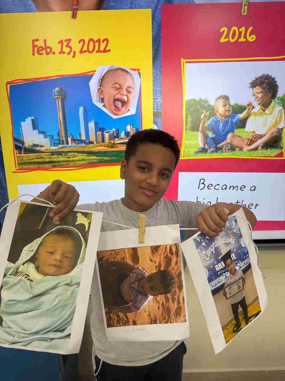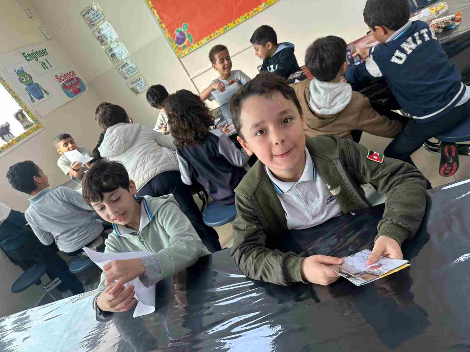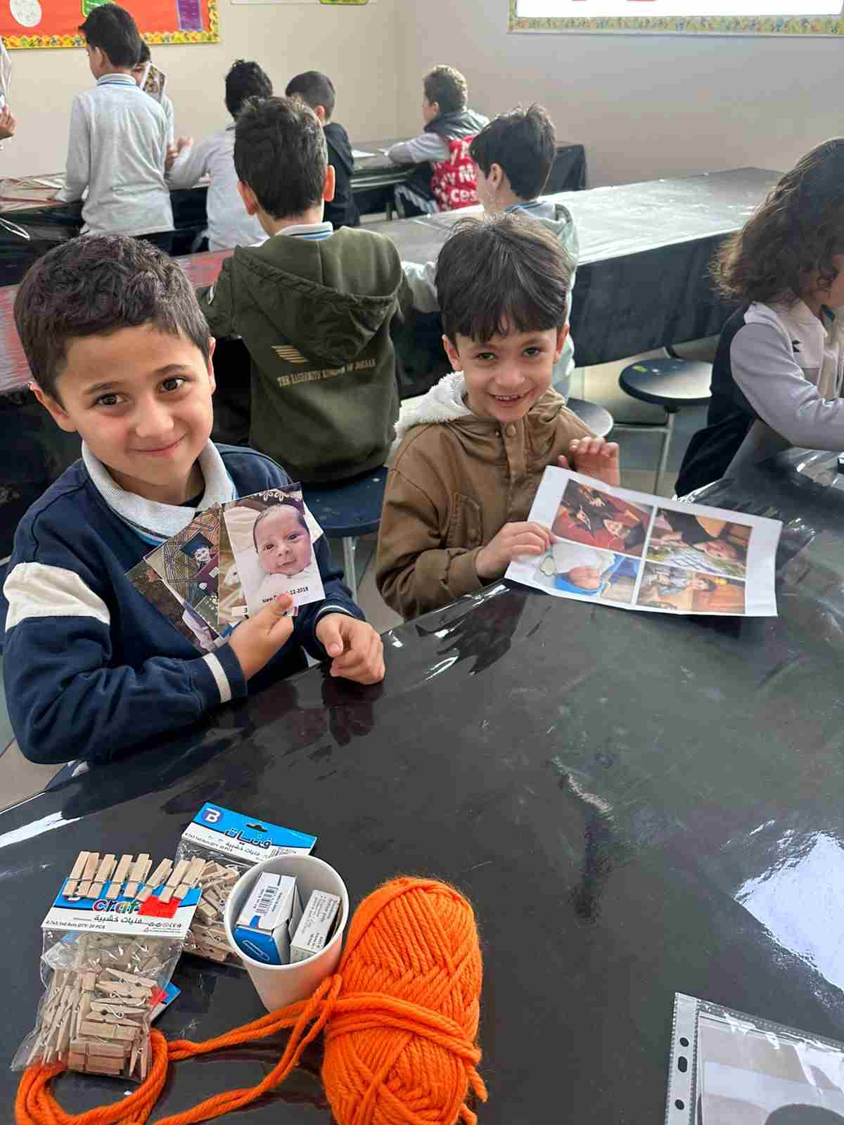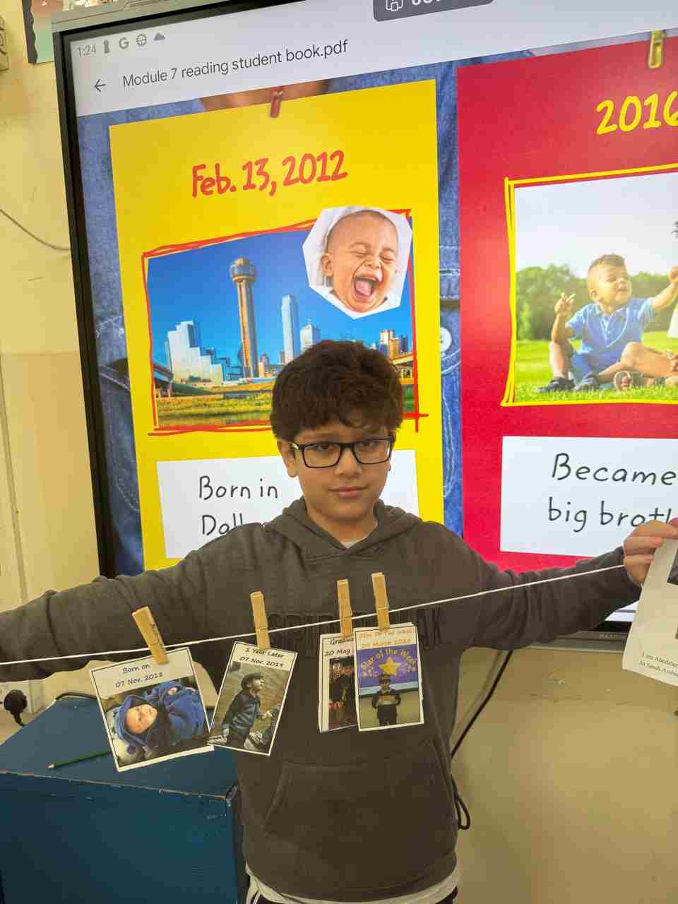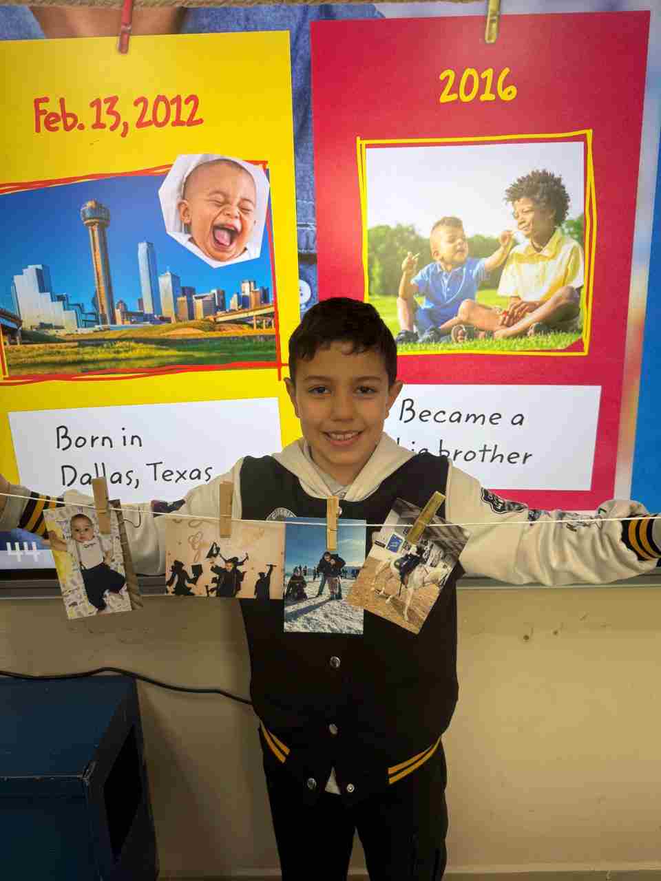 Students in Grade 2, enjoy the English timeline activity at the playground. They talk about events from their life, starting when they were a baby and growing into a child.