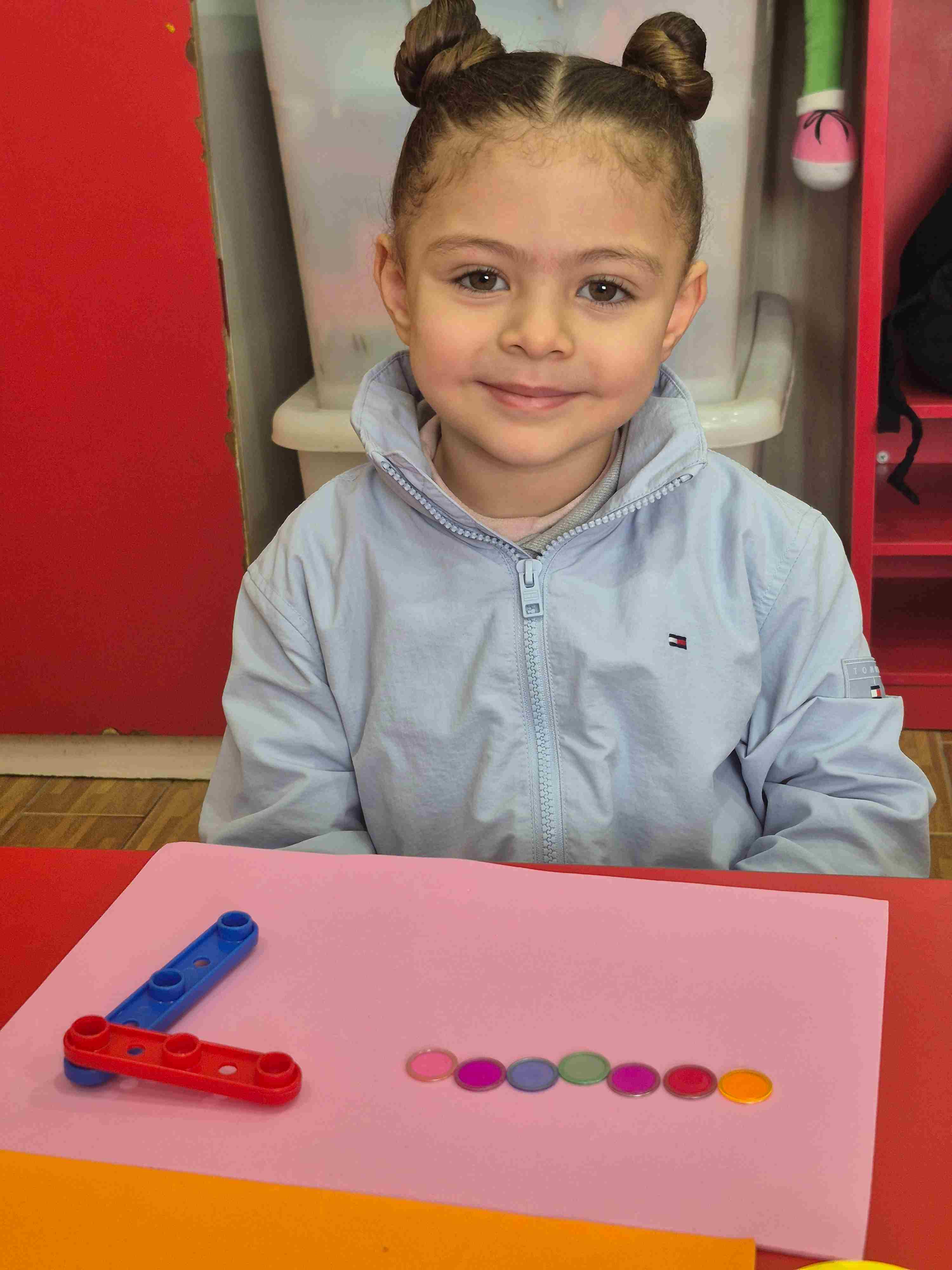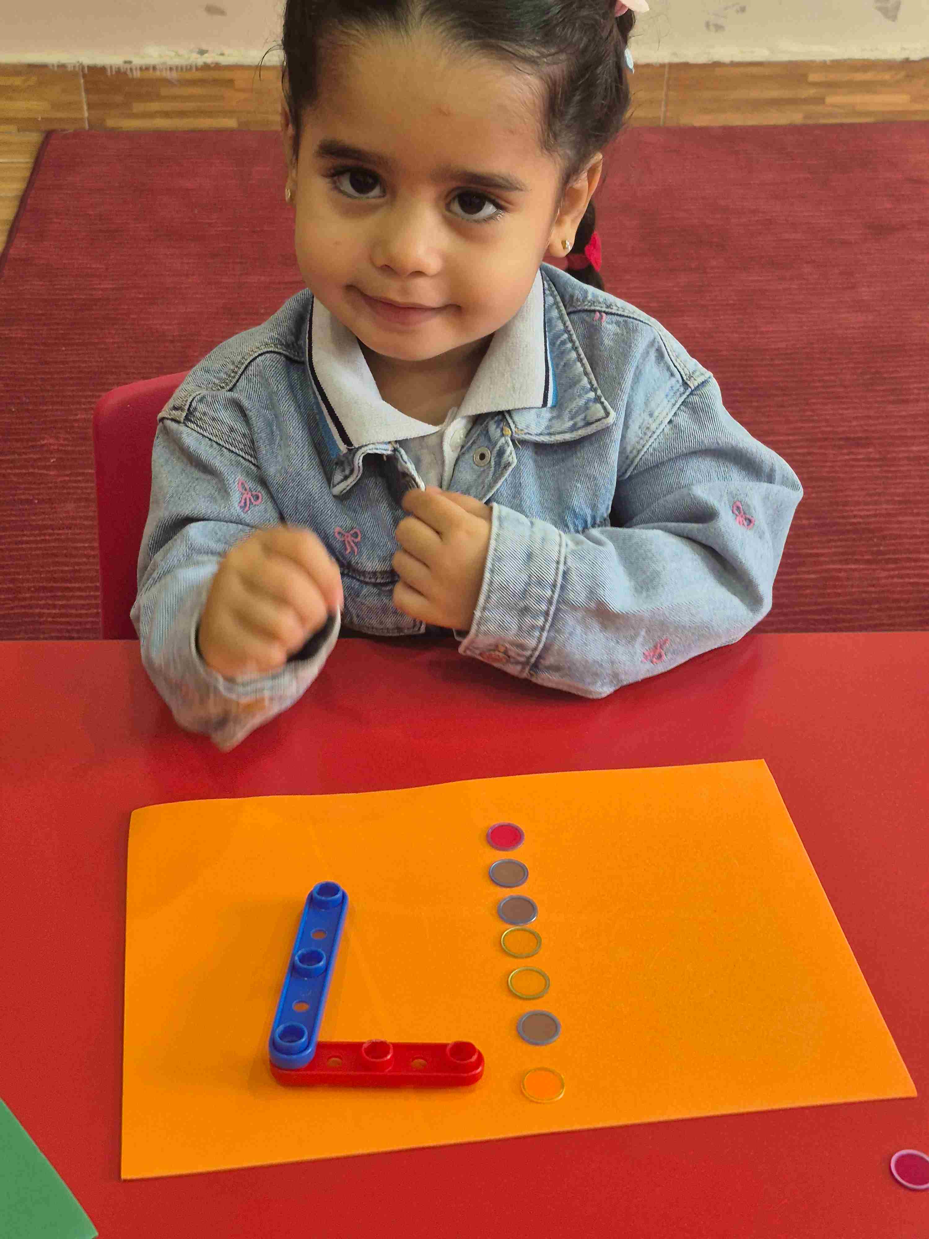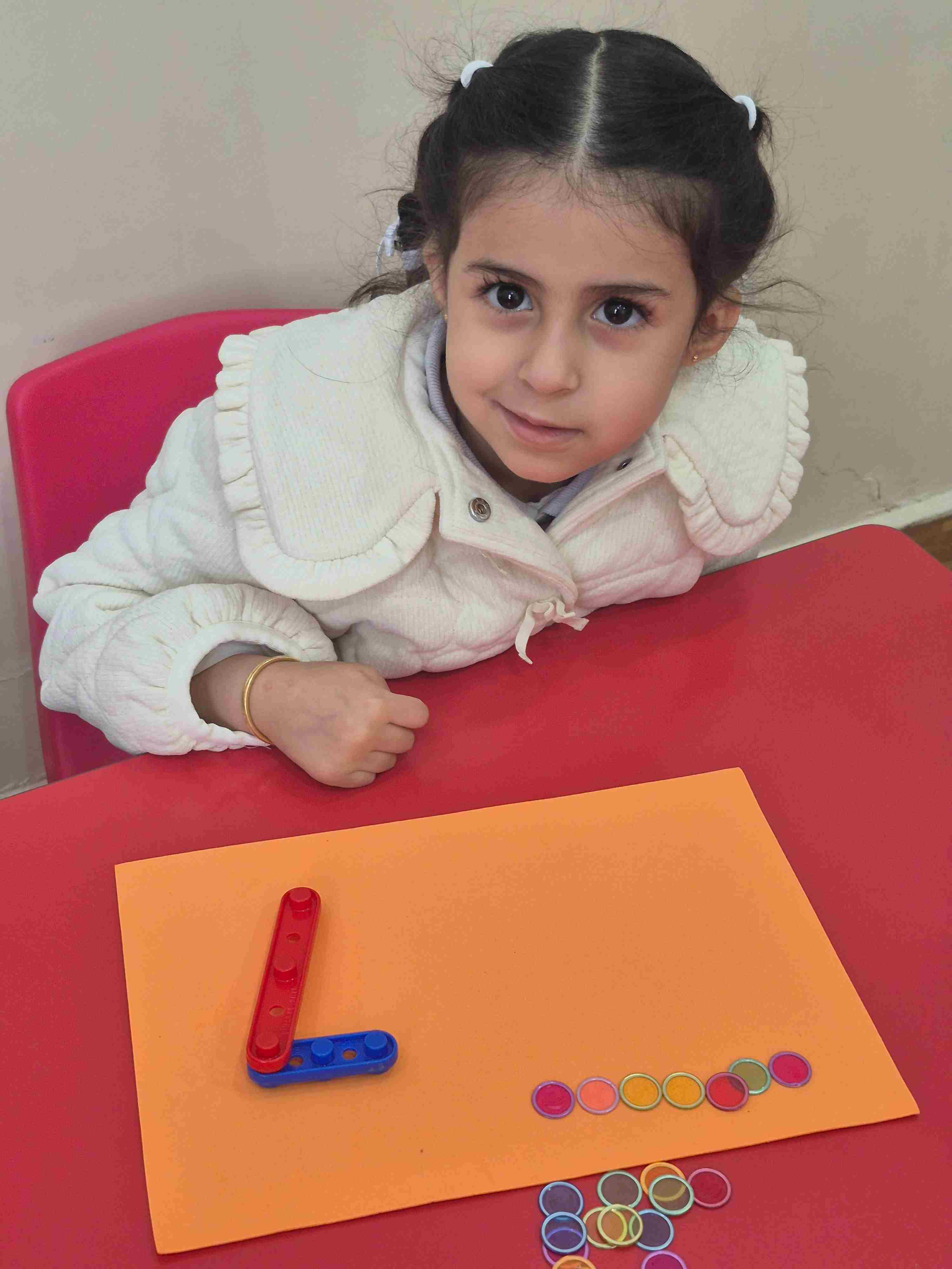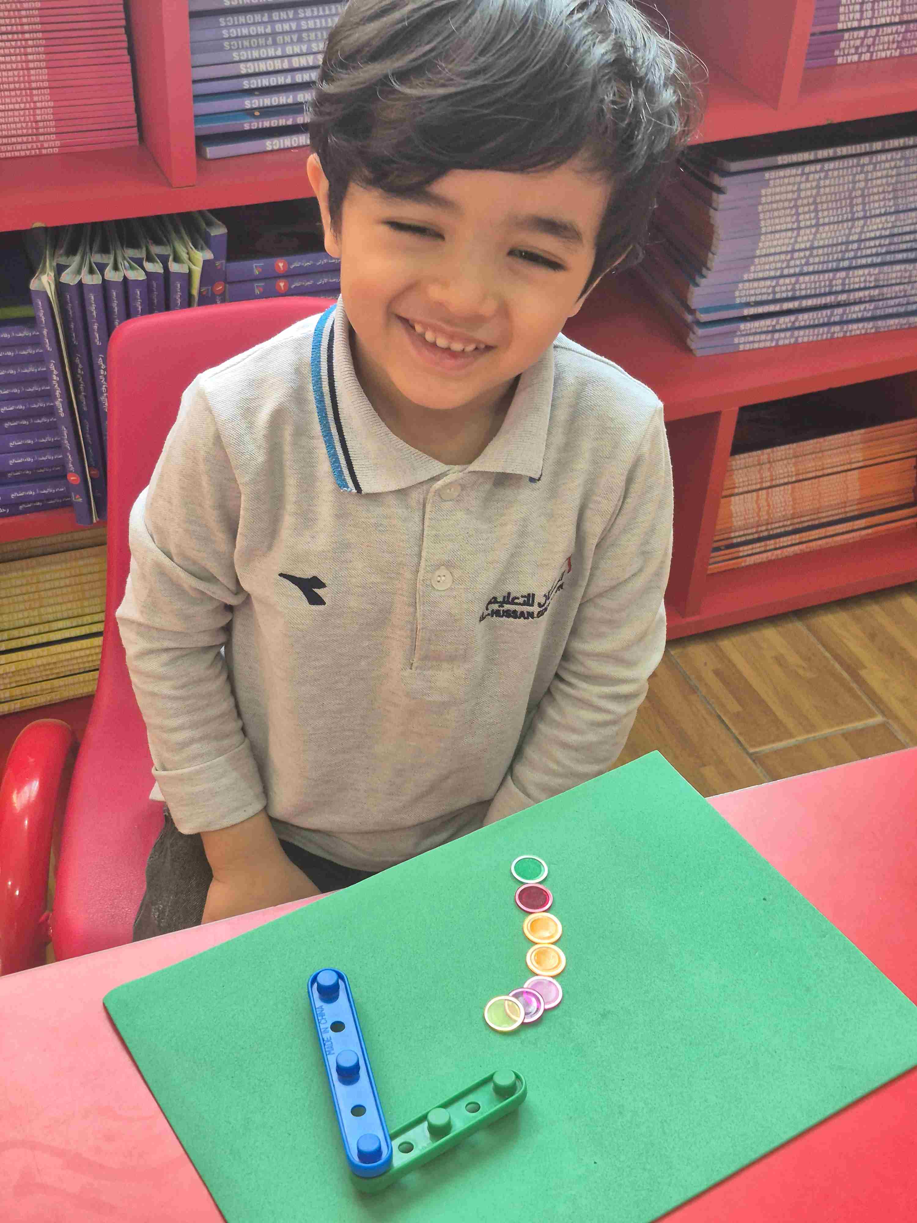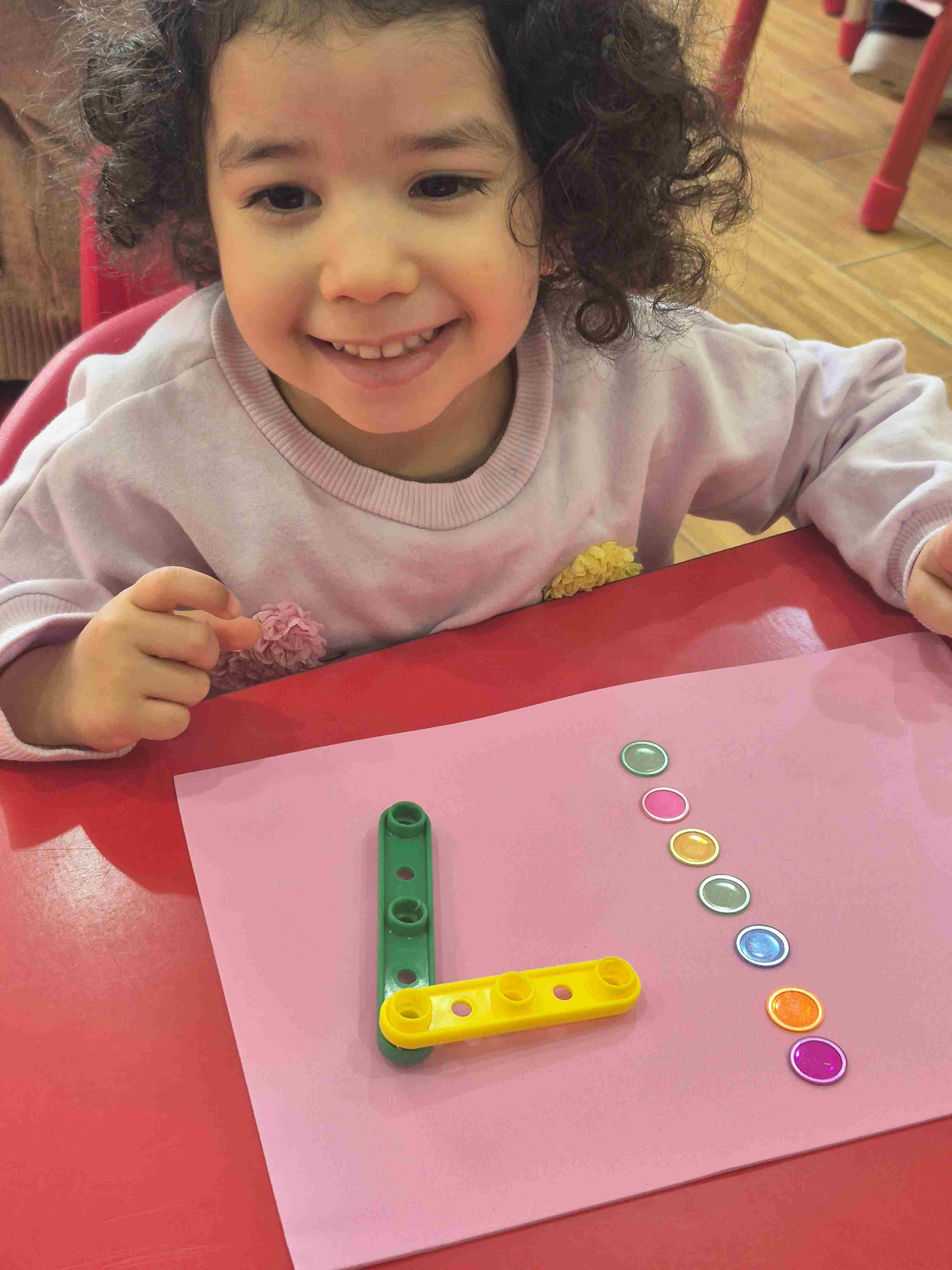 Our KG1 students enjoyed a hands-on math activity focused on number 7. Using sticks, students created the shape of number 7, strengthening number recognition and fine motor skills. After forming the number, students practiced counting aloud from 1 to 7 and placed seven plastic chips, matching one chip to each count.