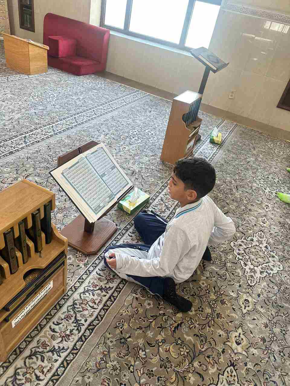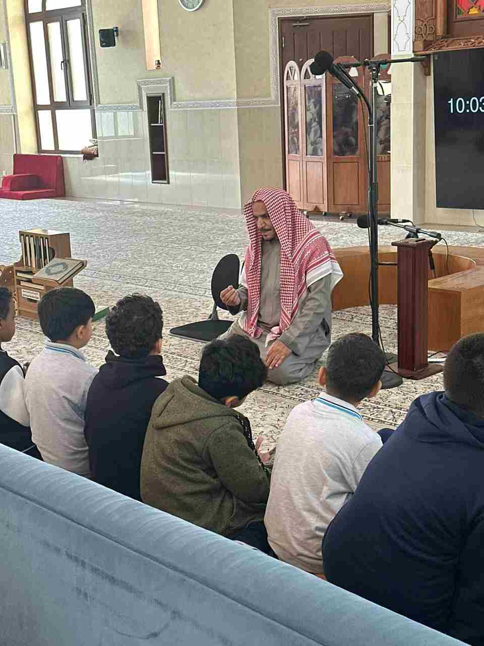 Third grade students carried out an initiative to visit Al-Hussan Mosque. During the visit, they posted supplications for entering and leaving the mosque and listened to a talk by the mosque’s sheikh, which included some etiquette and advice regarding entering the mosque.