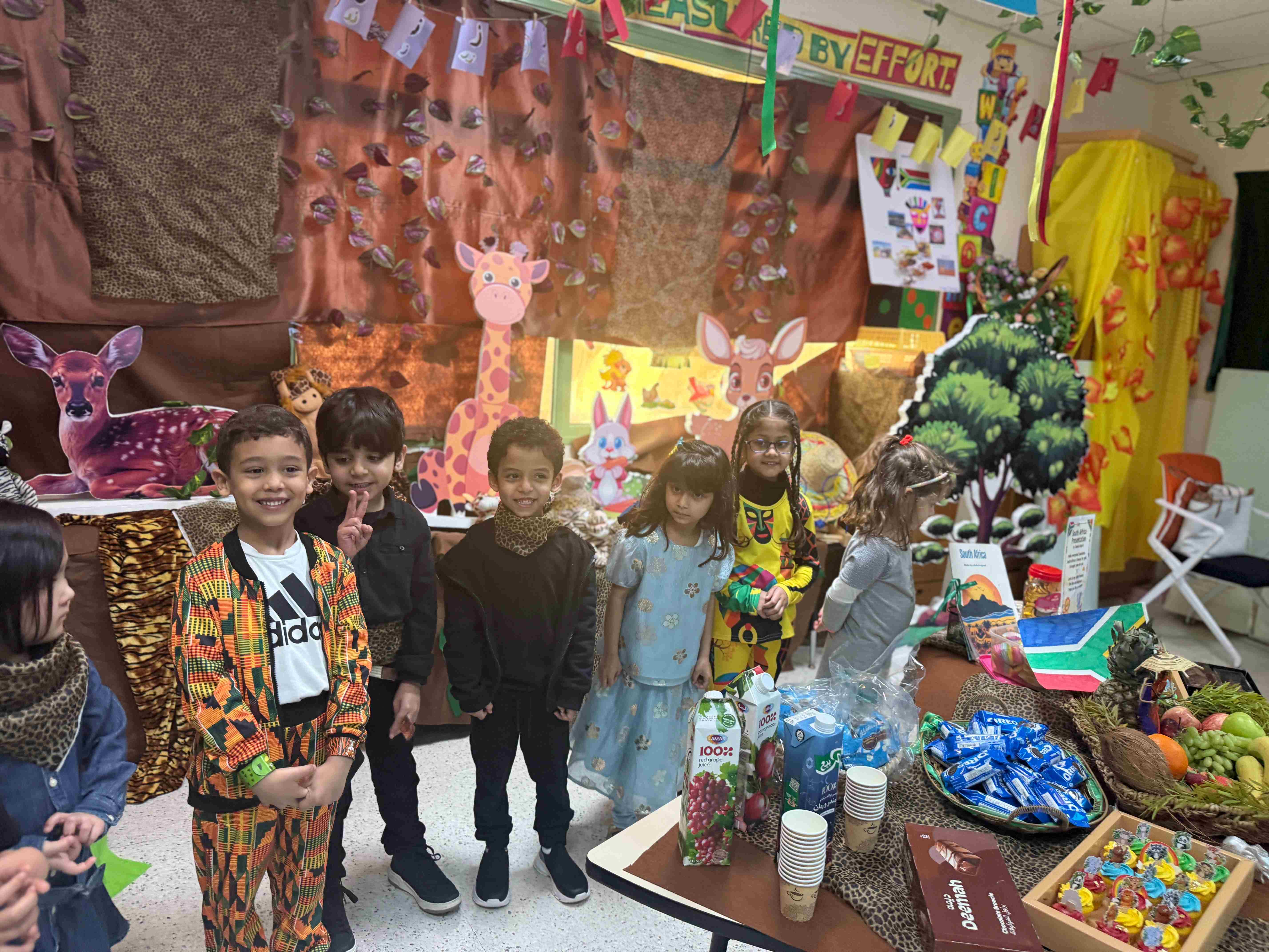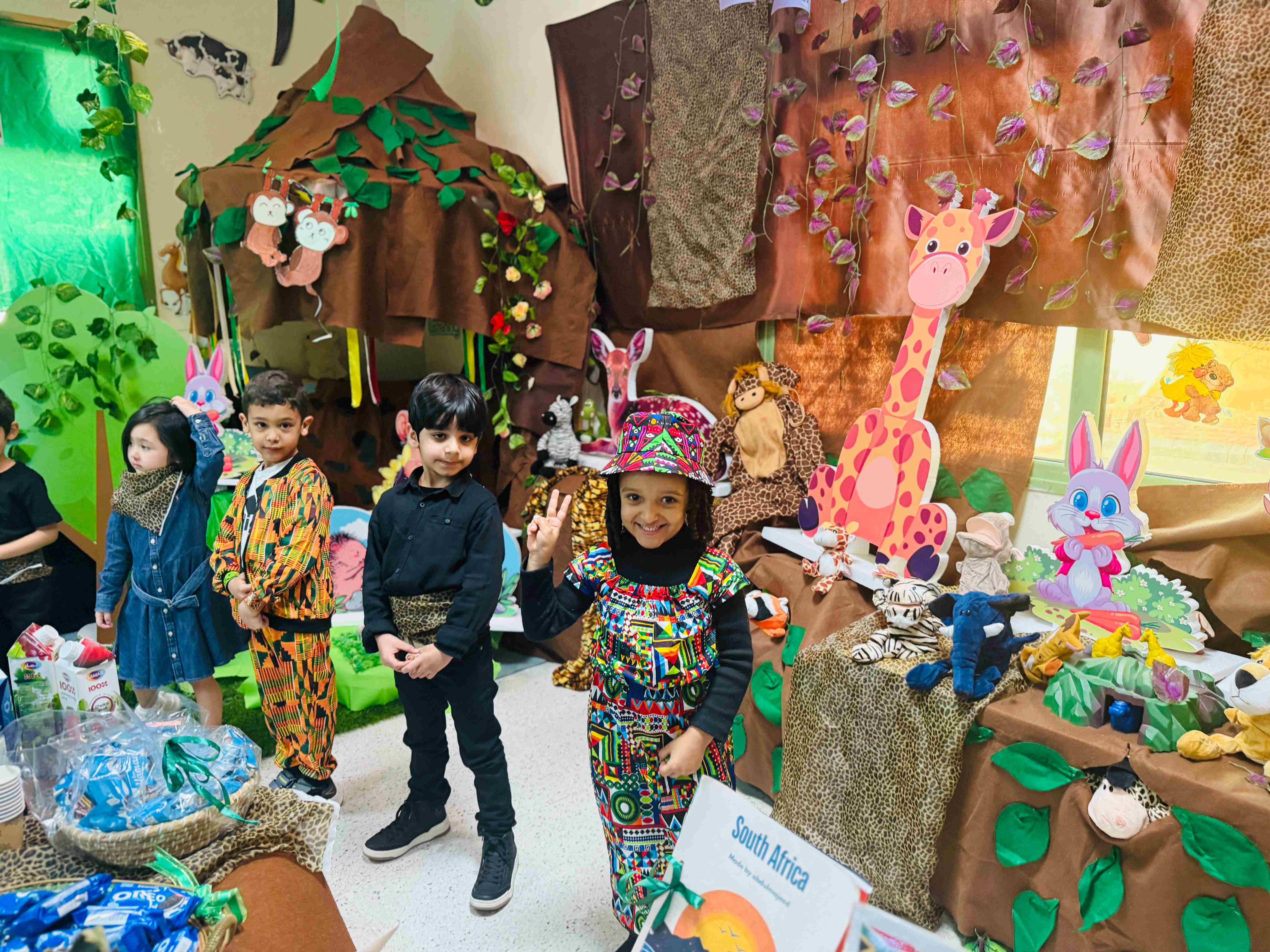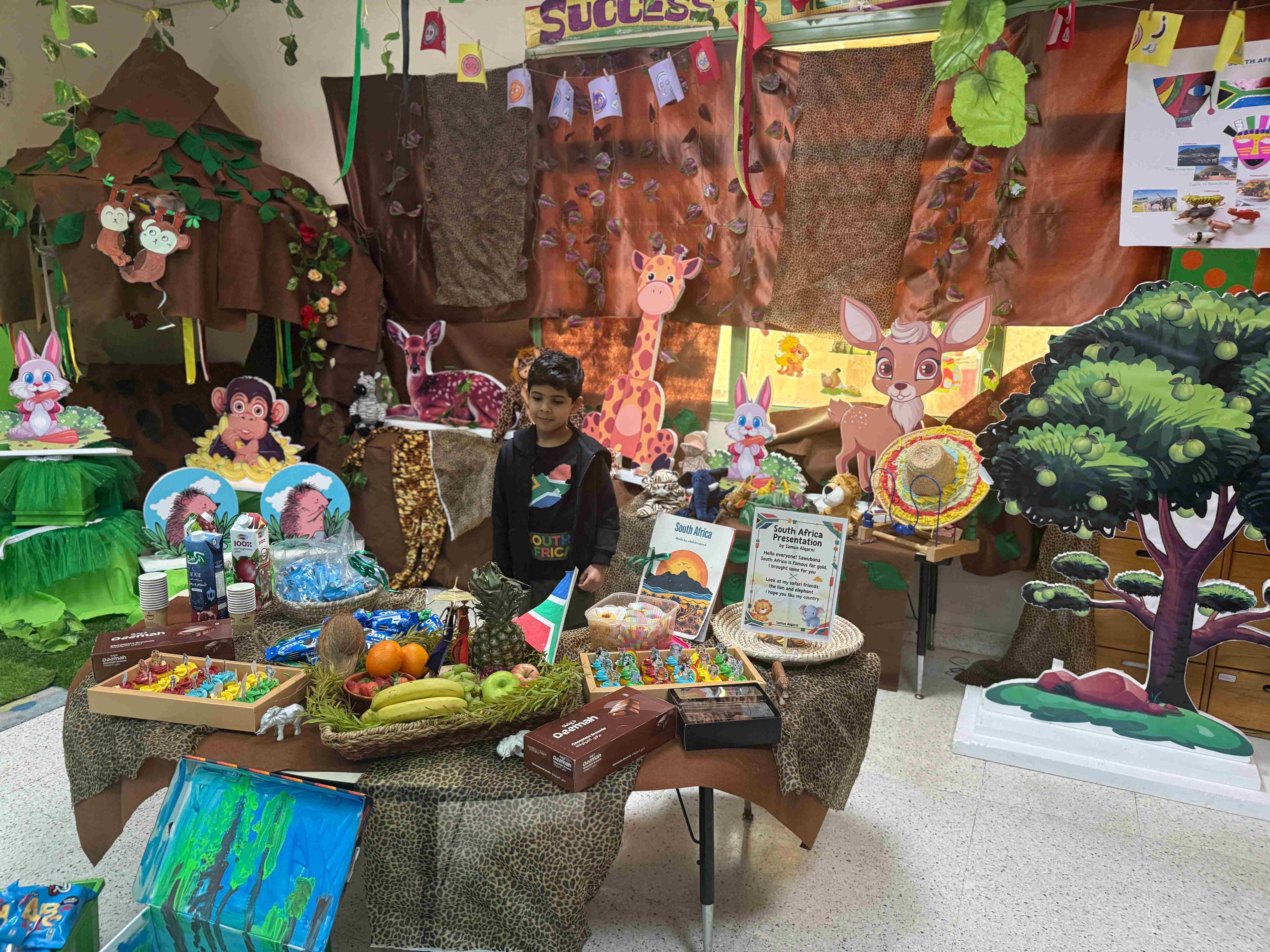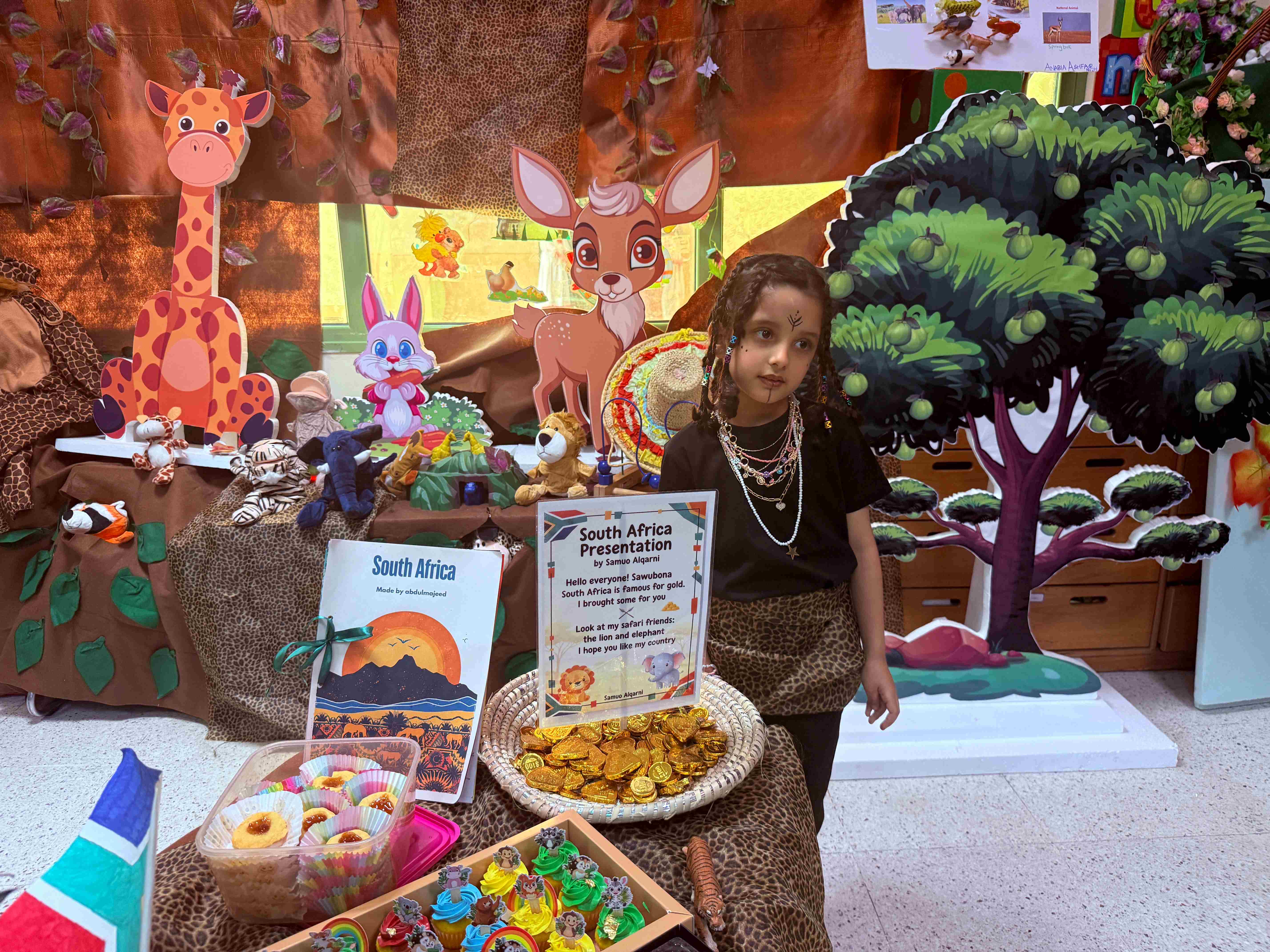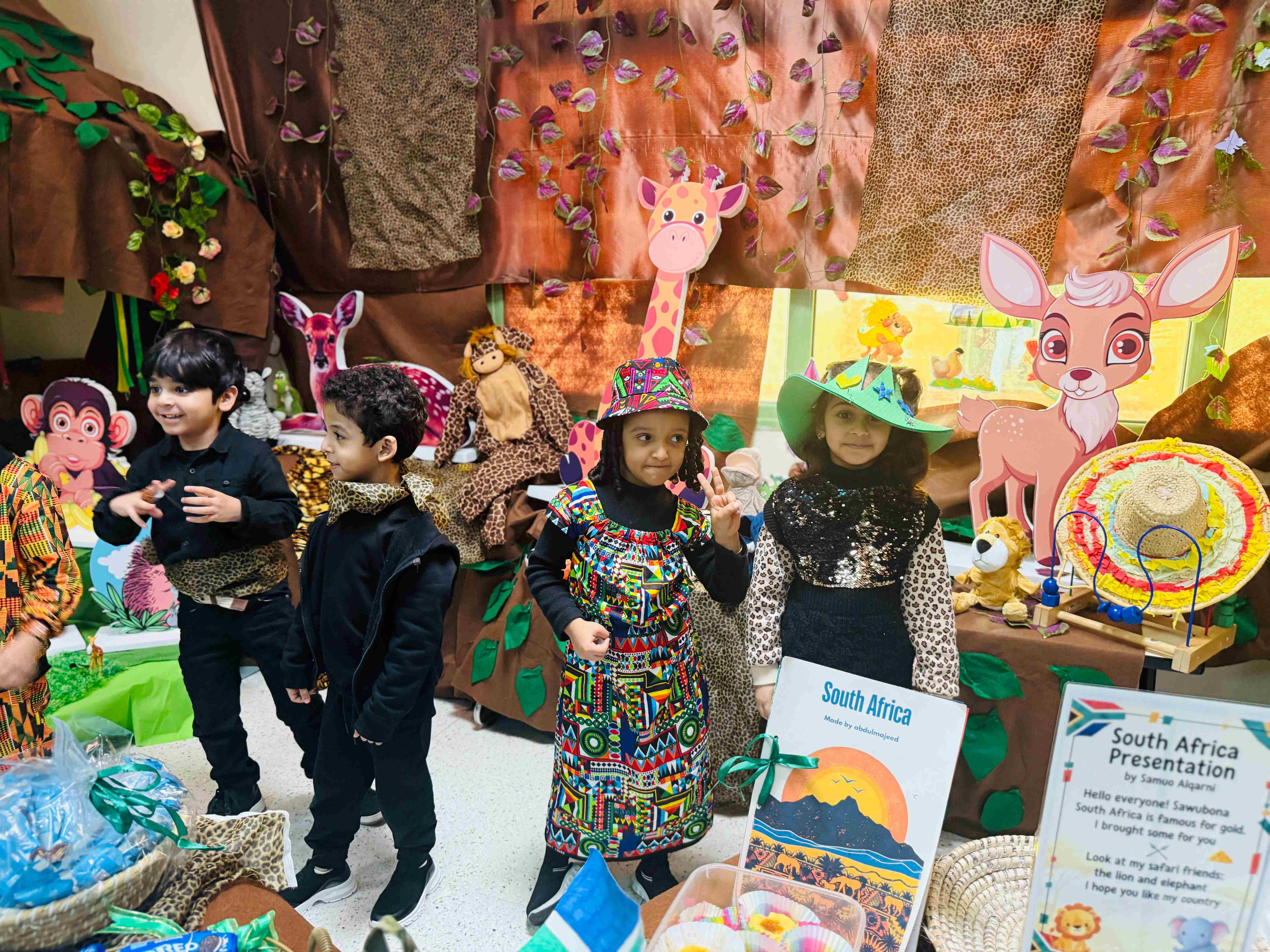 KG.2-H students celebrated a joyful Multicultural Day representing South Africa. Through vibrant decorations and traditional food, students and parents explored South African landmarks and culture, fostering global awareness through engaging, fun activities.