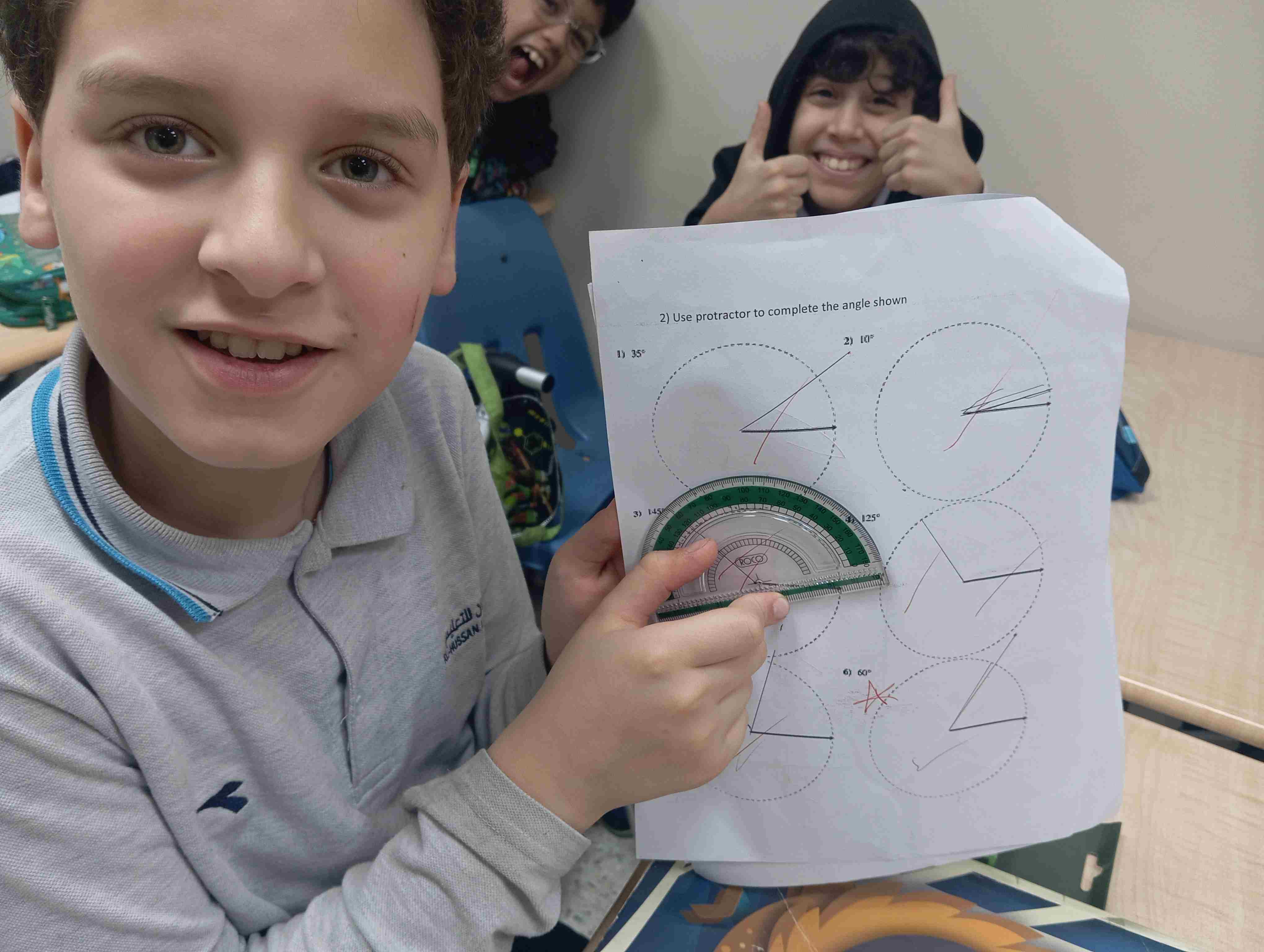 Grade 4 students participated in an interactive Math lesson on measuring and drawing angles. Using protractors for hands-on practice, students developed geometric accuracy and confidence through focused, exciting activities that strengthened their foundational skills.