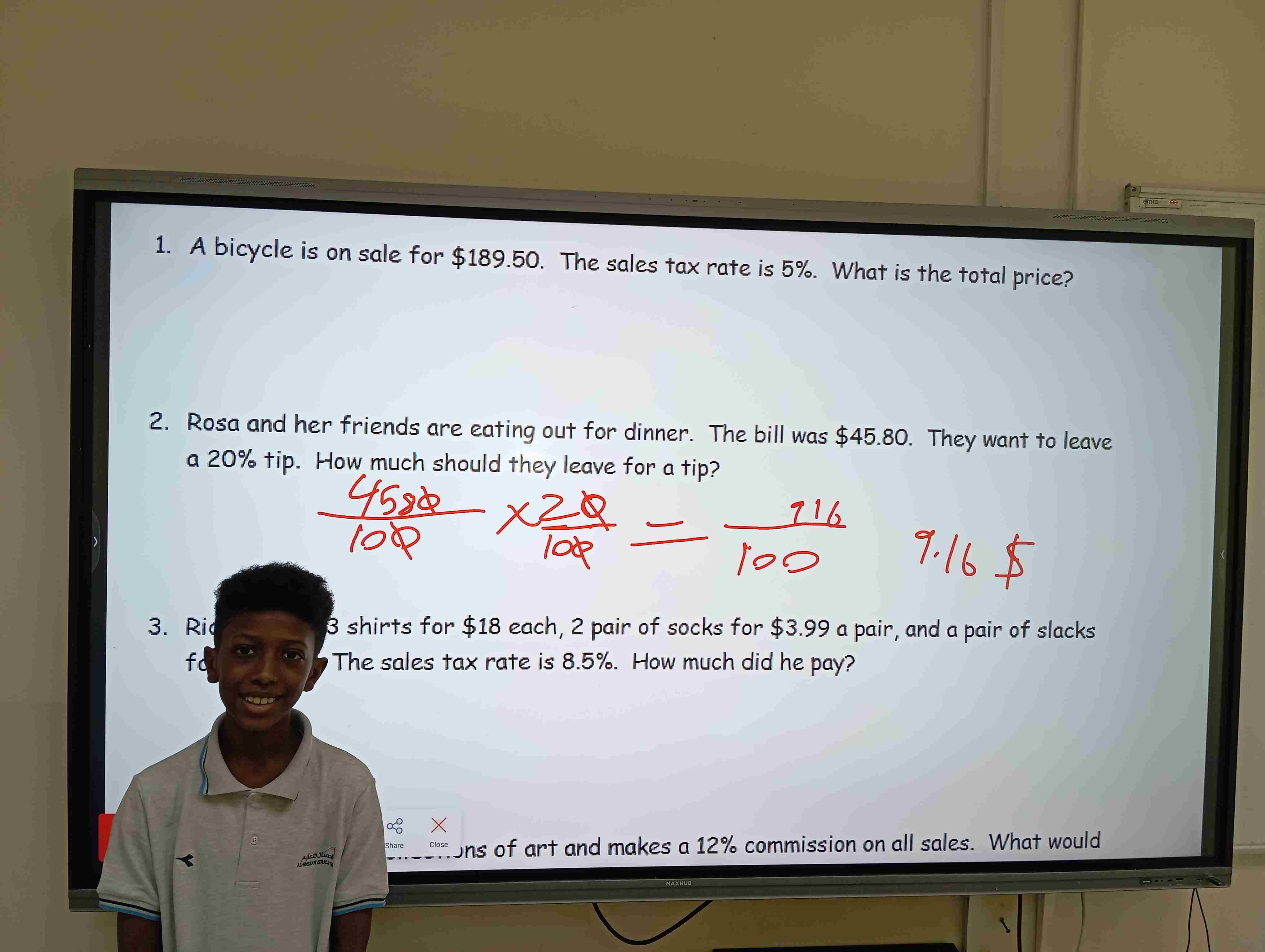 Grade 6A students explored taxes and gratuities through interactive real-life scenarios. This practical lesson enhanced their financial literacy and teamwork skills, empowering them to calculate sales tax and tips with confidence and accuracy.