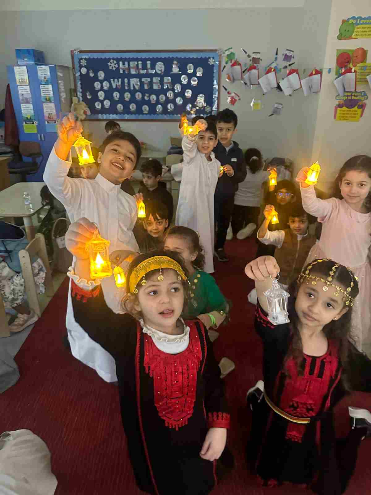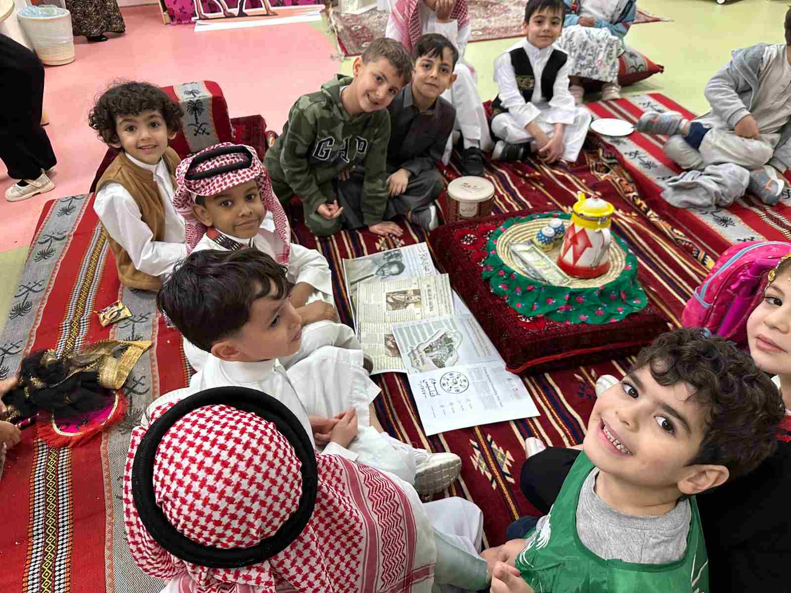 Following the assembly, the students enjoyed an exciting exploration of a large traditional tent, where they experienced elements of Saudi heritage in a fun and interactive atmosphere. Teachers added to the festive spirit by wearing traditional Saudi clothing and sharing delicious traditional foods, making the day both educational and enjoyable. The celebration reflected the school’s commitment to nurturing national identity and cultural appreciation from an early age.