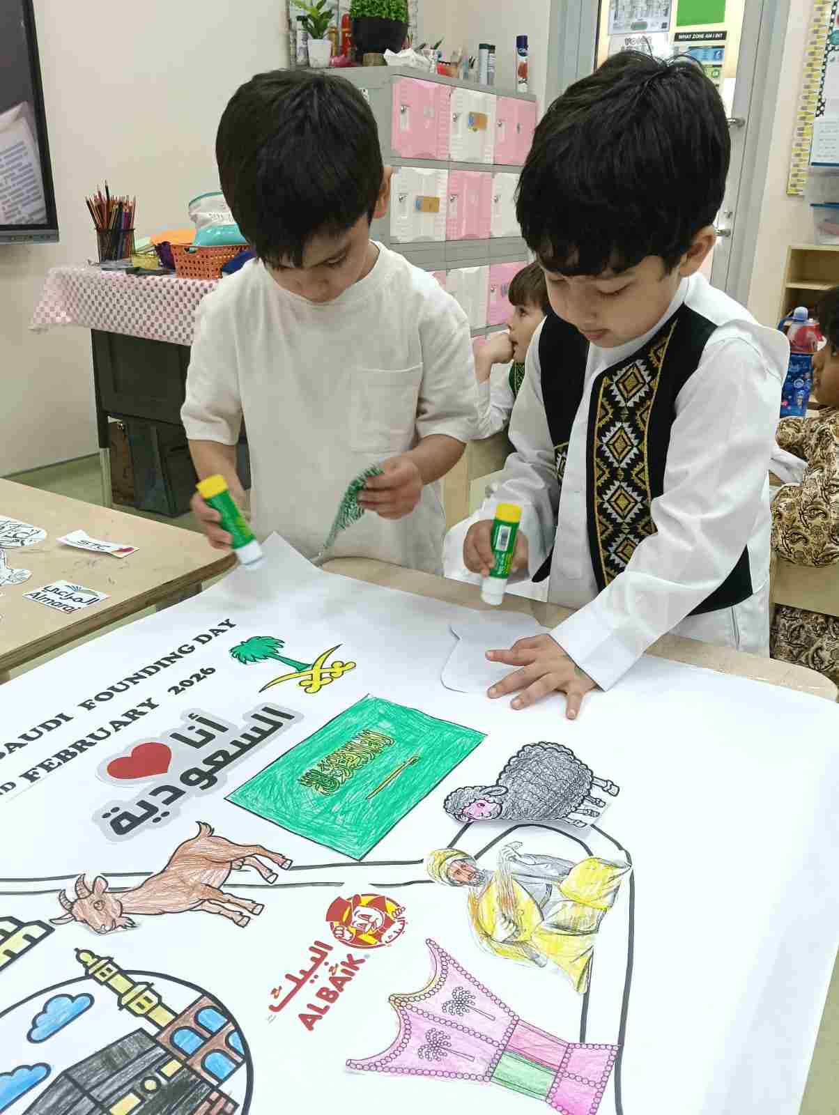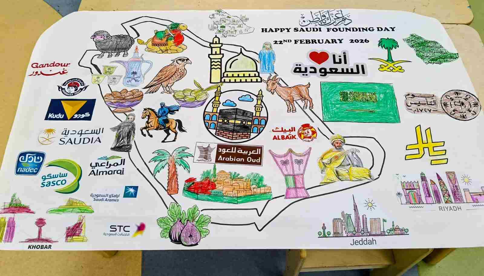 Preschool joyfully celebrated Saudi Founding Day, creating a memorable and meaningful experience for its young learners. The celebration began with a special morning assembly where students were introduced, simply and engagingly, to the beginnings of the First Saudi State and the rich history of the Kingdom.