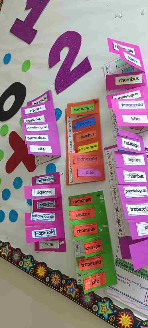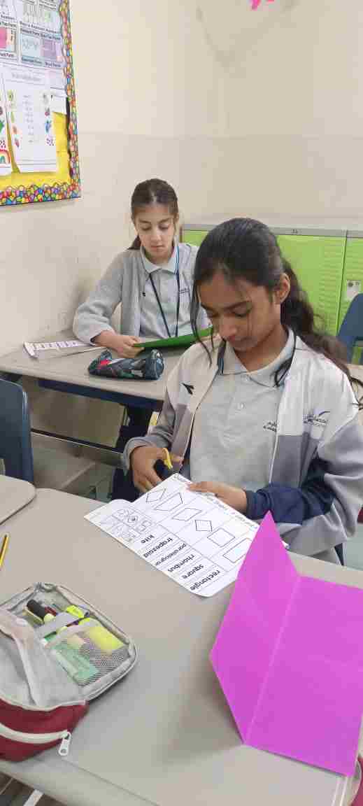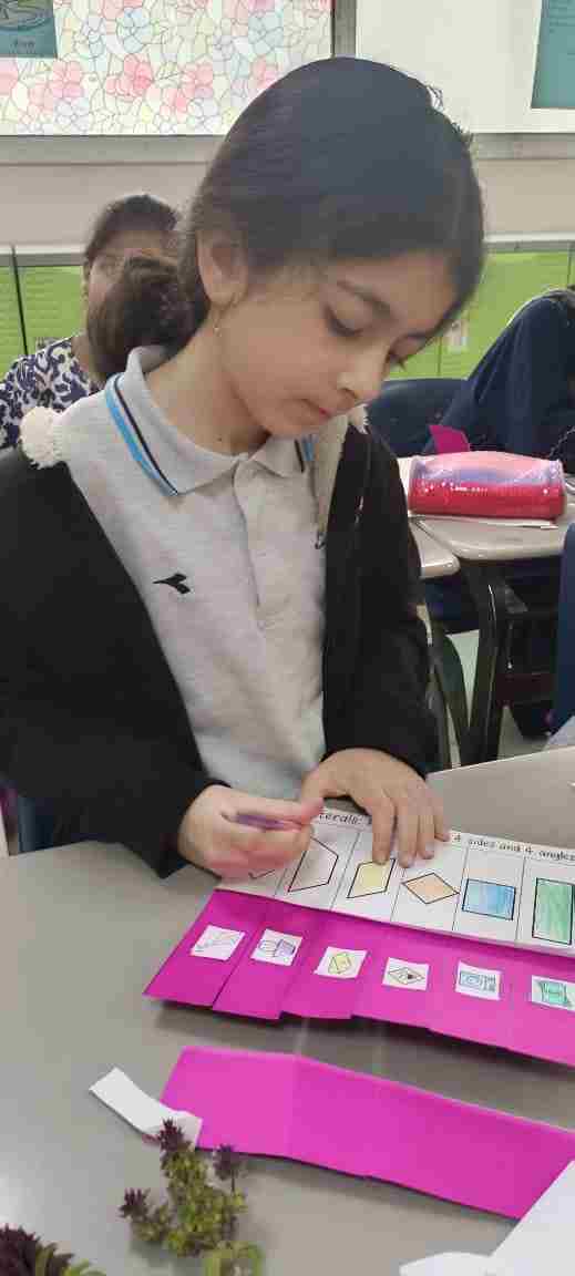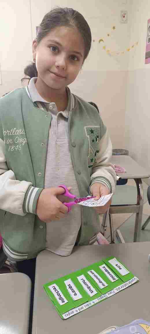 Our Grade 4 students matched and explored four-sided shapes — rectangle, square, rhombus, parallelogram, trapezoid, and kite. They discovered that every quadrilateral has 4 sides and learned their special features in a fun, hands-on way!