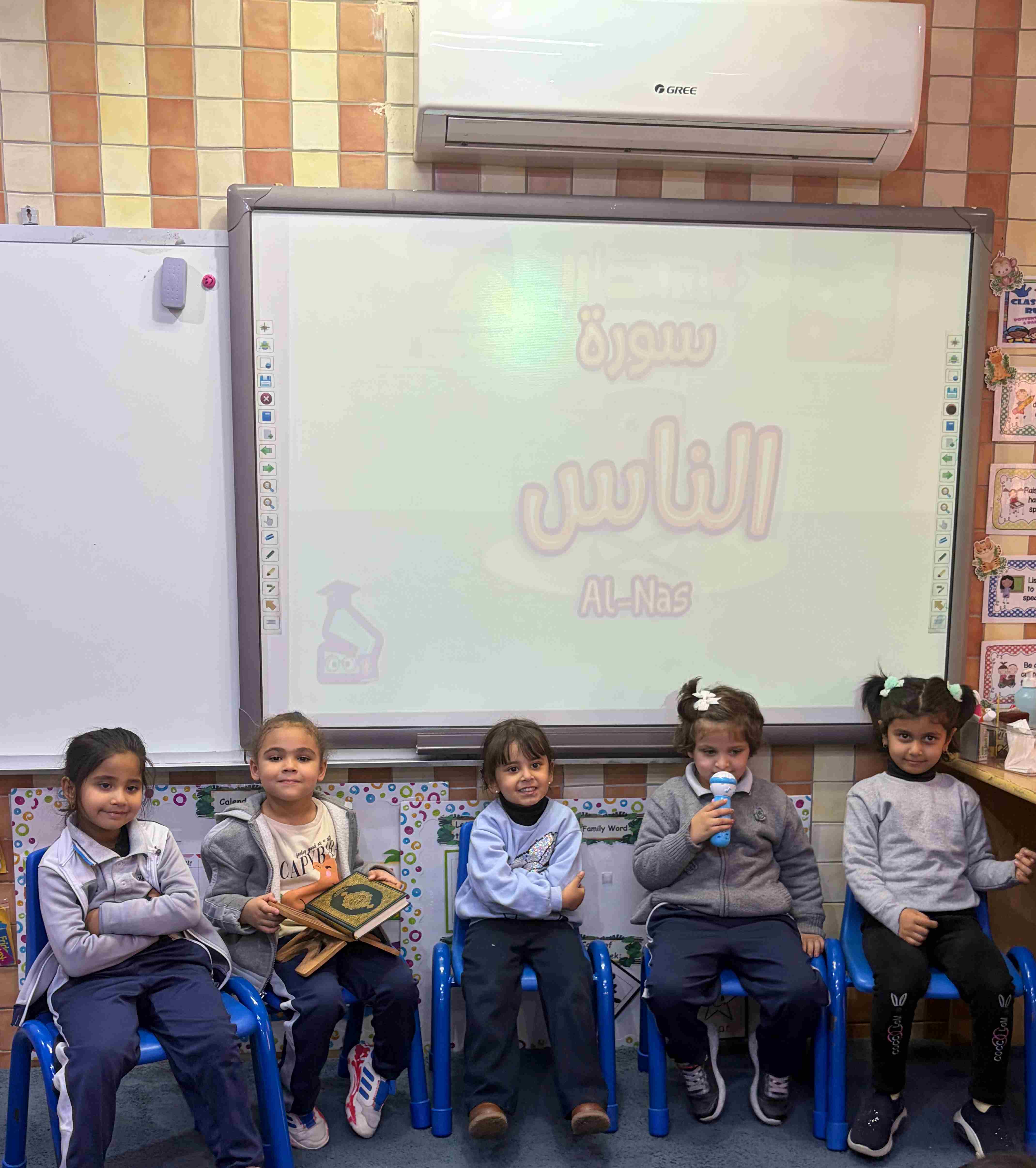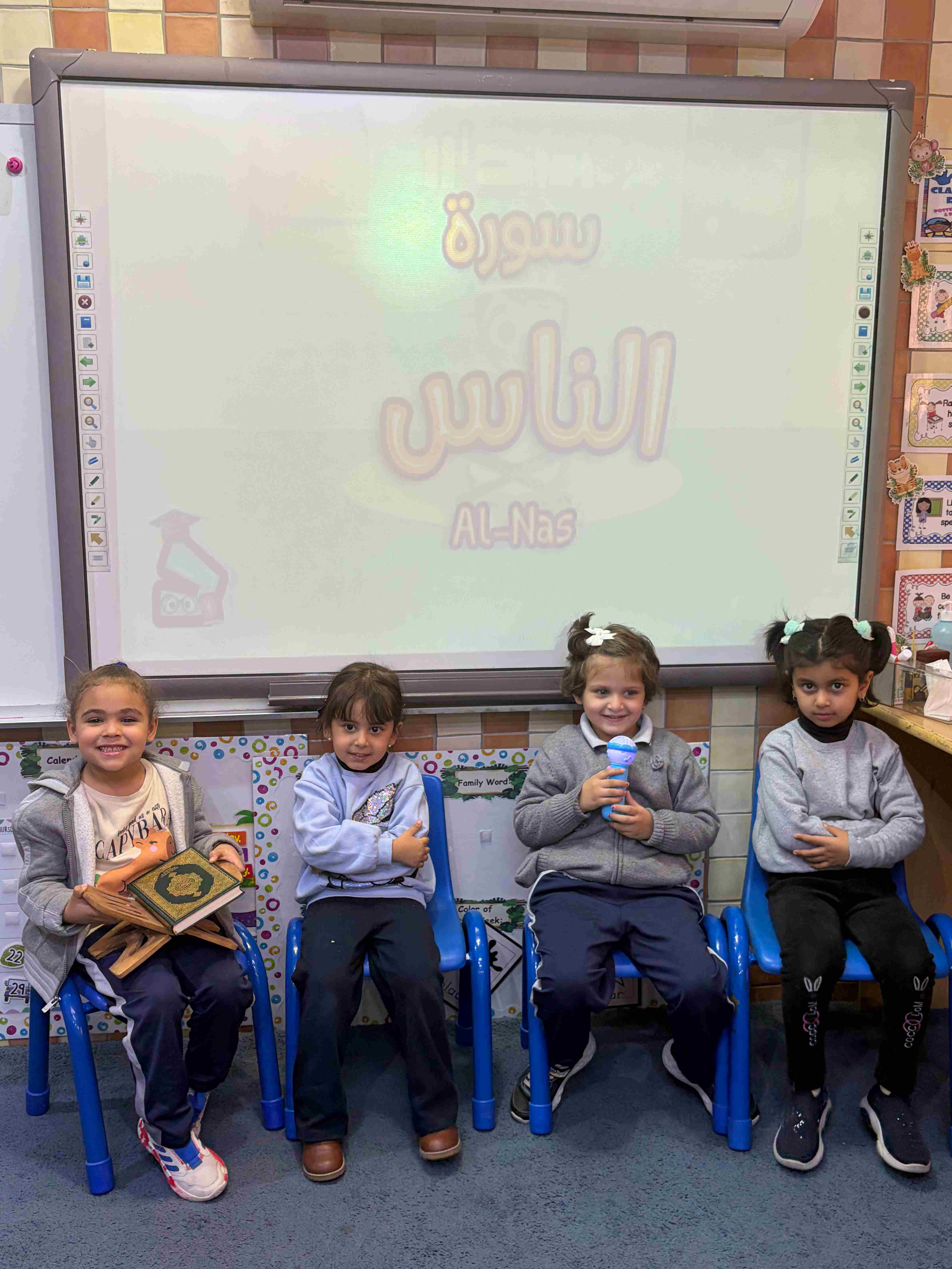 في مدارس الحصان العالمية – الرياض، لمرحلة قسم الروضة KG2 شارك الطلاب في حصة القرآن الكريم الخاصة بسورة الناس، حيث استمعوا إلى تلاوة السورة في جو هادئ ومنظم، والتأكيد على آداب الاستماع للقرآن الكريم والجلوس بشكل صحيح واحترام وقت التلاوة.