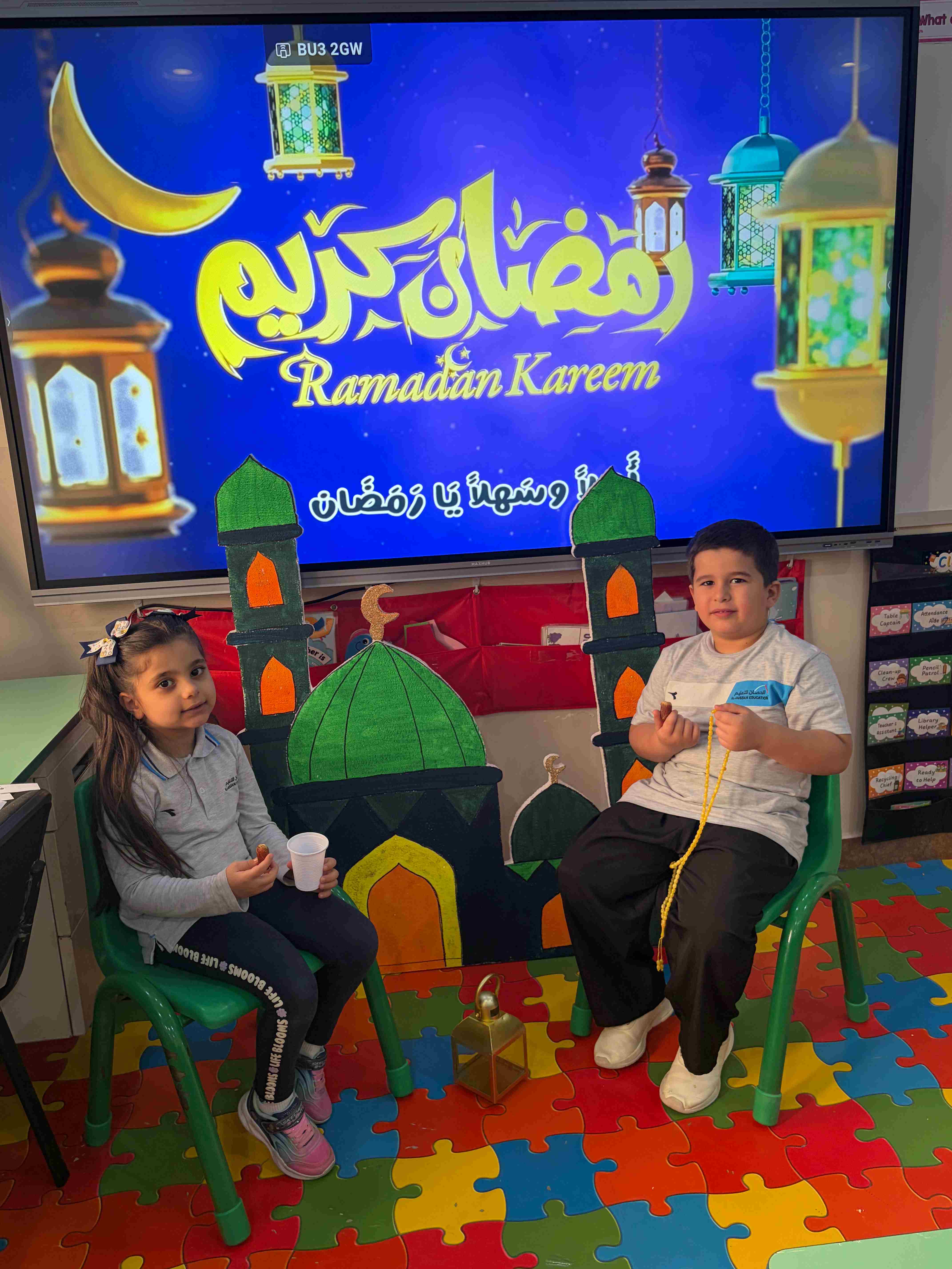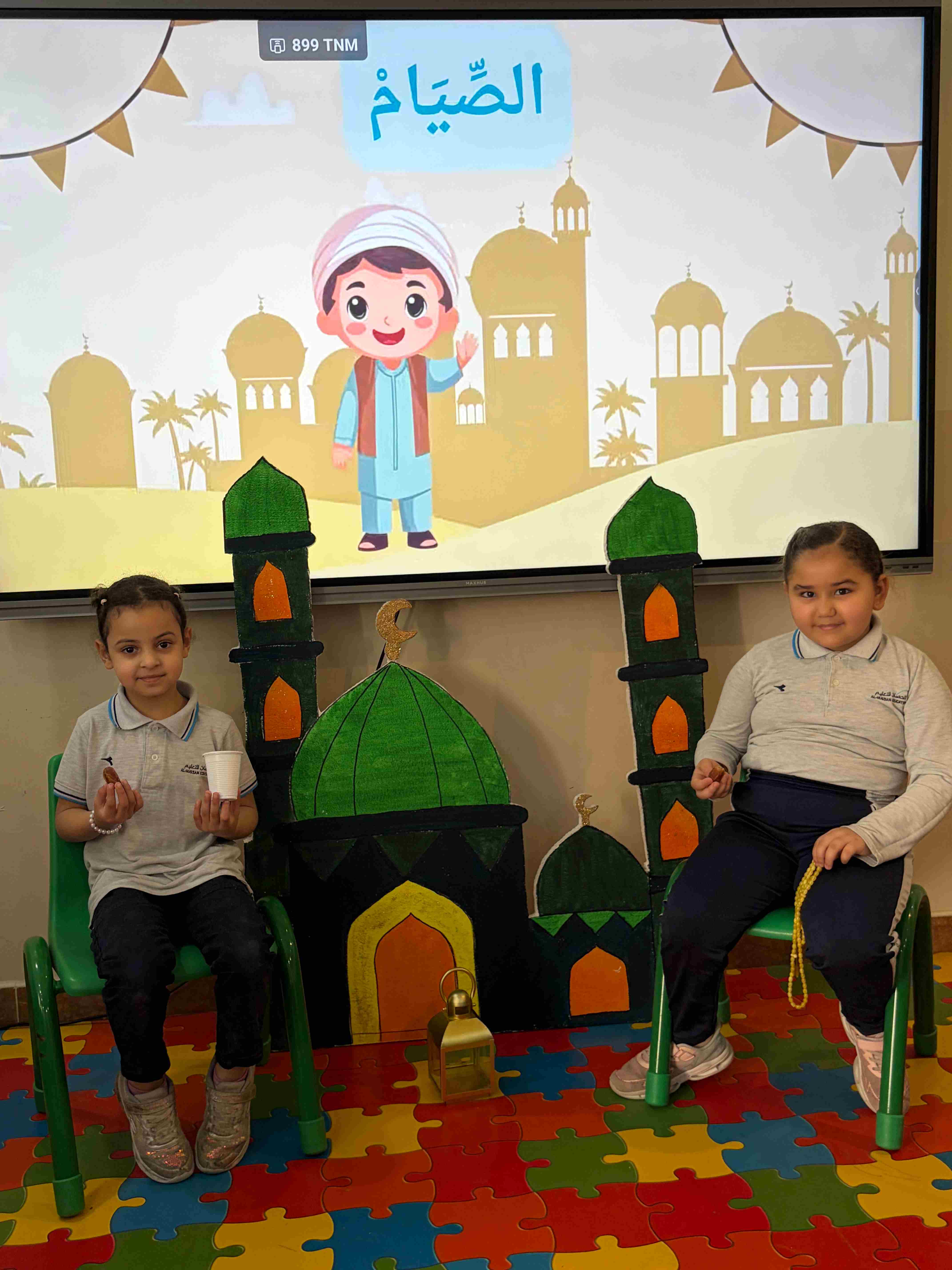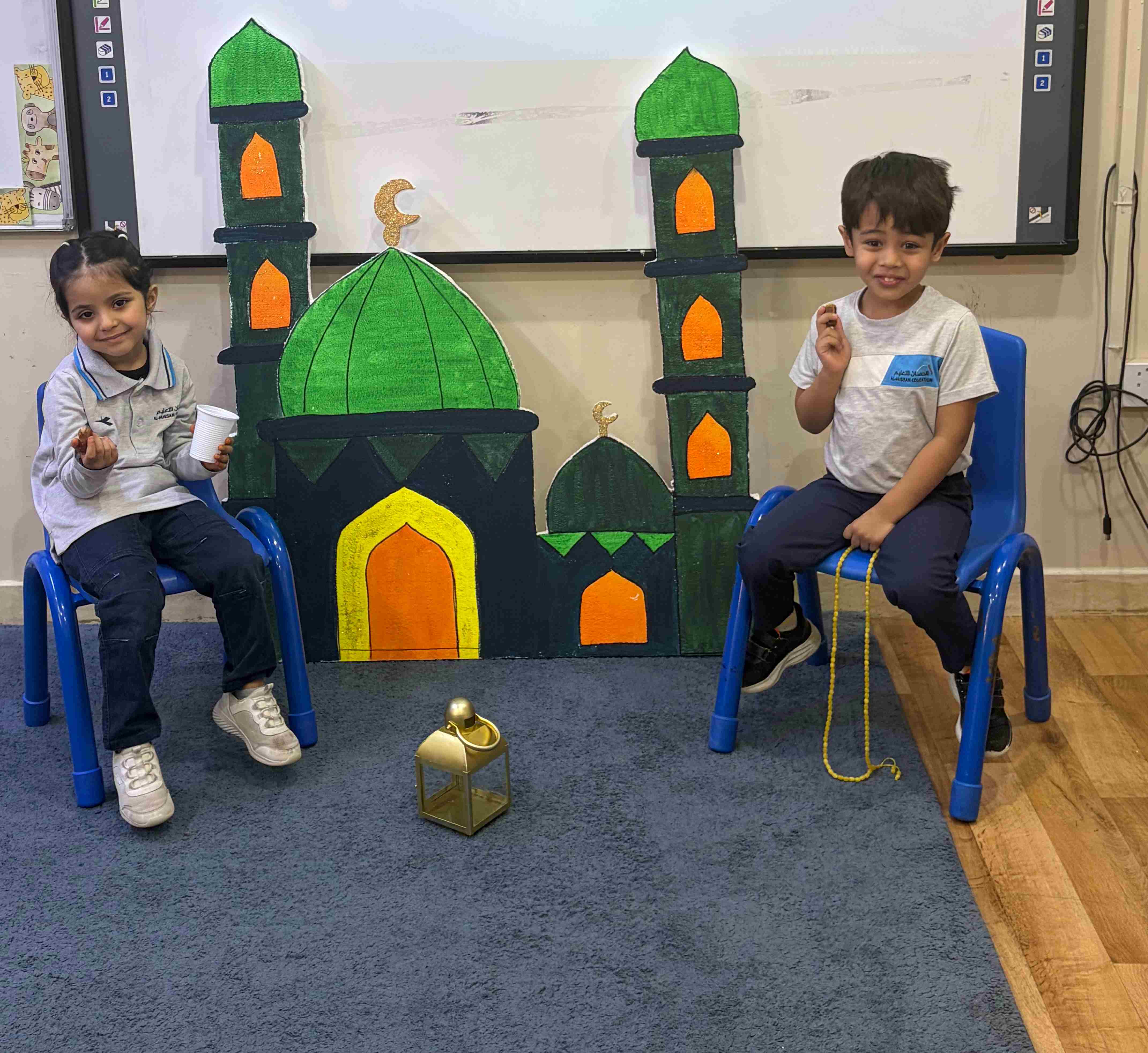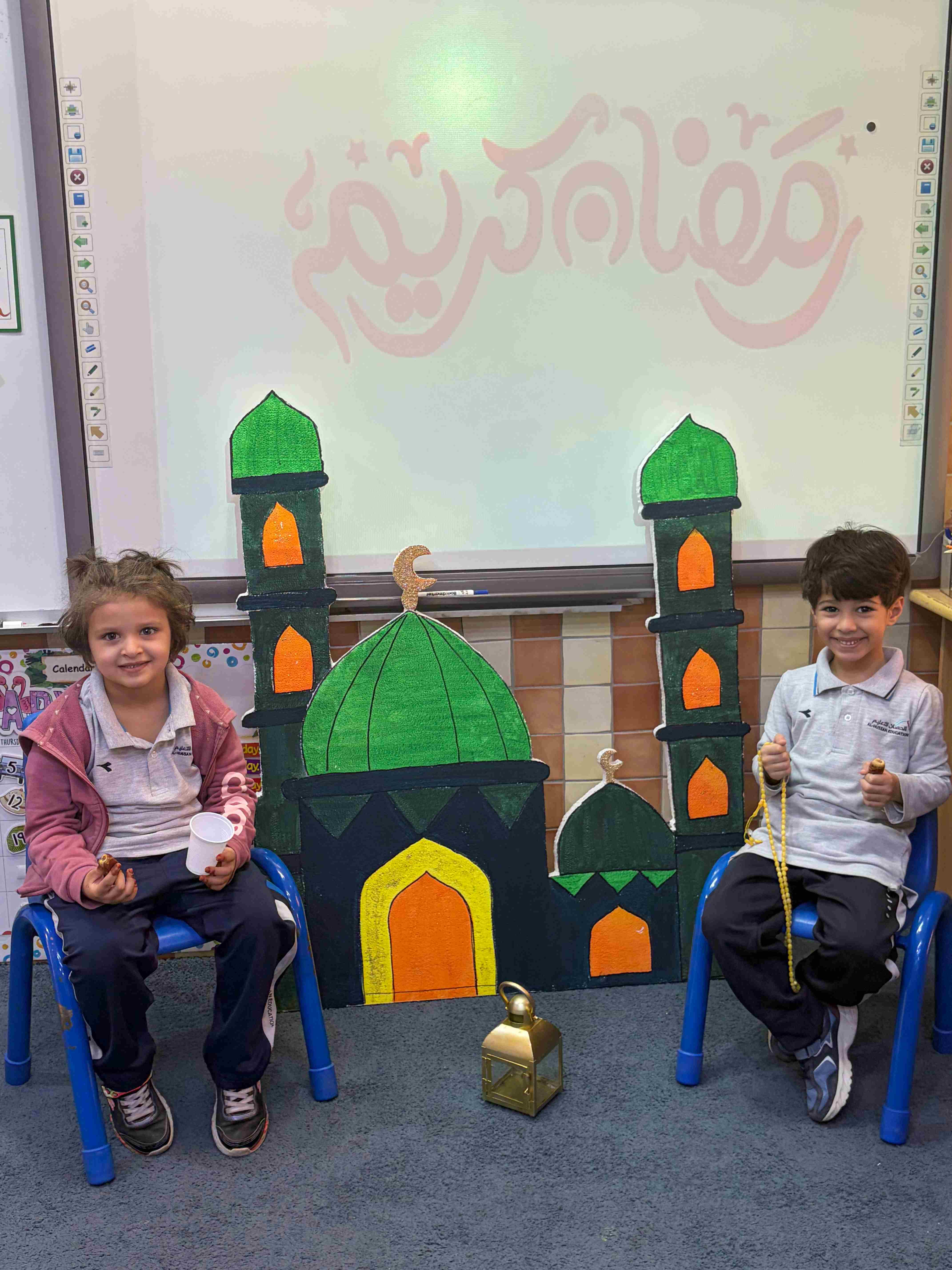 في مدارس الحصان العالمية – الرياض، لمرحلة قسم الروضة KG 1 - 3 شارك الطلاب في نشاط تربوي تفاعلي عن درس شهر رمضان، حيث تم تجهيز ركن رمضاني يضم مجسمات المسجد والفانوس والسبحة، مما ساعد على خلق أجواء إيمانية جميلة داخل الصف.