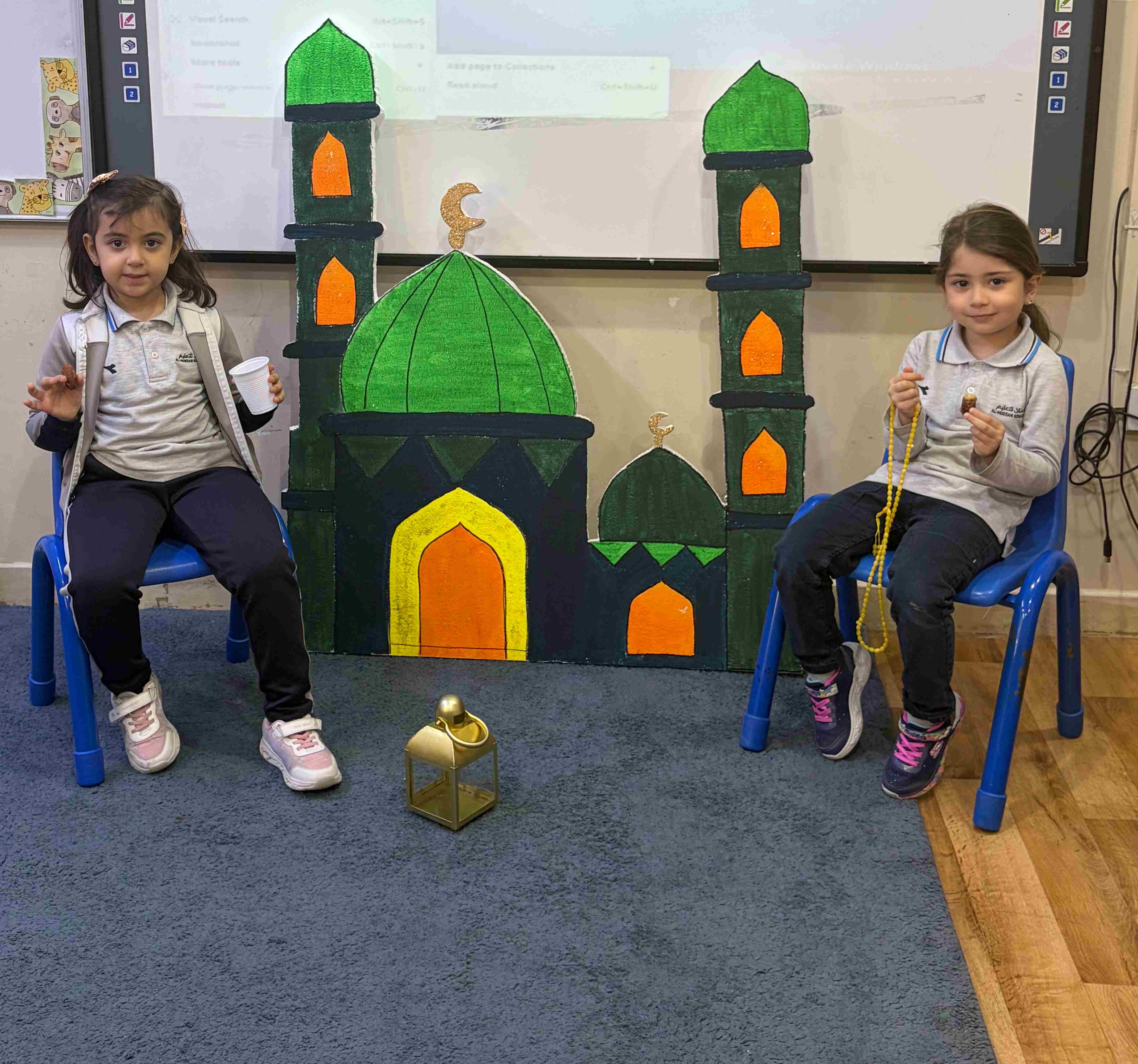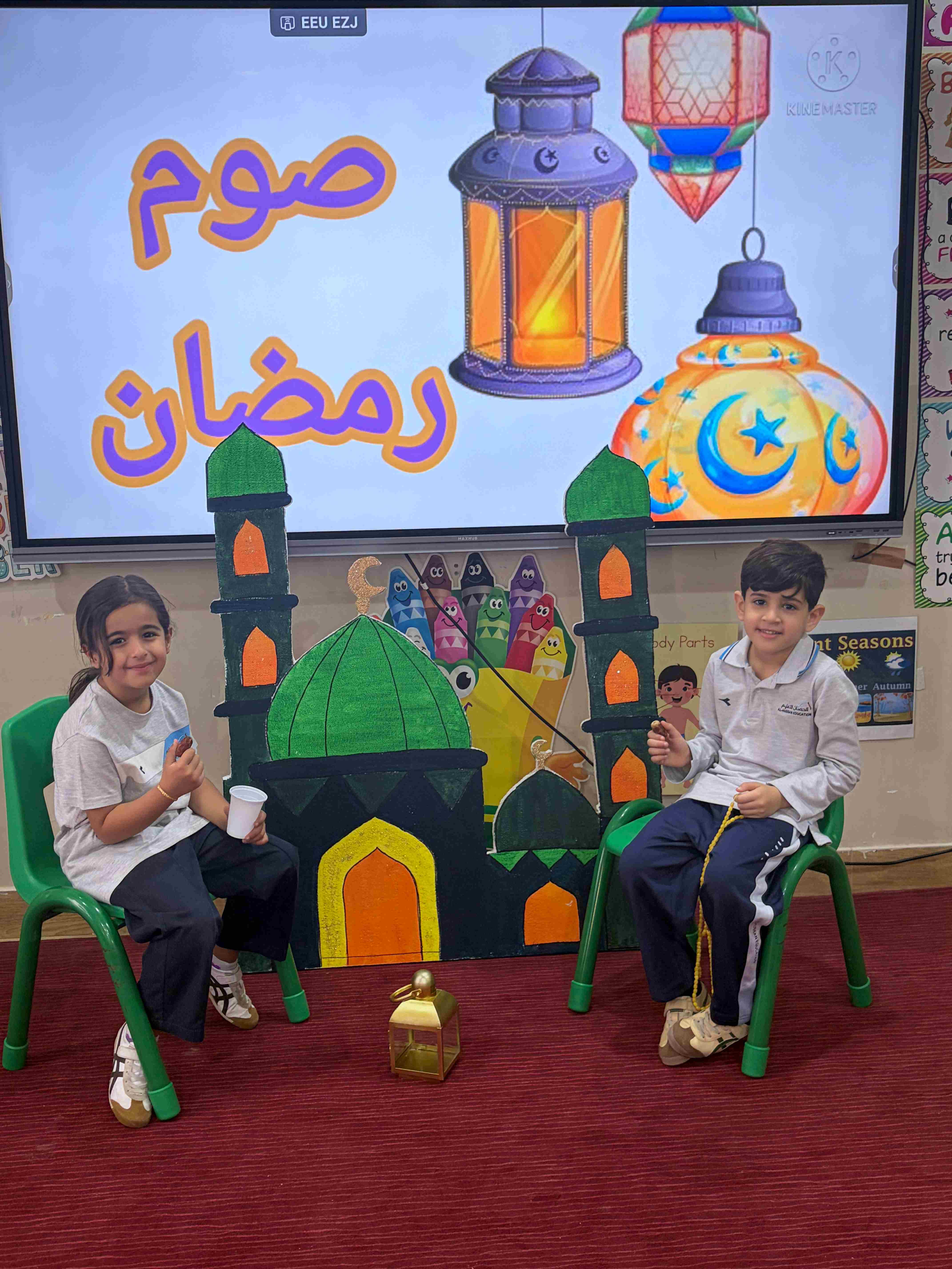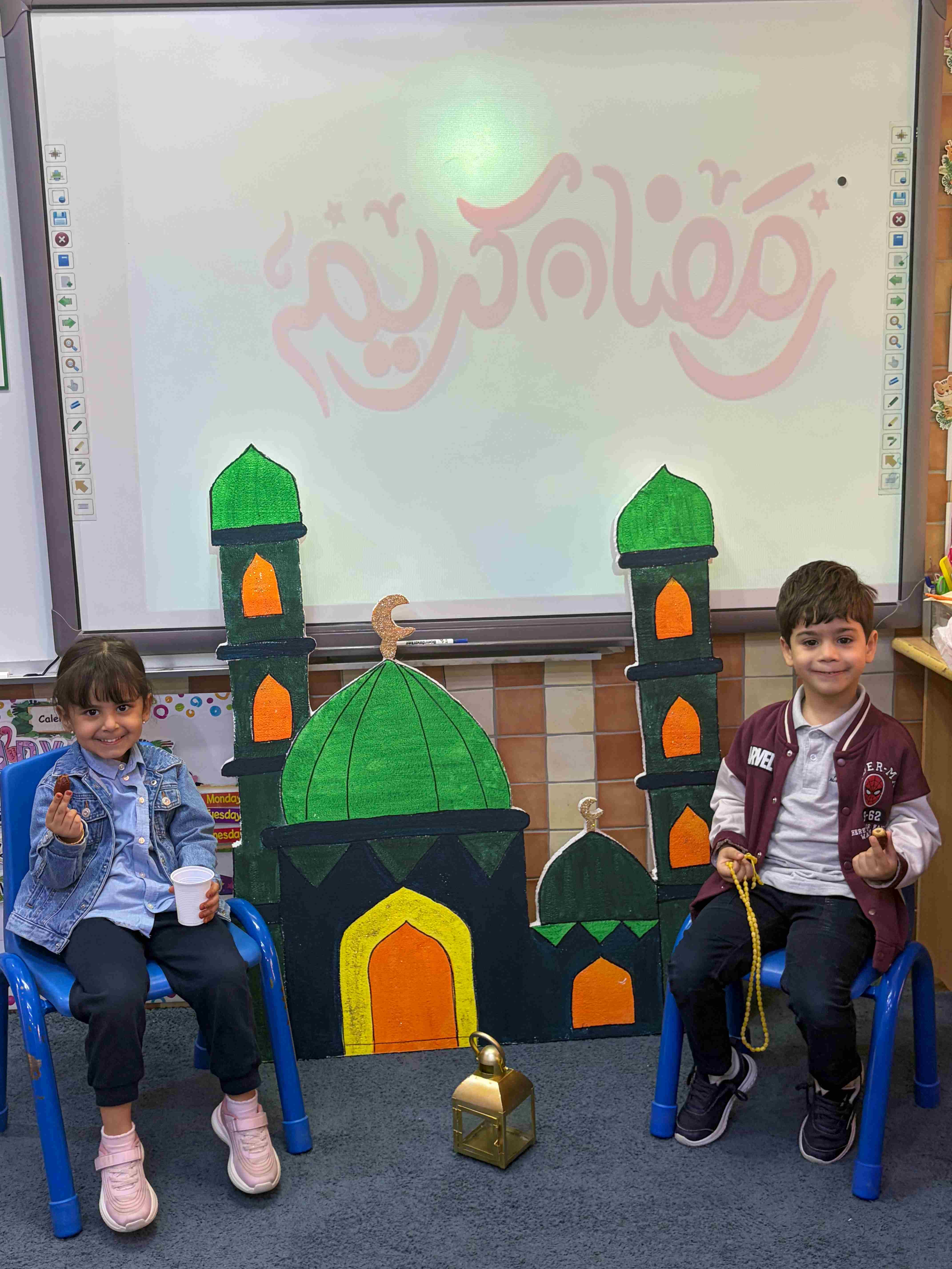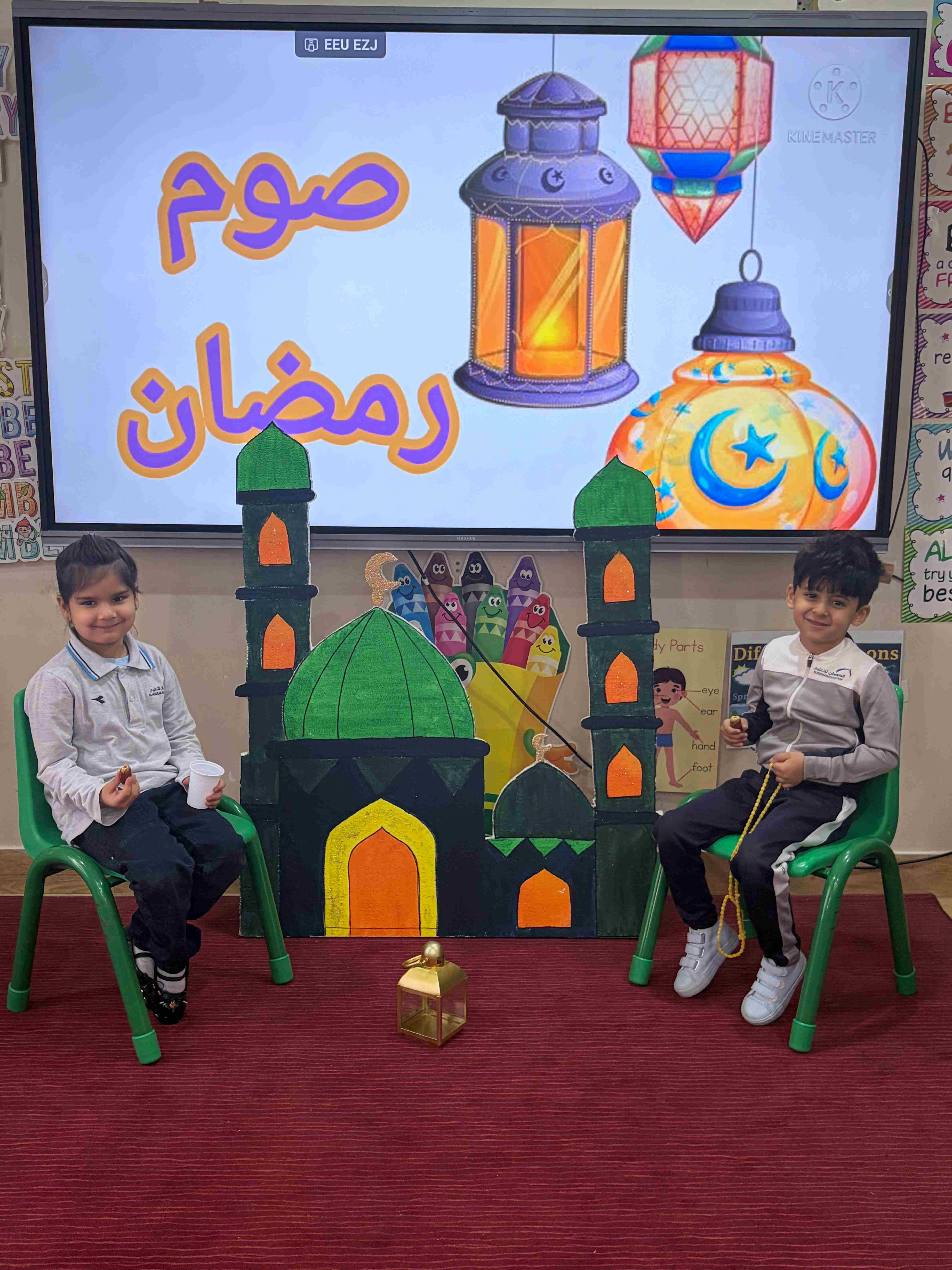 في مدارس الحصان العالمية – الرياض، لمرحلة قسم الروضة KG 1 - 3 شارك الطلاب في نشاط تربوي تفاعلي عن درس شهر رمضان، حيث تم تجهيز ركن رمضاني يضم مجسمات المسجد والفانوس والسبحة، مما ساعد على خلق أجواء إيمانية جميلة داخل الصف.