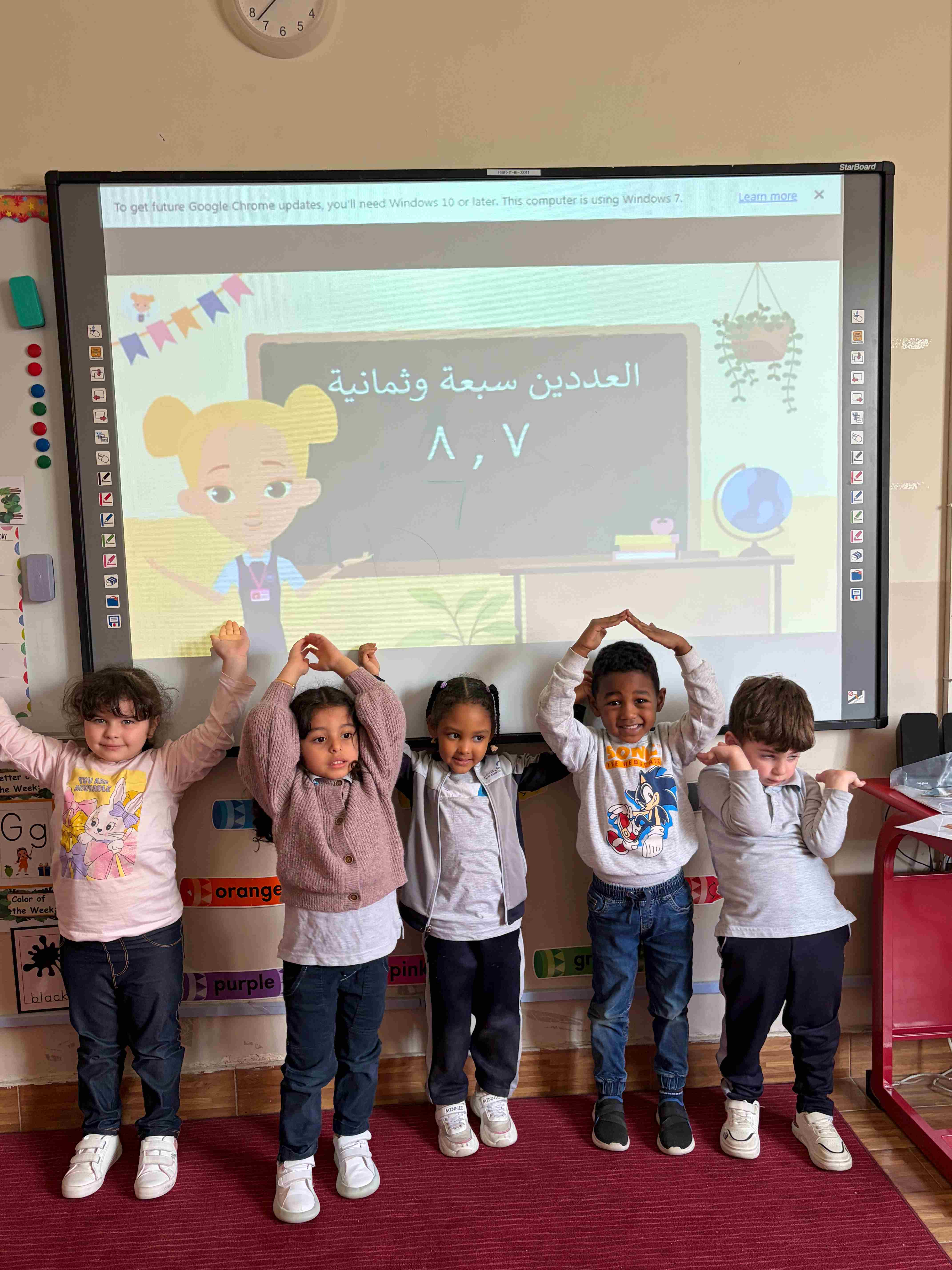في مدارس الحصان العالمية – الرياض، لمرحلة قسم الروضة KG1، شارك الطلاب في حصة اللغة العربية الخاصة بتعلّم الرقمين (٧) و(٨)، حيث تم تقديم الدرس بأسلوب تفاعلي ممتع، مع تطبيق الرقمين على السبورة بشكل عملي لمساعدة الطلاب على الفهم وترسيخ المعلومة.